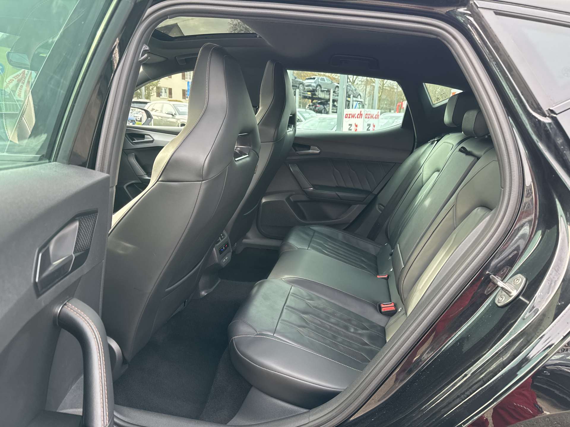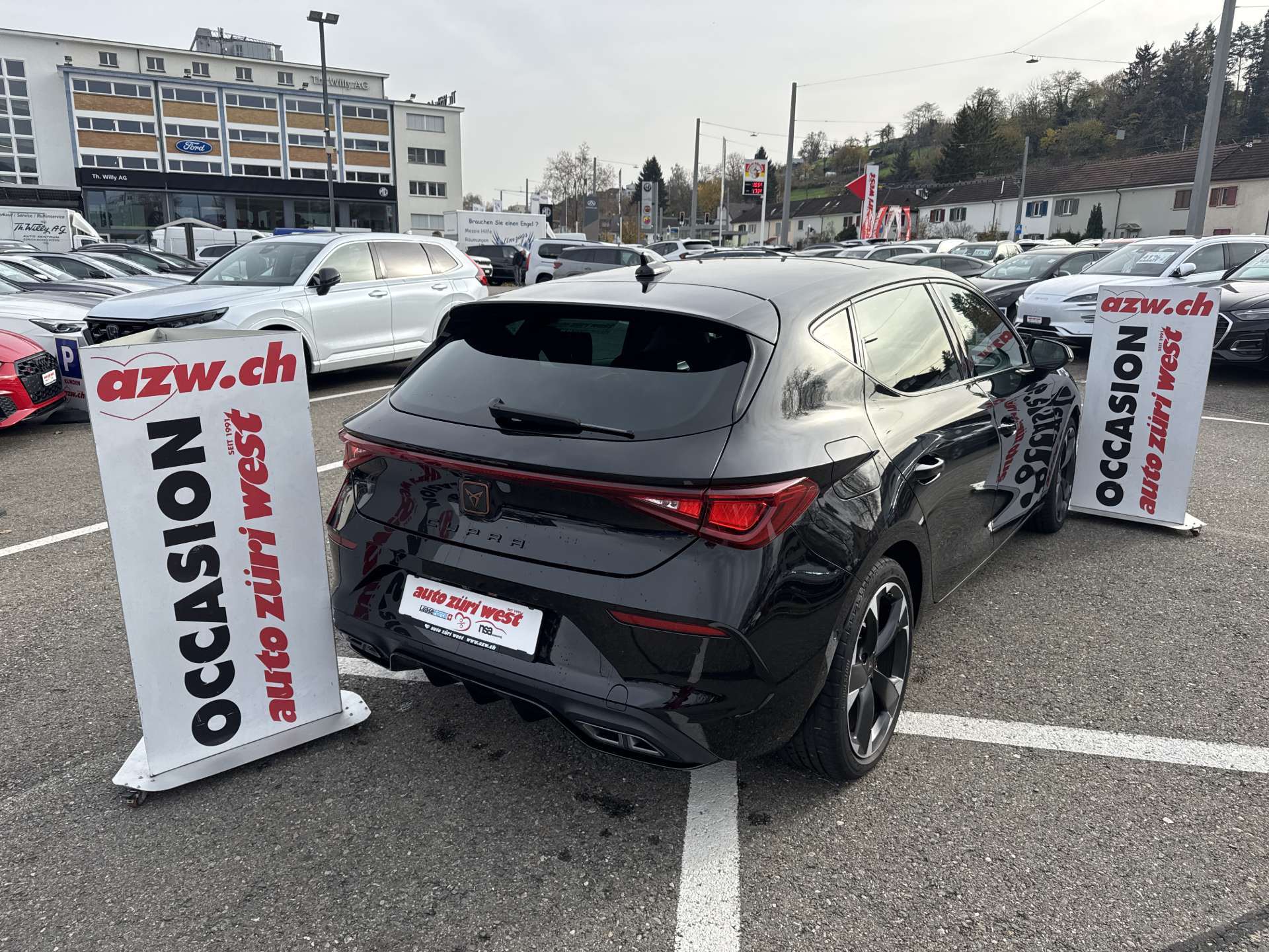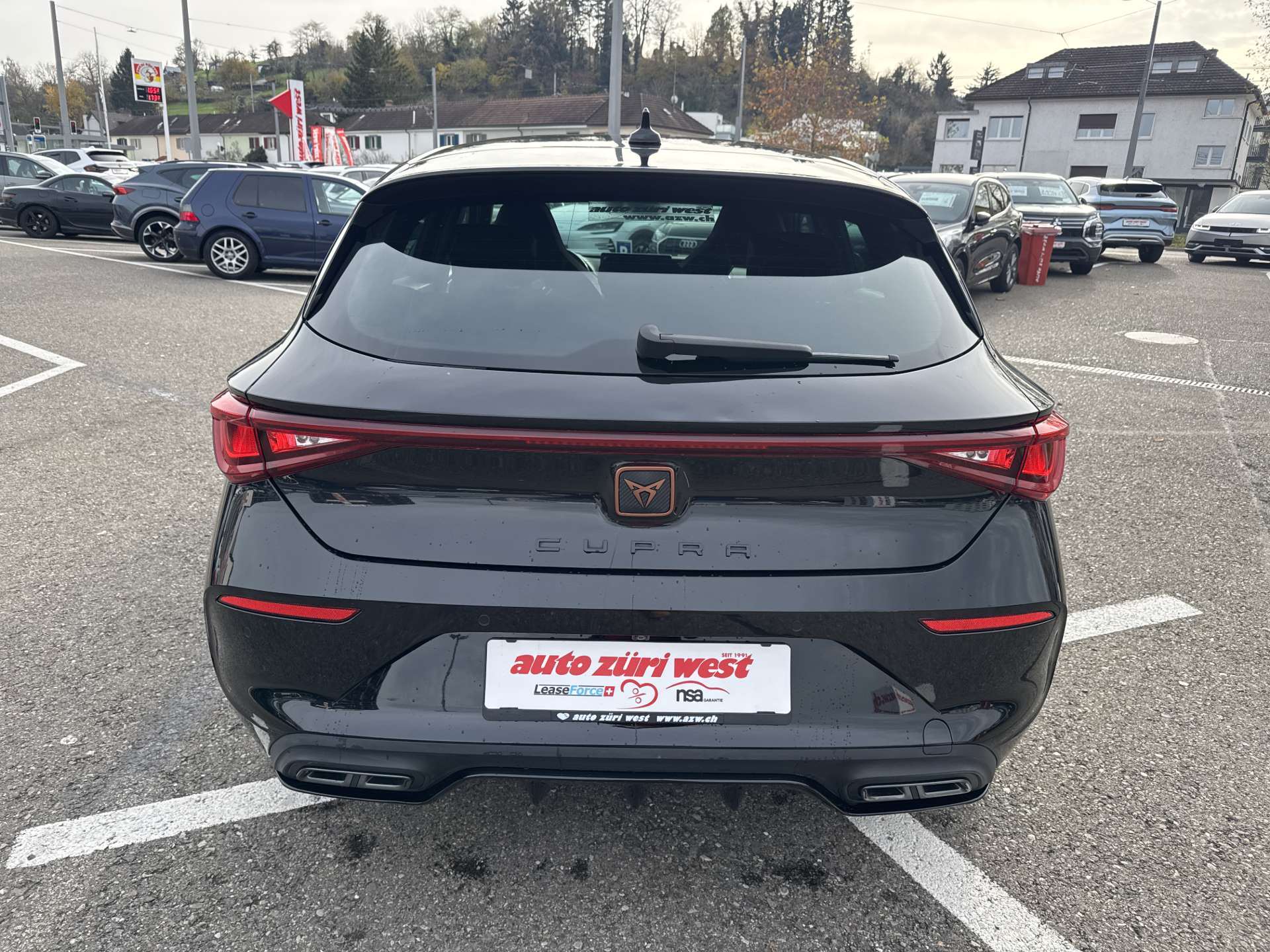 Abgedunkelte Scheiben ab B-Säule hinten, ABS, EBV elektronische Bremskraft-verteilung, Airbag: Airbag Beifahrer deaktivierbar, Airbag: Airbag Fahrer und Beifahrer, Airbag: Kopfairbags vorne und hinten, Airbag: Seitenairbags für Fahrer und Beifahrer, Airbag: Zentral Airbag, Assist: Einparkhilfe hinten, Assist: Elektronische Parkbremse mit Auto Hold Funktion, Assist: Lane assist (Spurhalteassistent), Assist: Multifunktionskamera, Assist: Multikollisionsbremse, Assist: PreCrash Sicherheitssystem, Assist: Speed limiter, Assist: Tempomat, Assist: Tiredness detection (Müdigkeitserkennung), Assist: Traction Control (TCS), deaktivierbar, Aussenspiegel elektrisch einstell-, beheiz- und einklappbar mit Beifahrerabsenkfunktion, Aussenspiegel in Cosmo Grey, Türgriffe in Wagenfarbe, Aussenspiegel mit LED-Blinker, Bremszangen vorne und hinten in Schwarz, CUPRA Drive Profile mit "driving experience button" Comfort, Sport, CUPRA, Individual, CUPRA-Heckspoiler, Dachhimmel schwarz, Dekor: Dekorblenden in Copper, Dreipunkt-Automatiksicherheitsgurte auf allen Plätzen, Elektrische Fensterheber vorne und hinten mit Komfortschaltung und Einklemmschutz, ESC mit EBA, DSR und Reifendruckkontrolle, Fahrwerk: Progressivlenkung, Fahrwerk: Vorderachs-Differenzialsperre, Full Digital Cockpit, Fussmatten vorne und hinten, Getriebe: 7-Gang-Sequentielle-Getriebe mit Automatikfunktion, Heckscheiben-Wisch-/Waschanlage mit Intervall, Heckscheibenheizung, Innenspiegel automatisch abblendbar, Kindersitzverankerung ISOFIX (äussere Plätze hinten), Klima: 3-Zonen Climatronic, Lackierung: Uni-Lackierung, LED-Innenraumbeleuchtung mit Ambientebeleuchtung"Monochrom", Lenkrad: Beheizbares Ledermultifunktionslenkrad mit Schaltwippen, Licht- und Regensensor, Licht: Coming Leaving Home Funktion, Licht: Drittes Bremslicht, Licht: Durchgehende Full LED-Heckleuchten, Licht: LED-Heckleuchten mit dynamischem Blinklicht, Licht: LED-Nebelscheinwerfer mit Cornering-Funktion, Licht: LED-Scheinwerfer für Abblend- und Fernlicht, Licht: LED-Tagfahrlicht, Licht: Leuchtweitenregulierung, Media: 10'' Infotainment (MIB3), Media: 2 USB C Anschlüsse hinten und vorne, Media: 6 Lautsprecher, Media: CUPRA Connect Safety & Services für Media System, Media: DAB+ (Digital Audio Broadcasting), Media: Mobiltelefon Freisprechanlage Bluetooth, Media: Sprachsteuerung, Mittelarmlehne vorne und hinten, Nebelschlussleuchte, Ottopartikelfilter, Parksensoren in Midnight Black, Pollenfilter (Staubfilter), Pyrotechnische Gurtstraffer und Gurtkraftbegrenzer, Räder: Alufelgen 7,5J x 18", "EXCLUSIVE" (225/40 R18), Räder: Reifendruck-Kontrollanzeige, Räder: Reifenreparatur-Set (Tire Fit), Schlüsselloses Schliess- und Startsystem (KESSY), Servolenkung mit geschwindigkeitsabhängiger Lenkkraftunterstützung, Sicherheitsgurtkontrolle für alle Sitze, Sitze: 2 verstellbare Kopfstützen vorne und 3 hinten, Sitze: CUPRA Sportsitze in "Sharp Textil schwarz", Sitze: Geteilt abklappbare Rücksitzlehne 1/3 - 2/3, Sitze: Kindersitzverankerung ISOFIX hinten, Sitze: Vordersitze höhenverstellbar, Sonnenblende Fahrer und Beifahrerseite, Stopp - Start- und Rekuperationssystem, Stossfänger in Sport-Optik mit Heckdiffusor in Wagenfarbe, Vollverzinkte Karosserie, Wärmeschutzverglasung, Wegfahrsperre elektronisch, Zentralverriegelung mit Funkfernbedienung, 2 Funkschlüssel, Zierleisten Seitenfenster in Schwarz Glanz, Zwei Abgasblenden
