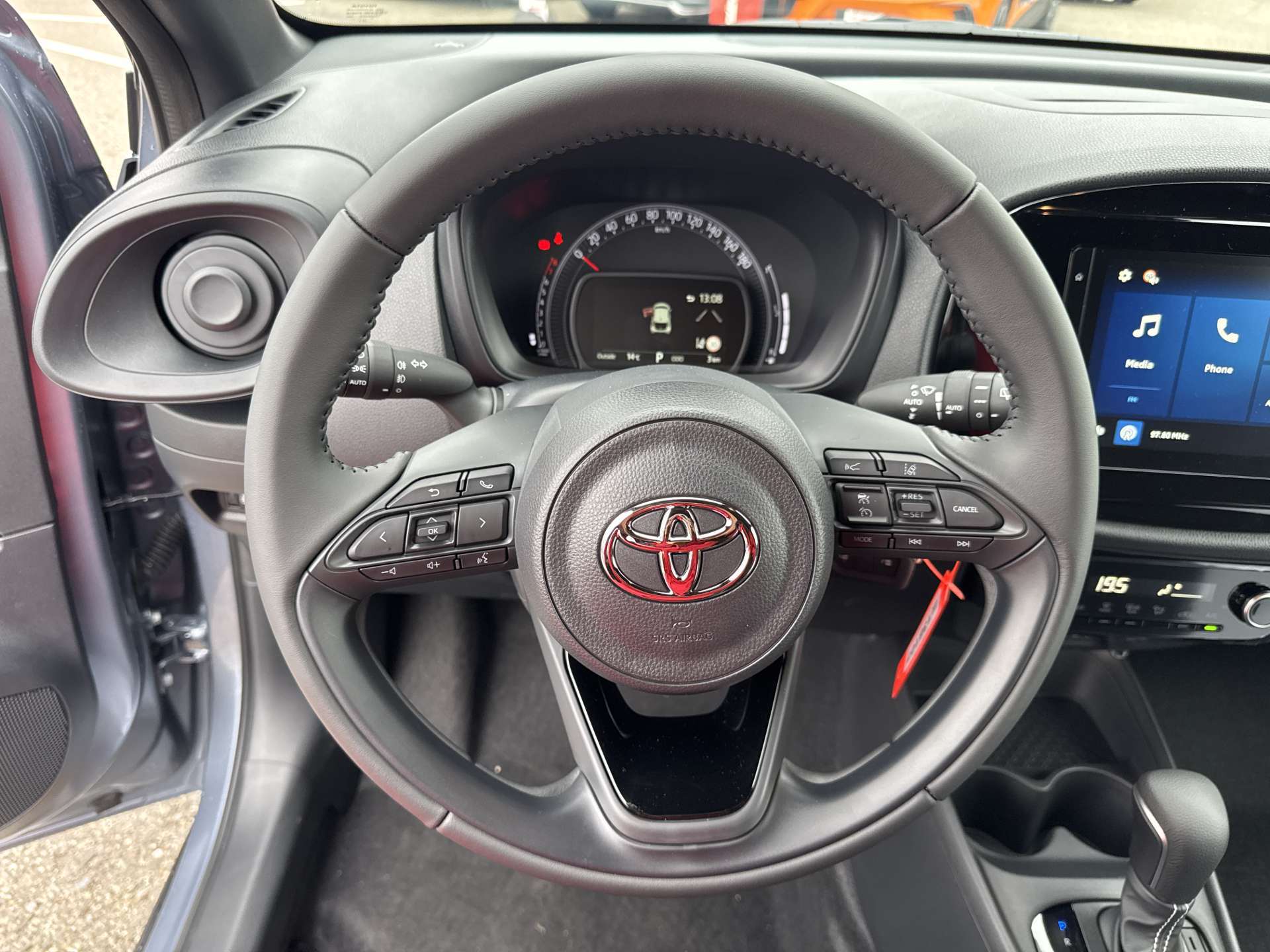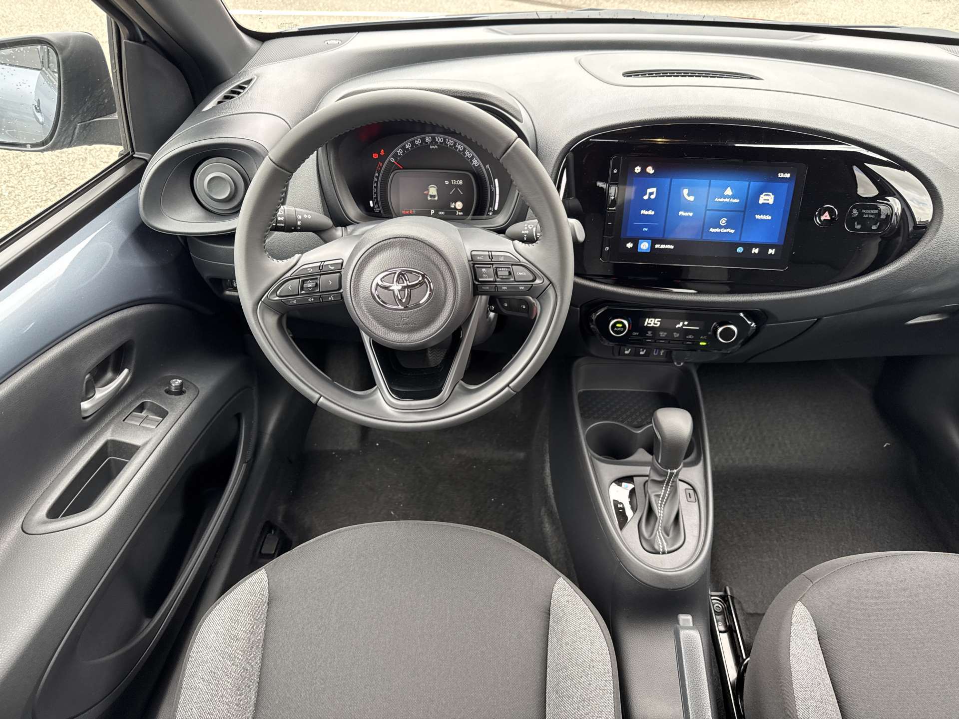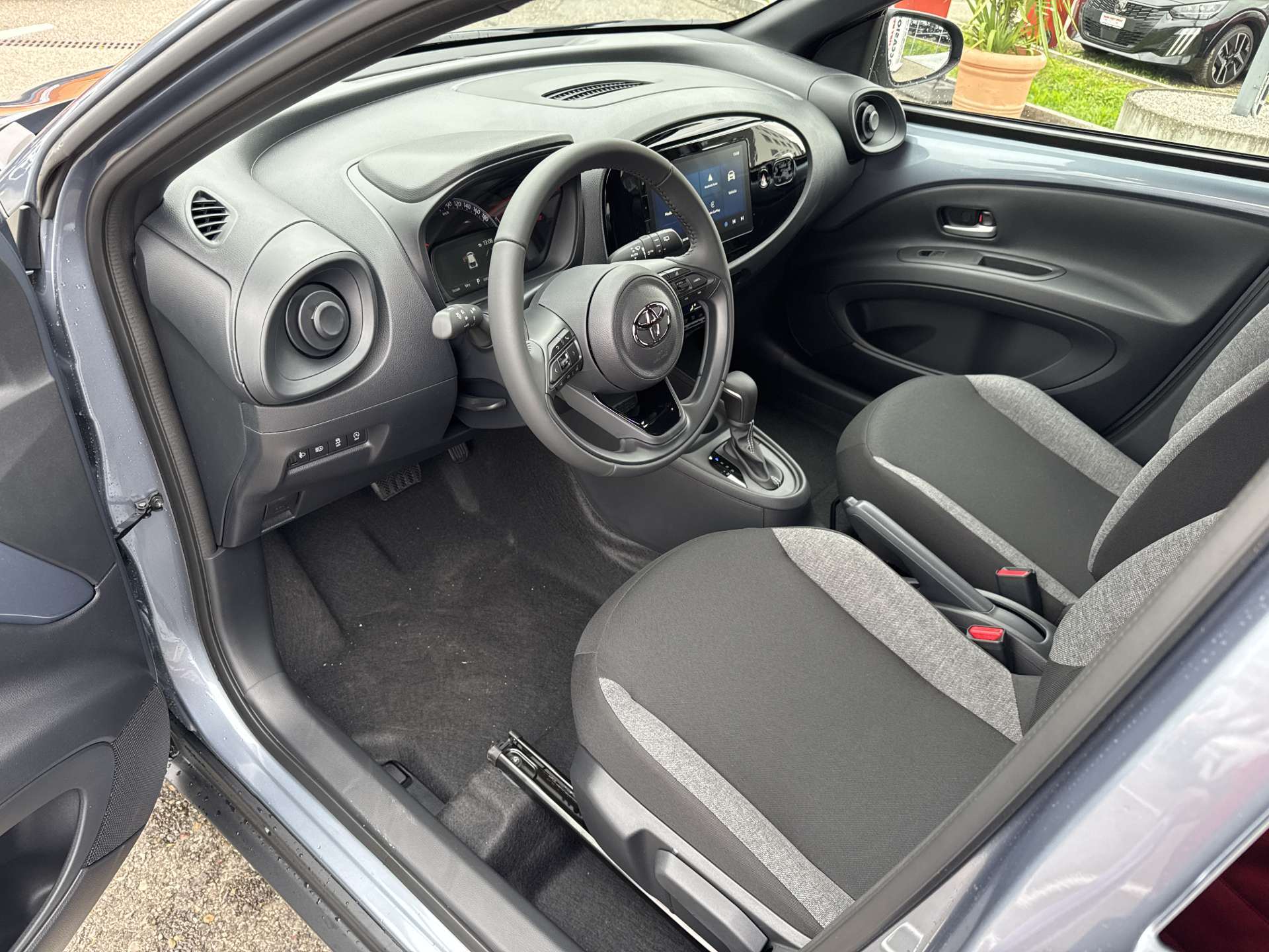 12 V-Anschluss vorne, Airbag: Airbag Fahrer und Beifahrer, Airbag: Kopfairbags vorne und hinten, Airbag: Seitenairbag für Fahrer und Beifahrer, Antiblockiersystem (ABS), Assist: Adaptiver Tempomat ACC, Assist: Geschwindigkeitsbegrenzer ASL, Assist: Pre Collision System mit Fussgänger- und Fahrraderkennung (PCS), Assist: Rückfahrkamera, Assist: Spurverfolgungsassistent (LTA) mit Spurverlasswarner (LDA) und aktiver Lenkunterstützung, Assist: Verkehrsschilderkennung (RSA), Aussenspiegel elektrisch verstellbar und beheizbar, Aussenspiegel in schwarz, Elektronische Traktionskontrolle, Elektronisches Stabilitäts-Programm (ESP), Fensterheber vorne elektrisch, Garantie: 3 Jahre/100’000 km, Getriebe: Stufenloser Automat, Heckscheibe und hintere Seitenscheiben getönt, Kabellose Ladestation für mobile Geräte (Qi), Klima: Klimaanlage mit Fernsteuerung, Klima: Klimaautomatik mit Pollenfilter, Kopfstützen 2. Sitzreihe fix, Lackierung: Bi-tone Lackierung, Lederbezogener Schaltknauf, Lenkrad: Lederlenkrad, Lenkrad: Lenkrad mit Bedienelementen, Licht: Abbiegelicht, LED, Licht: Ambientebeleuchtung Innenraum, Licht: Fernlicht-Automatik (AHB), Licht: Frontscheinwerfer LED, Licht: LED-Tagfahrlicht, Licht: Nebelscheinwerfer Halogen, Medfia. 4 Lautsprecher, Media: 9" Multimedia Display Toyota Touch 3, Media: MyT App Connected Services (10 Jahre gratis), Media: Radio, DAB+ und Bluetooth, Media: Smartphone Integration: Apple CarPlay ohne Kabel / Android Auto ohne Kabel, Media: USB Anschlüsse vorne (1x USB-C), Paket: Comfort-Pack, Polster: Stoff, Räder: 17"-Leichtmetallfelgen, 175/65-R17 Reifen, Räder: Reifendruckkontrollsystem, Regensensor, Servolenkung, Sitze: 2. Sitzreihe abklappbar 50:50, Sitze: Beifahrersitz 4 -fach manuell verstellbar, Sitze: Fahrersitz 6-fach manuell verstellbar, Sitze: Fahrersitz höhenverstellbar, Smart Entry, Sonnenblenden mit Spiegel Fahrerseite beleuchtet, Türgriffe aussen Wagenfarbe, Wegfahrsperre elektronisch, Zentralverriegelung mit Fernbedienung