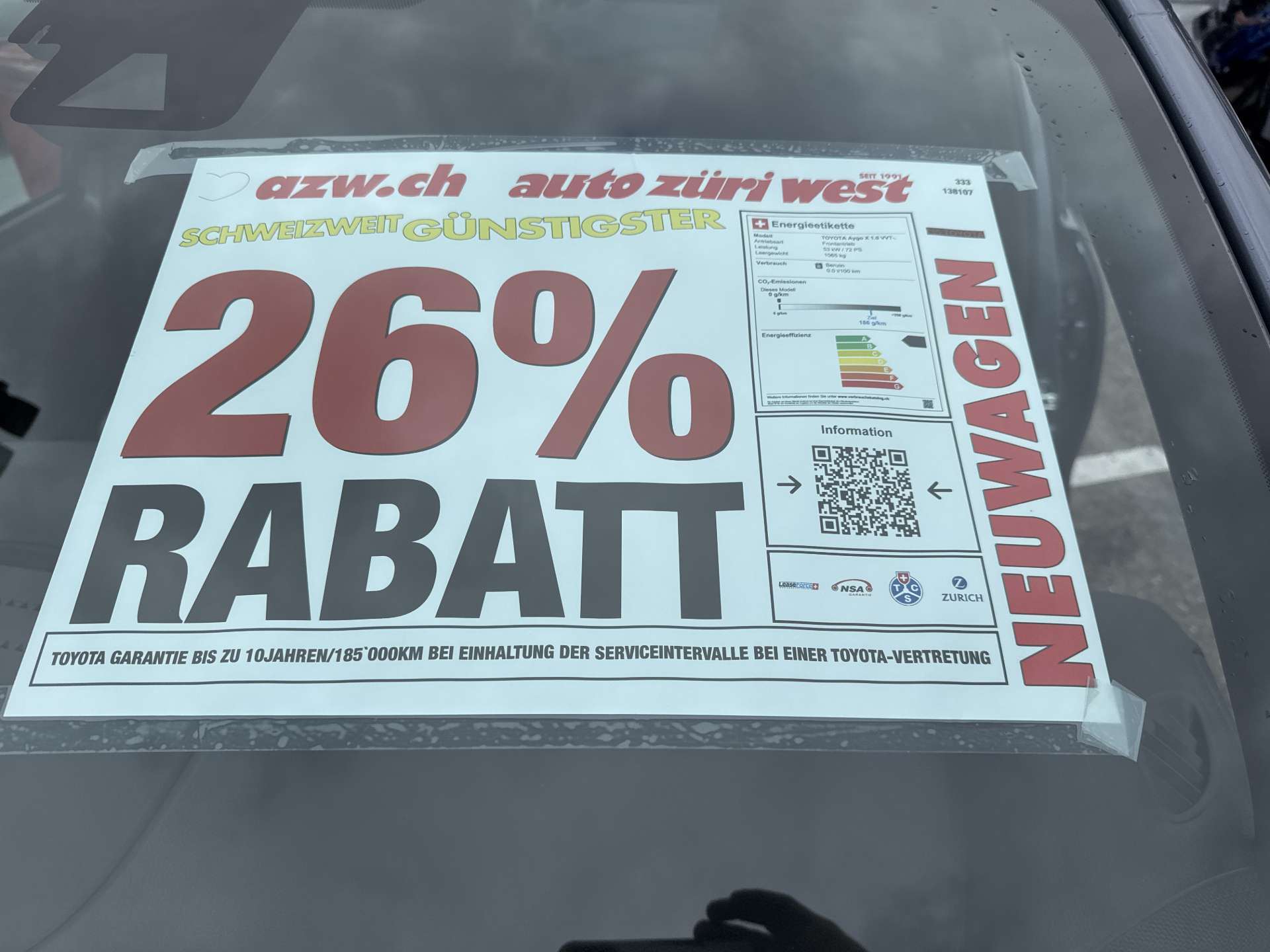 | Garantie | Toyota Garantie bis zu 10Jahren/185`000km bei Einhaltung der Serviceintervalle bei einer Toyota-Vertretung |