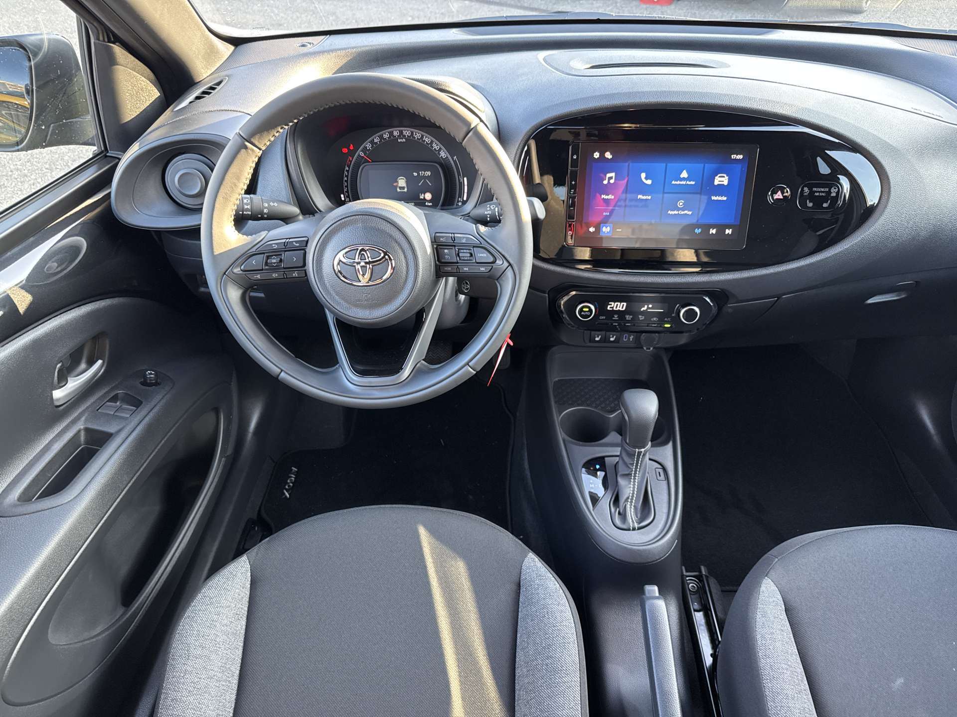 12 V-Anschluss vorne, Airbag: Airbag Fahrer und Beifahrer, Airbag: Kopfairbags vorne und hinten, Airbag: Seitenairbag für Fahrer und Beifahrer, Antiblockiersystem (ABS), Assist: Adaptiver Tempomat ACC, Assist: Geschwindigkeitsbegrenzer ASL, Assist: Pre Collision System mit Fussgänger- und Fahrraderkennung (PCS), Assist: Rückfahrkamera, Assist: Spurverfolgungsassistent (LTA) mit Spurverlasswarner (LDA) und aktiver Lenkunterstützung, Assist: Verkehrsschilderkennung (RSA), Aussenspiegel elektrisch verstellbar und beheizbar, Aussenspiegel in schwarz, Elektronische Traktionskontrolle, Elektronisches Stabilitäts-Programm (ESP), Fensterheber vorne elektrisch, Garantie: 3 Jahre/100’000 km, Getriebe: Stufenloser Automat, Heckscheibe und hintere Seitenscheiben getönt, Kabellose Ladestation für mobile Geräte (Qi), Klima: Klimaanlage mit Fernsteuerung, Klima: Klimaautomatik mit Pollenfilter, Kopfstützen 2. Sitzreihe fix, Lackierung: Bi-tone Lackierung, Lederbezogener Schaltknauf, Lenkrad: Lederlenkrad, Lenkrad: Lenkrad mit Bedienelementen, Licht: Abbiegelicht, LED, Licht: Ambientebeleuchtung Innenraum, Licht: Fernlicht-Automatik (AHB), Licht: Frontscheinwerfer LED, Licht: LED-Tagfahrlicht, Licht: Nebelscheinwerfer Halogen, Medfia. 4 Lautsprecher, Media: 9" Multimedia Display Toyota Touch 3, Media: MyT App Connected Services (10 Jahre gratis), Media: Radio, DAB+ und Bluetooth, Media: Smartphone Integration: Apple CarPlay ohne Kabel / Android Auto ohne Kabel, Media: USB Anschlüsse vorne (1x USB-C), Paket: Comfort-Pack, Polster: Stoff, Räder: 17"-Leichtmetallfelgen, 175/65-R17 Reifen, Räder: Reifendruckkontrollsystem, Regensensor, Servolenkung, Sitze: 2. Sitzreihe abklappbar 50:50, Sitze: Beifahrersitz 4 -fach manuell verstellbar, Sitze: Fahrersitz 6-fach manuell verstellbar, Sitze: Fahrersitz höhenverstellbar, Smart Entry, Sonnenblenden mit Spiegel Fahrerseite beleuchtet, Türgriffe aussen Wagenfarbe, Wegfahrsperre elektronisch, Zentralverriegelung mit Fernbedienung