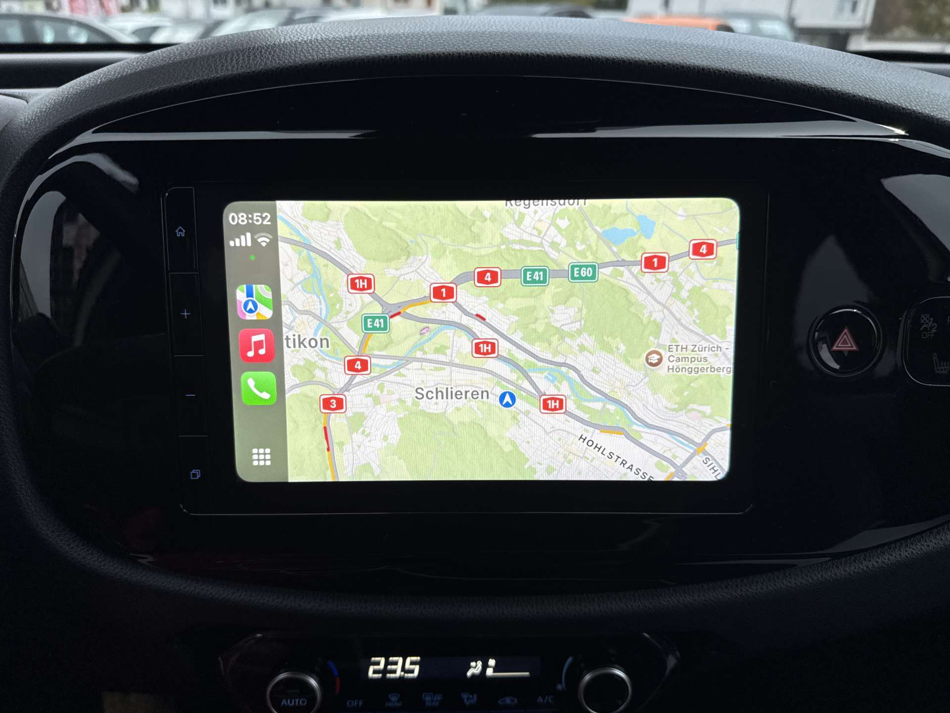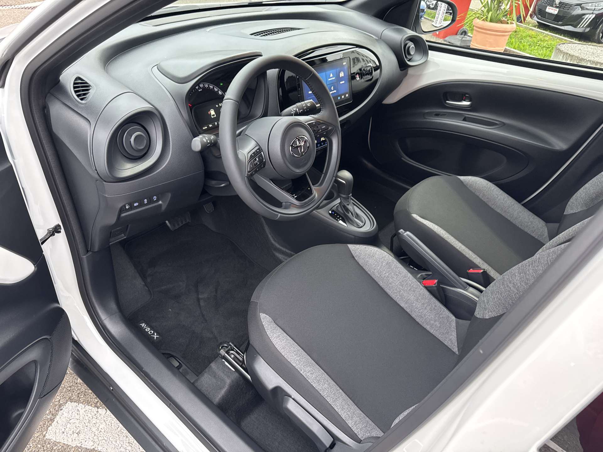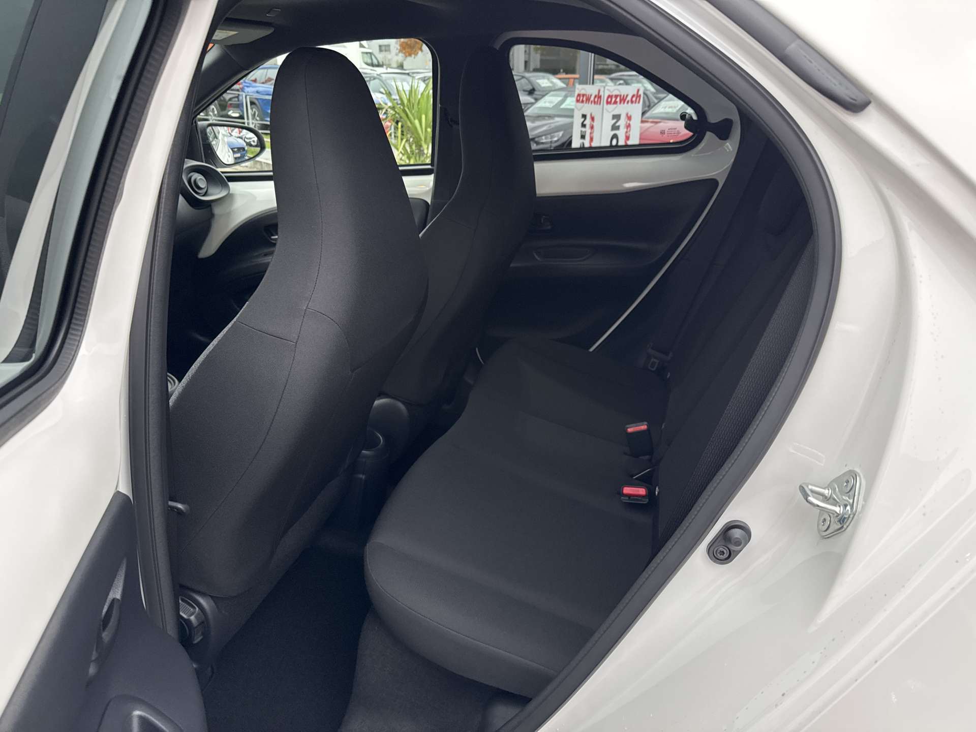 12 V-Anschluss vorne, Airbag: Airbag Fahrer und Beifahrer, Airbag: Kopfairbags vorne und hinten, Airbag: Seitenairbag für Fahrer und Beifahrer, Antiblockiersystem (ABS), Assist: Adaptiver Tempomat ACC, Assist: Geschwindigkeitsbegrenzer ASL, Assist: Pre Collision System mit Fussgänger- und Fahrraderkennung (PCS), Assist: Rückfahrkamera, Assist: Spurverfolgungsassistent (LTA) mit Spurverlasswarner (LDA) und aktiver Lenkunterstützung, Assist: Verkehrsschilderkennung (RSA), Aussenspiegel elektrisch verstellbar und beheizbar, Aussenspiegel in schwarz, Elektronische Traktionskontrolle, Elektronisches Stabilitäts-Programm (ESP), Fensterheber vorne elektrisch, Garantie: 3 Jahre/100’000 km, Getriebe: Stufenloser Automat, Heckscheibe und hintere Seitenscheiben getönt, Kabellose Ladestation für mobile Geräte (Qi), Klima: Klimaanlage mit Fernsteuerung, Klima: Klimaautomatik mit Pollenfilter, Kopfstützen 2. Sitzreihe fix, Lackierung: Bi-tone Lackierung, Lederbezogener Schaltknauf, Lenkrad: Lederlenkrad, Lenkrad: Lenkrad mit Bedienelementen, Licht: Abbiegelicht, LED, Licht: Ambientebeleuchtung Innenraum, Licht: Fernlicht-Automatik (AHB), Licht: Frontscheinwerfer LED, Licht: LED-Tagfahrlicht, Licht: Nebelscheinwerfer Halogen, Medfia. 4 Lautsprecher, Media: 9" Multimedia Display Toyota Touch 3, Media: MyT App Connected Services (10 Jahre gratis), Media: Radio, DAB+ und Bluetooth, Media: Smartphone Integration: Apple CarPlay ohne Kabel / Android Auto ohne Kabel, Media: USB Anschlüsse vorne (1x USB-C), Paket: Comfort-Pack, Polster: Stoff, Räder: 17"-Leichtmetallfelgen, 175/65-R17 Reifen, Räder: Reifendruckkontrollsystem, Regensensor, Servolenkung, Sitze: 2. Sitzreihe abklappbar 50:50, Sitze: Beifahrersitz 4 -fach manuell verstellbar, Sitze: Fahrersitz 6-fach manuell verstellbar, Sitze: Fahrersitz höhenverstellbar, Smart Entry, Sonnenblenden mit Spiegel Fahrerseite beleuchtet, Türgriffe aussen Wagenfarbe, Wegfahrsperre elektronisch, Zentralverriegelung mit Fernbedienung