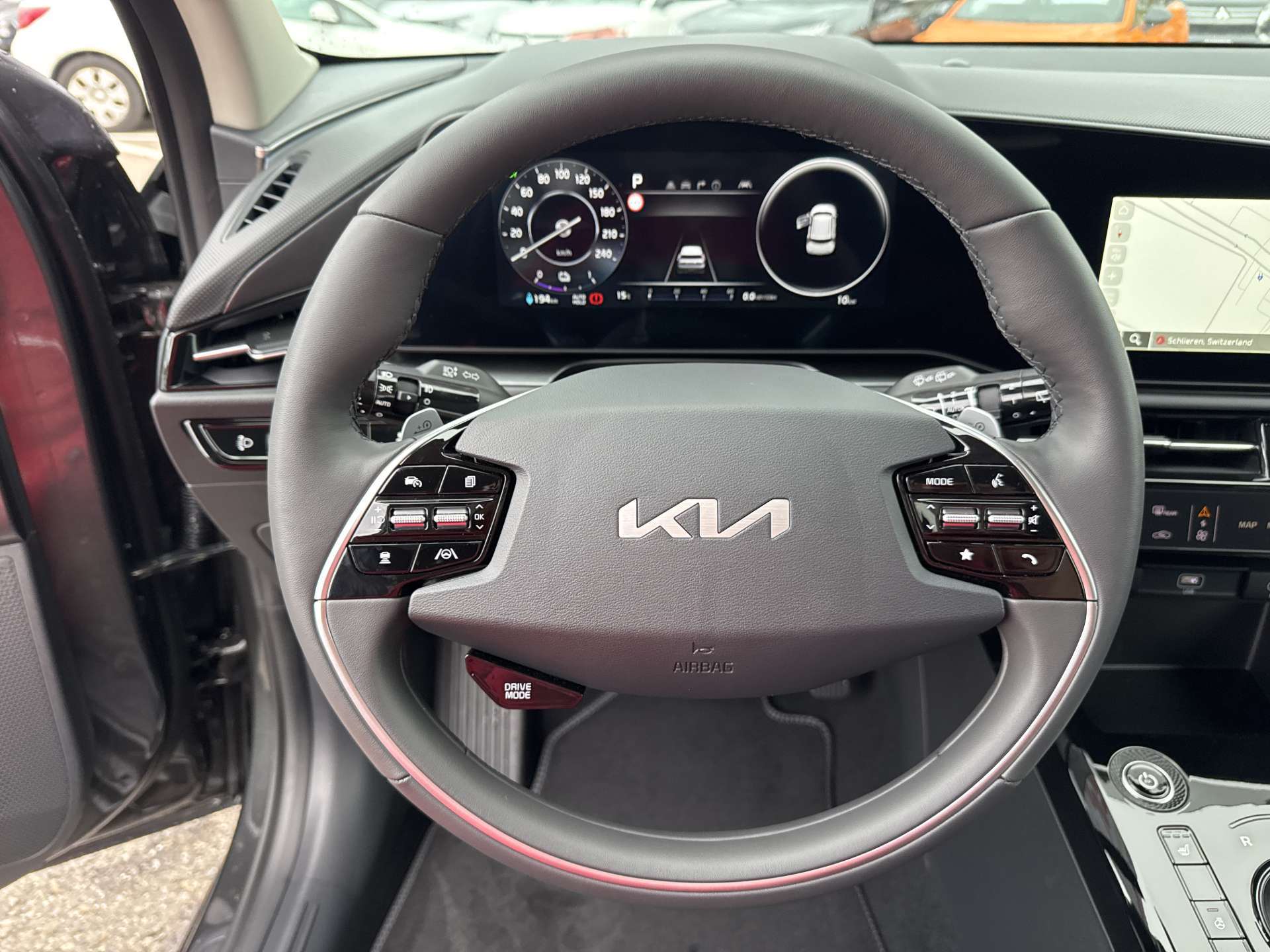 Airbag: Airbag Fahrer und Beifahrer, Beifahrerairbag abschaltbar, Airbag: Center Airbag (zwischen Fahrer und Beifahrer), Airbag: Knie-Airbag, Airbag: Kopfairbags (Vorhang) vorn und hinten, Airbag: Seitenairbags vorn, Ambientebeleuchtung, Antiblockiersystem (ABS), Assist: Ausstiegsassistent, Assist: Autobahnassistent, Assist: Autonomer Notbremsassistent mit Abbiegeerkennung (Drive Wise FCA 1.5), Assist: Berganfahrassistent (HAC), Assist: e-Call automatisches Notrufsystem, Assist: Elektronische Traktionskontrolle (TCS), Assist: Fernlichtassistent, Assist: Inteligenter Geschwindigkeitsassistent (ISLA), Assist: Intelligentes regeneratives Bremssystem (SRBS 2.0), Assist: Lichtsensor, Assist: Müdigkeitserkennung, Assist: Parksensoren hinten, Assist: Parksensoren vorn, Assist: Rückfahrkamera, Assist: Spurfolgeassistent (LFA), Assist: Spurhalteassistent, Assist: Tempomat mit Distanzassistent, Aussenspiegel elektrisch einklappbar, Aussenspiegel elektrisch verstell- und beheizbar, Aussenspiegel in Wagenfarbe, Batterieheizsystem, Dachreling, Design-Elemente (Stossstange, Radläufe und Seitendekor) in Hochglanzschwarz, Drive Mode Select, Elektrische Handbremse, Elektronisches Stabilitäts-Programm (ESP), Fensterheber elektrisch vorn und hinten, Frontscheibe mit integrierter Akustikfolie, Gangwahl-Drehschalter, Gepäckraumbeleuchtung, Getränkehalter in der Mittelkonsole, Getriebe: Direktantrieb, kein Getriebe, Heckscheiben-Wisch-/Waschanlage, Heckscheibenheizung, Innenrückspiegel automatisch abblendbar, Insassenalarm, Kindersicherung elektrisch, Klima: Klimaautomatik 2-Zonen, Klima: Wärmepumpe und Vehicle-to-Load-Funktion (V2L), Kofferraumabdeckung, Kühlergrill mit Chromverzierung, Lackierung: Uni Lackierung, Ladeboden variabel, Lenkrad: Lederlenkrad, Lenkrad: Lenkrad beheizbar, Lenkrad: Lenkrad höhen- und tiefenverstellbar, Lenkrad: Multifunktionslenkrad, Lenkrad: Schaltwippen hinter dem Lenkrad, Licht: Drittes Bremslicht, Licht: Dual LED-Scheinwerfer, Licht: LED-Nebelscheinwerfer, Licht: LED-Rückleuchten, Licht: LED-Tagfahrlicht, Licht: Nebelschlussleuchte, Media: 10.25"-Navigationssystem, DAB+, Media: 6 Lautsprecher, Media: Android Auto und Apple CarPlay, Media: Bluetooth Freisprecheinrichtung, Media: Online-Dienste Kia Connect inkl. 7 Jahre, Media: USB-Anschluss, Media: USB-Anschlüsse Rücksitzlehnen, Mittelarmlehne vorne mit Staufach, On-Board-Charger (3 Phasen), Privacy-Verglasung, Räder: 4 Leichtmetallfelgen 7 J × 17", Räder: Reifendruckkontrollsystem (TPMS), Räder: Tire mobility kit, Regensensor, Servolenkung, Sitze: Beifahrersitz höhenverstellbar, Sitze: Fahrersitz höhenverstellbar, Sitze: ISOFIX-Kindersitzverankerung hinten, Sitze: Kopfstützen höhenverstellbar vorne und hinten, Sitze: Lendenwirbelstütze für den Fahrersitz, Sitze: Sitzheizung vorne, Sitze: Sitzlehne der 2. Sitzreihe umklappbar, asymmetrisch 60:40, Sitze: Tasche an der Rücksitzlehne Beifahrersitz, Sitze: Tasche an der Rücksitzlehne Fahrersitz, Sonnenblende Fahrer und Beifahrerseite, Start-/Stop-Knopf mit Smart Key, Stauraum unter dem Ladeboden, Stossfänger mit Chromverzierung, Supervision Cluster digital 10.25", Wegfahrsperre elektronisch, Zentralverriegelung mit Fernbedienung
