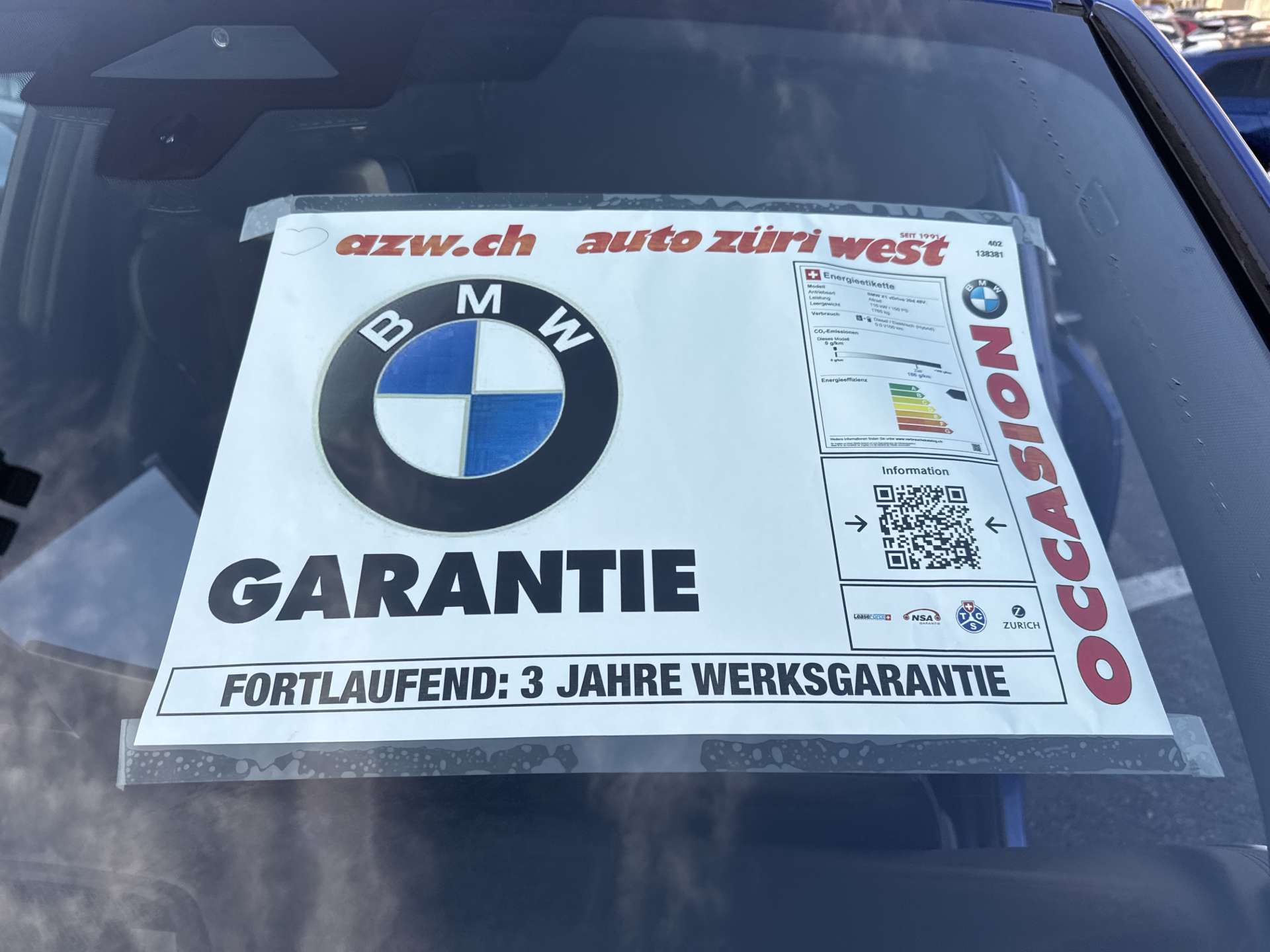2 Cupholder, Mittelkonsole, 3-Punkt-Sicherheitsgurte auf allen Plätzen, Ablagemöglichkeiten, Airbag: Airbag Beifahrer deaktivierbar, Airbag: Frontairbagsystem für Fahrer und Beifahrer, Airbag: Kopfairbags für alle 4 äusseren Sitzplätze, Airbag: Seitenairbag für Fahrer und Beifahrer, Alarmanlage, Antiblockiersystem (ABS), Assist: Active Guard, Assist: Aktiver Fussgängerschutz, Assist: Aufmerksamkeitsassistent, Assist: Auto-Hold-Funktion, Assist: Cornering Brake Control (CBC), Assist: Crash-Sensor, Assist: Dynamische Brems Control (DBC), Assist: Dynamische Stabilitäts Control (DSC) mit erweiterten Umfängen, Assist: Geschwindigkeitsregelung mit Bremsfunktion, Assist: Parking Assistant, Auto Start Stop Funktion, BMW BluePerformance mit AdBlue, BMW Mobile Care, Condition Based Service, Dekor: M Interieurleisten Aluminium Hexacube hell, Dieselpartikelfilter, Elektronische Parkbremse, Fahrwerk: Adaptives M Fahrwerk, Fahrwerk: xDrive, Fensterheber, elektrisch, Fussmatten in Velours, Gesetzlicher Notruf, Getriebe: 7-Stufen-Automat Steptronic mit Doppelkupplung, Grösserer Kraftstofftank ca. 9 Liter, Heckscheibenheizung, Innenbeleuchtung, Instrumententafel Luxury, Intelligenter Notruf, Kleiderhaken, hinten, Klima: Klimaautomatik, Lackierung: Uni-Lackierung, Lenkrad: M Lederlenkrad, Licht: Begrüssungslicht, Licht: Dynamische Bremsleuchten, Licht: Heimleuchten, Licht: LED Scheinwerfer, M Dachhimmel Anthrazit, M Dachreling Hochglanz Shadow Line, M Hochglanz Shadow Line, M Sport Exterieurumfänge, M Sport Interieurumfänge, Make-Up-Spiegel-Leuchten, Media: BMW Live Cockpit Plus, Media: DAB+ Tuner, Media: Personal eSIM, Mittelkonsole mit Ablagefach, Performance Control, Polster: M Alcantara/Veganza-Kombination, Räder: 18" M Leichtmetallräder Doppelspeiche 838 M Bicolor, Räder: Radschraubensicherung, Regensensor und automatische Fahrlichtsteuerung, Reifendruckverlust-Warnsystem, Scheibenwaschdüsen vorne beheizt, Schliessystem mit Zentralverriegelung, Servotronic, Sitze: Fondsitze, Sitzlehne mit 40:20:40-Klappung, Sitze: Kindersitzbefestigung i-Size für Beifahrer, Sitze: Sitzheizung für Fahrer und Beifahrer, Sitze: Sportsitze für Fahrer und Beifahrer, Steckdose, Teleservices, Türen: Automatische Heckklappenbetätigung, Warndreieck