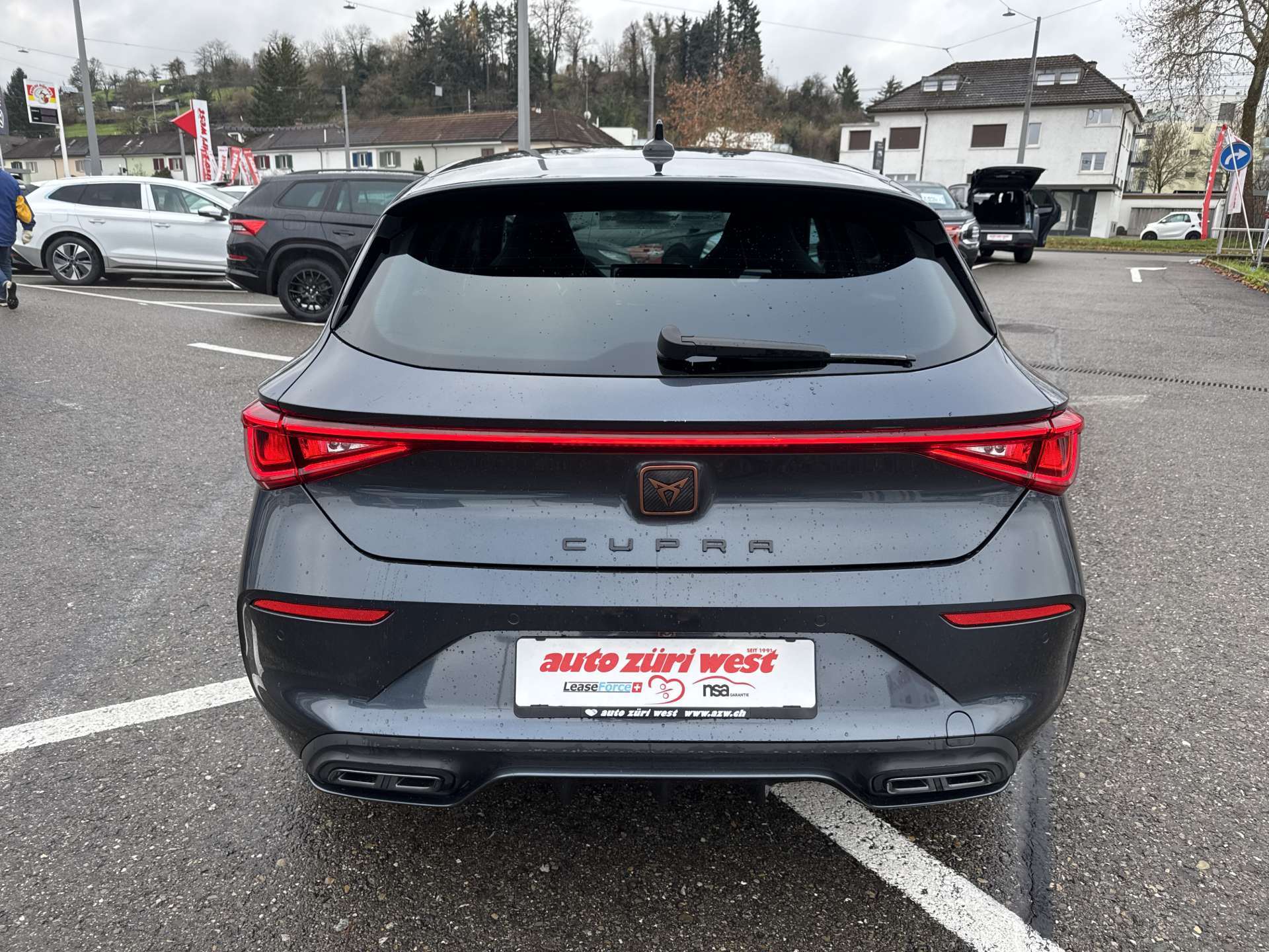 Abgedunkelte Scheiben ab B-Säule hinten, ABS, EBV elektronische Bremskraft-verteilung, Airbag: Airbag Beifahrer deaktivierbar, Airbag: Airbag Fahrer und Beifahrer, Airbag: Kopfairbags vorne und hinten, Airbag: Seitenairbags für Fahrer und Beifahrer, Airbag: Zentral Airbag, Assist: Einparkhilfe hinten, Assist: Elektronische Parkbremse mit Auto Hold Funktion, Assist: Lane assist (Spurhalteassistent), Assist: Multifunktionskamera, Assist: Multikollisionsbremse, Assist: PreCrash Sicherheitssystem, Assist: Speed limiter, Assist: Tempomat, Assist: Tiredness detection (Müdigkeitserkennung), Assist: Traction Control (TCS), deaktivierbar, Aussenspiegel elektrisch einstell-, beheiz- und einklappbar mit Beifahrerabsenkfunktion, Aussenspiegel in Cosmo Grey, Türgriffe in Wagenfarbe, Aussenspiegel mit LED-Blinker, Bremszangen vorne und hinten in Schwarz, CUPRA Drive Profile mit "driving experience button" Comfort, Sport, CUPRA, Individual, CUPRA-Heckspoiler, Dachhimmel schwarz, Dekor: Dekorblenden in Copper, Dreipunkt-Automatiksicherheitsgurte auf allen Plätzen, Elektrische Fensterheber vorne und hinten mit Komfortschaltung und Einklemmschutz, ESC mit EBA, DSR und Reifendruckkontrolle, Fahrwerk: Progressivlenkung, Fahrwerk: Vorderachs-Differenzialsperre, Full Digital Cockpit, Fussmatten vorne und hinten, Getriebe: 7-Gang-Sequentielle-Getriebe mit Automatikfunktion, Heckscheiben-Wisch-/Waschanlage mit Intervall, Heckscheibenheizung, Innenspiegel automatisch abblendbar, Kindersitzverankerung ISOFIX (äussere Plätze hinten), Klima: 3-Zonen Climatronic, Lackierung: Uni-Lackierung, LED-Innenraumbeleuchtung mit Ambientebeleuchtung"Monochrom", Lenkrad: Beheizbares Ledermultifunktionslenkrad mit Schaltwippen, Licht- und Regensensor, Licht: Coming Leaving Home Funktion, Licht: Drittes Bremslicht, Licht: Durchgehende Full LED-Heckleuchten, Licht: LED-Heckleuchten mit dynamischem Blinklicht, Licht: LED-Nebelscheinwerfer mit Cornering-Funktion, Licht: LED-Scheinwerfer für Abblend- und Fernlicht, Licht: LED-Tagfahrlicht, Licht: Leuchtweitenregulierung, Media: 10'' Infotainment (MIB3), Media: 2 USB C Anschlüsse hinten und vorne, Media: 6 Lautsprecher, Media: CUPRA Connect Safety & Services für Media System, Media: DAB+ (Digital Audio Broadcasting), Media: Mobiltelefon Freisprechanlage Bluetooth, Media: Sprachsteuerung, Mittelarmlehne vorne und hinten, Nebelschlussleuchte, Ottopartikelfilter, Parksensoren in Midnight Black, Pollenfilter (Staubfilter), Pyrotechnische Gurtstraffer und Gurtkraftbegrenzer, Räder: Alufelgen 7,5J x 18", "EXCLUSIVE" (225/40 R18), Räder: Reifendruck-Kontrollanzeige, Räder: Reifenreparatur-Set (Tire Fit), Schlüsselloses Schliess- und Startsystem (KESSY), Servolenkung mit geschwindigkeitsabhängiger Lenkkraftunterstützung, Sicherheitsgurtkontrolle für alle Sitze, Sitze: 2 verstellbare Kopfstützen vorne und 3 hinten, Sitze: CUPRA Sportsitze in "Sharp Textil schwarz", Sitze: Geteilt abklappbare Rücksitzlehne 1/3 - 2/3, Sitze: Kindersitzverankerung ISOFIX hinten, Sitze: Vordersitze höhenverstellbar, Sonnenblende Fahrer und Beifahrerseite, Stopp - Start- und Rekuperationssystem, Stossfänger in Sport-Optik mit Heckdiffusor in Wagenfarbe, Vollverzinkte Karosserie, Wärmeschutzverglasung, Wegfahrsperre elektronisch, Zentralverriegelung mit Funkfernbedienung, 2 Funkschlüssel, Zierleisten Seitenfenster in Schwarz Glanz, Zwei Abgasblenden