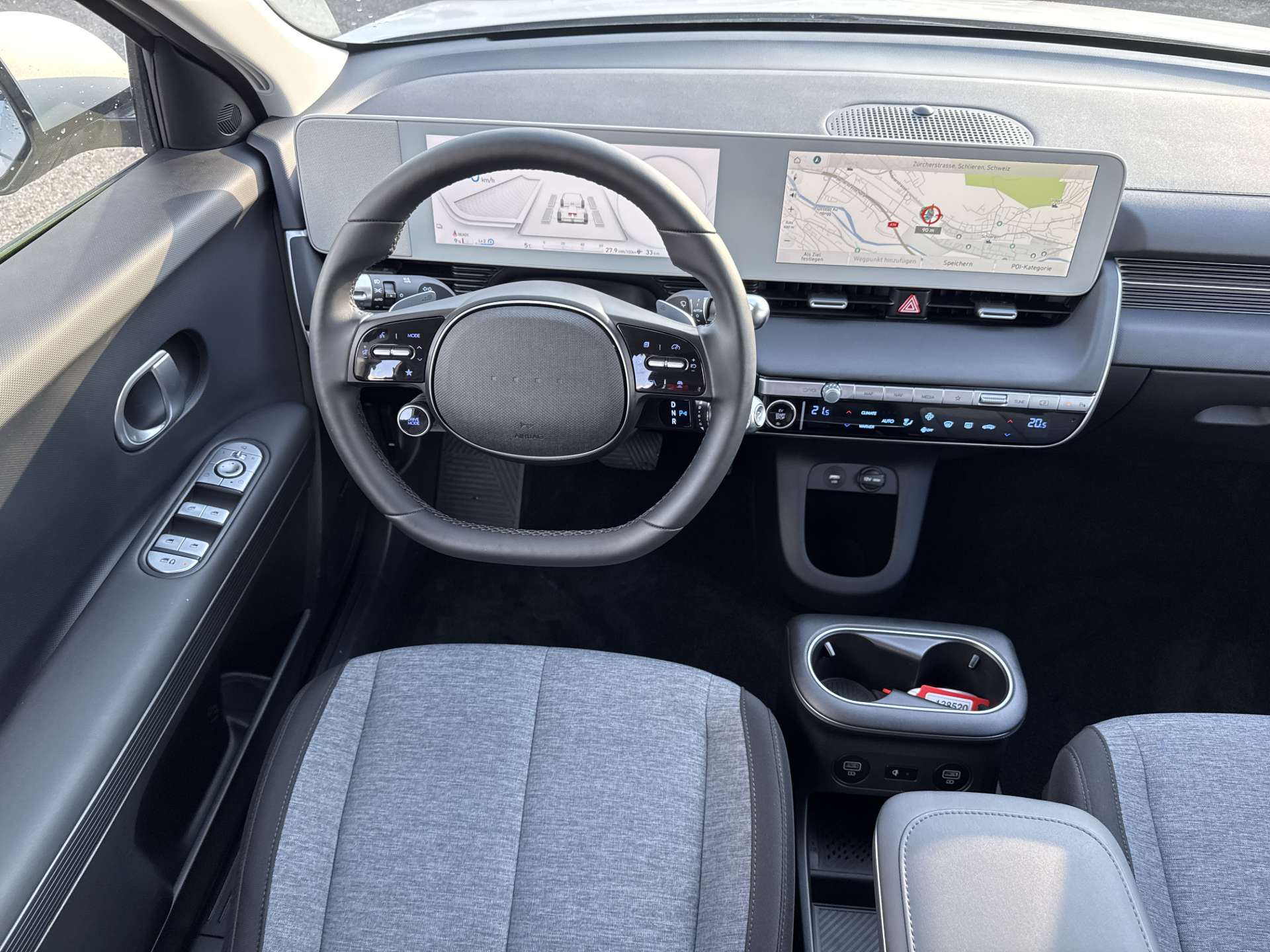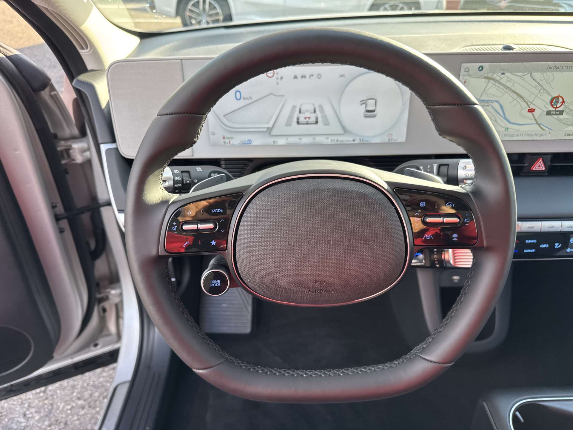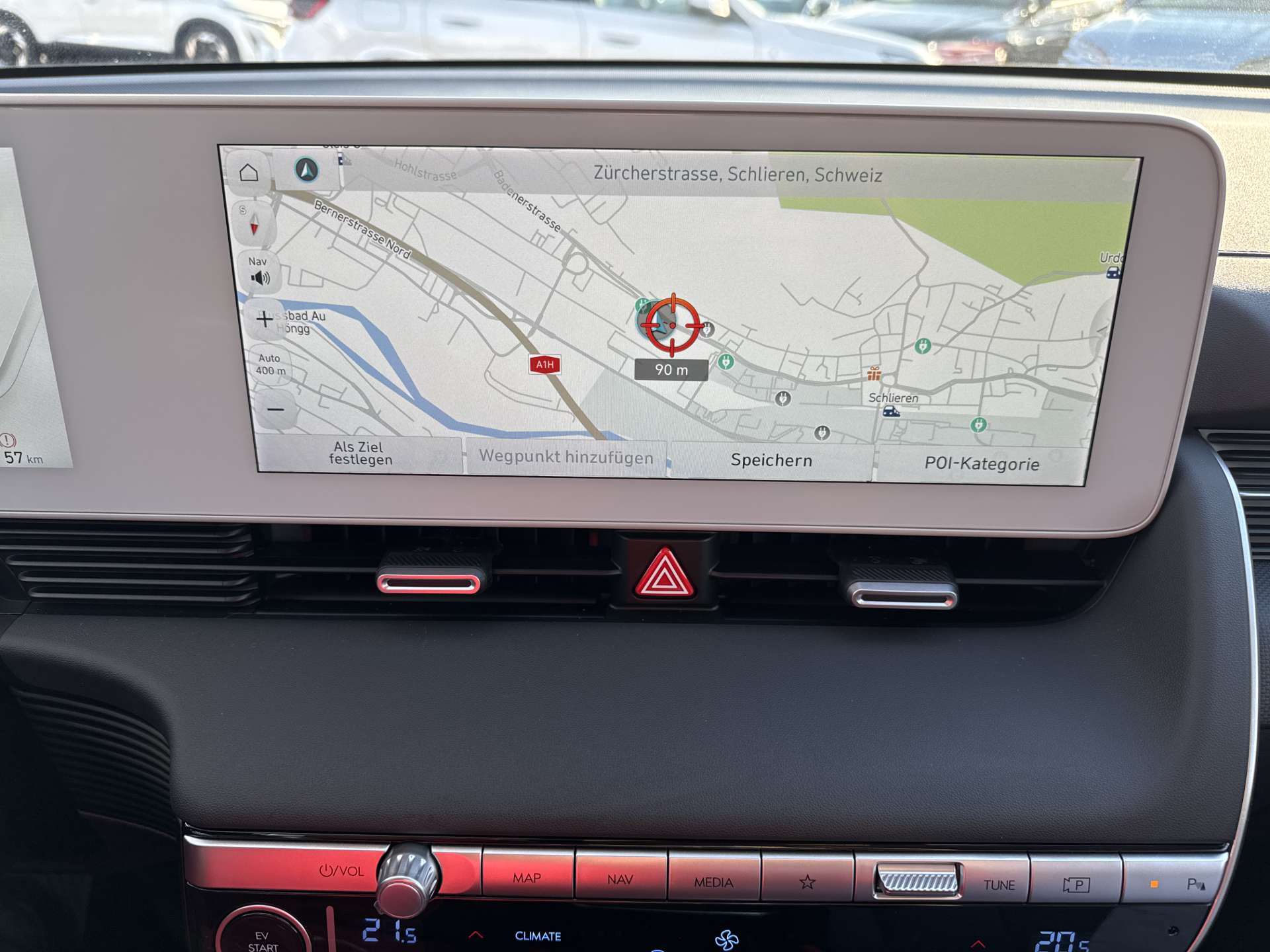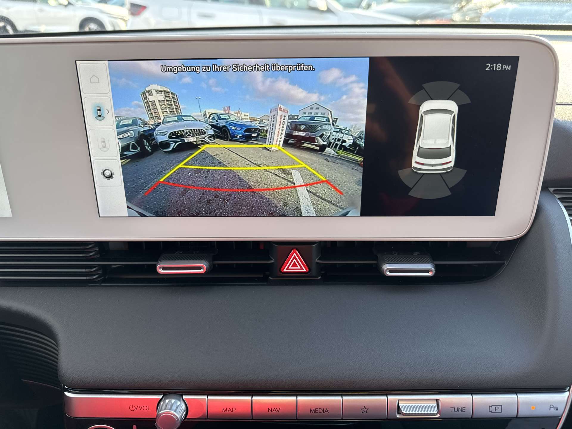 12 Volt-Steckdose im Laderaum, 12-Volt-Steckdose vorne, 3-Punkt-Sicherheitsgurte auf allen Plätzen, ABS mit elektronischer Bremskraftverteilung EBD, Airbag: Center Airbag vorne, Airbag: Deaktivierung Frontairbag Beifahrerseite, Airbag: Front- und Seitenairbags vorne, Airbag: Vorhangairbags vorne und hinten, Akustik-Frontscheibe, Akustik-Verbundglas vorne und hinten, Allradantrieb permanent, Anfahralarm Vorderfahrzeug, Assist: Aktiver Totwinkelassistent, Assist: Aufmerksamkeitsassistent, Assist: Autobahn- und Stauassistent, Assist: Automatisches Notrufsystem eCall, Assist: Berganfahrhilfe, Assist: Einparkhilfe vorne und hinten, Assist: Elektrische Parkbremse mit Auto-Hold-Funktion, Assist: Notbremsassistent mit Fussgänger-/Fahrraderkennung und Abbiegefunktion, Assist: Regensensor, Assist: Rückfahrkamera mit digitalem Rückspiegel, Assist: Spurhalteassistent, Assist: Tempomat mit Geschwindigkeitsbegrenzer, Aussenspiegel und Türgriffe in Wagenfarbe, Automatisch abblendender Innenspiegel, Batterieheizsystem, Digitale Armaturentafel mit 12.3'' TFT LCD Anzeige, Drive Mode Select, Elektrisch verstell- und heizbare Aussenspiegel mit integrierten LED-Seitenblinkern, Elektronisches Stabilitätsprogramm ESP mit Multikollisionsbremse, Fensterheber vorne mit Auf-/Abwärtsautomatik und Einklemmschutz, Fensterheber vorne und hinten elektrisch, Gepäckraumbeleuchtung vorne und hinten, Gepäckraumrollo, Getriebe: Direktantrieb, kein Getriebe, Haifischantenne, Hochvoltbatterie mit 800 V-Technologie (400 V-kompatibel), ICCB-Ladekabel mit Typ 12-Stecker, Insassenalarm, ISOFIX Kindersitzvorrichtung, Klima: 2-Zonen-Klimaautomatik mit Anti-Beschlagsystem, Lackierung: Pearl-Lackierung Lucid Blue, Ladegerät (On-Board Charger) dreiphasig bis zu 11 kW, Lenkrad: Lederlenkrad längs- und höhenverstellbar, Lenkrad: Lenkradheizung, Lenkrad: Wippen am Lenkrad für regeneratives Bremsen, Licht: Fernlichtassistent, Licht: LED-Rückleuchten im Pixel-Design, Licht: LED-Scheinwerfer im Pixel-Design, Licht: LED-Tagfahrlicht, Licht: Lichtautomatik, Manuell ausklappende Türgriffe, Media: 2x USB-Anschluss hinten, Media: 3x USB-Anschluss vorne, Media: 6 Lautsprecher, Media: Android Auto - und Apple CarPlay -Funktion, Media: Audio-Fernbedienung am Lenkrad, Media: Digitalradio DAB+, Media: Kabelloses Laden für Smartphone, Media: MapCare Lifetime - lebenslange Updates (exkl. Arbeitsleistung), Media: Multi-Bluetooth mit Freisprecheinrichtung, Media: Navigationssystem mit 12.3"-Touchscreen, Media: Telematikdienst Bluelink Light (10 Jahre gratis), Mittelarmlehne hinten mit Getränkehalter, Polster: Stoff-Ausstattung, Privacy Glass, abgedunkeltes Scheibenglas hinten (ab B-Säule), Räder: 19'' Leichtmetallfelgen, Räder: Reifendruck-Kontrollsystem High Line, Räder: Reifenreparatur-Set, Schlüsselloses Zugangs- und Startsystem Smart Key, Schnellladeanschluss CCS bis zu 350 kW, Servolenkung, Sitze: Elektrisch verstellbarer Fahrersitz, Sitze: Höhenverstellbare Vordersitze, Sitze: Lendenwirbelstütze Fahrersitz, pneumatisch einstellbar, Sitze: Rücksitze getrennt abklappbar (60/40), Sitze: Sitzheizung vorne, V2L-Technologie: 230V-Steckdosen innen und aussen (via Adapter), Virtuelles Motorengeräusch VESS, Vorbereitung für Anhängevorrichtung, Wärmedämmende Frontscheibe, Wegfahrsperre elektronisch, Zentralverriegelung