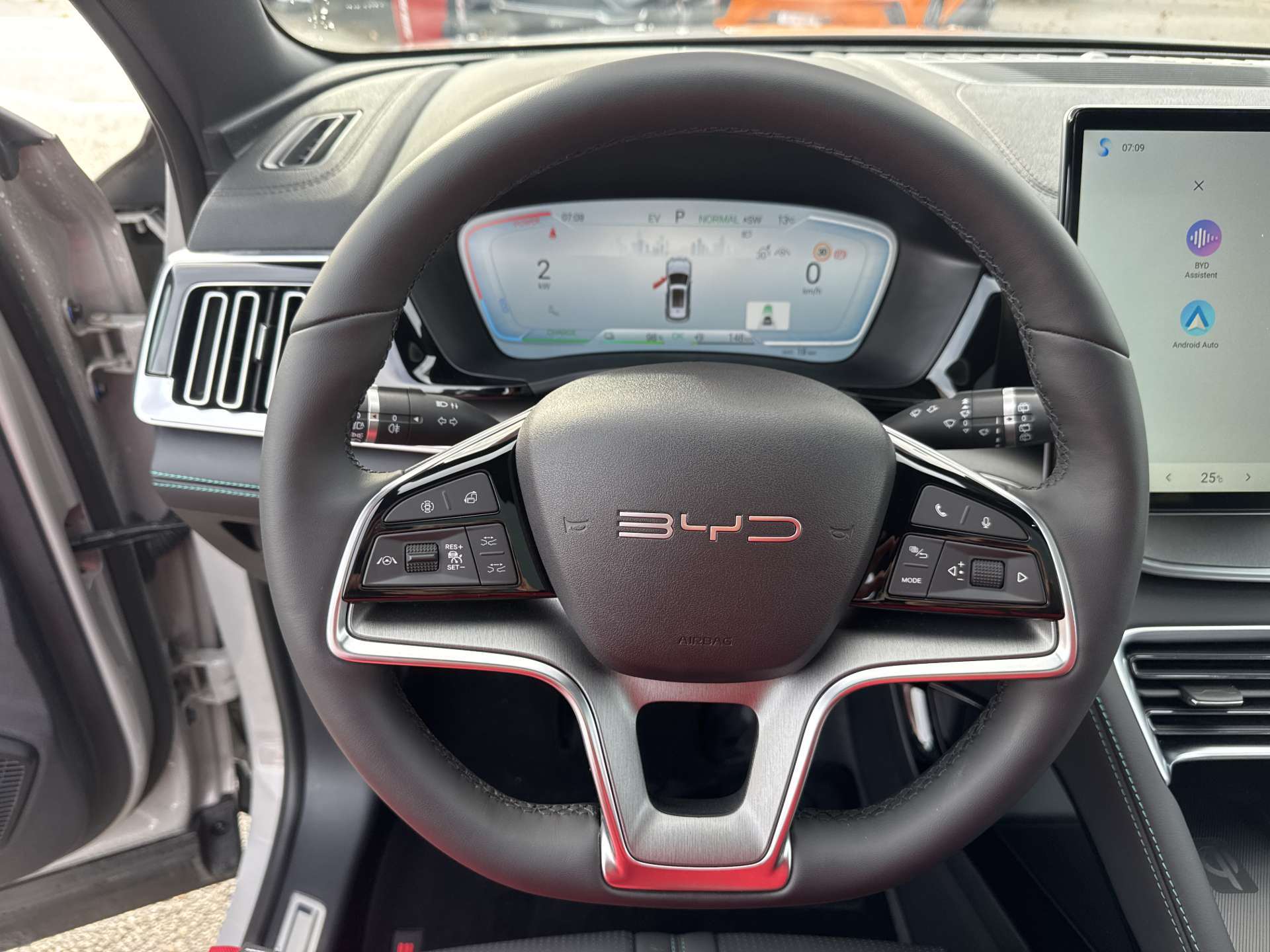 11kW On-Board Charger (OBC), 12-V-Stromanschluss, 2 x Smart Key, 4 x One-Touch-Fensterheber mit Einklemmschutzfunktion, Airbag: Fahrerairbag und Beifahrerairbag, Airbag: Frontairbag in der Mitte, Airbag: Seitenairbags vorn, Airbag: Vorhangairbags, Ambientebeleuchtung, mehrfarbig, Antiblockiersystem (ABS), Armlehne hinten, 2 Getränkehalter, Assist: Spurverlassenswarnung (LDW), Assist: 360° view camera, Assist: Adaptive Geschwindigkeitsregelung (ACC) & Intelligente Geschwindigkeitsregelung (ICC), Assist: Auto Hold, Assist: Automatische Notbremsung (AEB), Assist: Bergabfahrhilfe (HDC), Assist: Berganfahrassistent (HSA), Assist: Comfort Stop (CST), Assist: Elektrische Parkbremse (EPB), Assist: Heckkollisionswarnung (RCW), Assist: Hydraulischer Bremsassistent (HBA), Assist: Kindererkennung (CPD), Assist: Kontrollierte Verzögerung mit Feststellbremse (CDP), Assist: Müdigkeitserkennung für den Fahrer (DFW) und Aufmerksamkeitswarnung für den Fahrer (DFW), Assist: Parksensoren vorne und hinten, Assist: Querverkehrswarnung hinten (RCTA) & Querverkehrsbremse hinten (RCTB), Assist: Querverkehrswarnung vorn (FCTA) & Querverkehrsbremse vorn (FCTB), Assist: Spurhalteassistent (ELKA), Assist: Spurverlassensverhinderung (LDP), Assist: Spurwechselassistent (LCA), Assist: Toter-Winkel-Warnung (BSD), Assist: Traktionskontrolle (TCS), Assist: Überschlagskontrollsystem (RMI), Assist: Verkehrszeichenerkennung (TSR), Assist: Vorwärtskollisionswarnung (FCW), Aussenspiegel elektrisch verstellbar, elektrisch anklappbar, beheizbar, Automatisch abblendender Rückspiegel, Automatisches Verriegelungssystem, Bodenbeleuchtung vorne, Bremsüberbrückungssystem (BOS), Dachreling in Aluminium, Diebstahlsicherung, Dynamische Blinker, Elektrische Heckklappe, Elektronische Bremskraftverteilung (EBD), Elektronische Kindersicherung, ESP (Elektronisches Stabilitätsprogramm), Fahrmodus: Eco, Normal, Sport, Snow, Fahrwerk: Fahrdynamikregelung (VDC), Frontscheibe, Scheibenwischer mit Regensensor, Frontscheibe, UV-Schutz, Wärmedämmung, Schalldämmung, Fussraumbeleuchtung in den Aussenspiegeln, Garantie: Batterie-Garantie 8 Jahre oder 200'000 km, Garantie: Garantie 6 Jahre oder 150'000 km, Gepäckraumleuchte, Getriebe: Direktantrieb, kein Getriebe, Head-up-Display (HUD), ISOFIX und i-Size, Beifahrer- und äussere Rücksitze, Keyless entry & keyless start, Kindersicherung manuell, Klima: Belüftungsdüsen hinten, Kofferraum-Gepäckablage, Kraftbegrenzender Sicherheitsgurt auf dem mittleren Rücksitz, Lackierung: Metallic-Lackierung, LED-Leseleuchten hinten, LED-Leseleuchten vorn, Licht: Fernlichtassistent (HMA), Licht: Follow-me-Home, Licht: LED-Rückleuchten, Licht: LED-Scheinwerfer, automatisches Ein-/Ausschalten, Licht: LED-Tagfahrlicht, Licht: Nebelschlussleuchten, Media: 12,3" TFT-LCD-Instrumententafel, Media: 15,6" elektrisch drehbarer Touchscreen, Media: Android Auto & Apple CarPlay, Media: DAB+ & FM, Media: Infinity-Soundsystem, 10 Lautsprecher, Media: Integrierte 4G-Konnektivität2, Media: Intelligente Sprachsteuerung "Hallo, BYD", Media: Smartphone wireless charging, 2x 15 W, Media: USB-Anschlüsse hinten: 1 x 18W Typ C, 1 x 60 W Typ C, Media: USB-Anschlüsse vorn: 1 x 18W Typ C, 1 x 60 W Typ C, Mehrfarbige LED-Ladeanzeige, Mittelarmlehne hinten, 2 Getränkehalter, Mittelarmlehne vorn, 2 Getränkehalter, Notruf, Panoramadach, elektrisch verstellbares Sonnenschutzrollo, PM2.5 filter, PM2.5-Luftreinigungssystem, Privacy glass in fond, Räder: 19" Bicolor- Leichtmetallfelgen, Reifendruckkontrolle (TPMS), Servolenkung, Sitze: Beifahrersitz belüftet, beheizt, Sitze: Beifahrersitz, elektrisch verstellbar, 4-fach, Sitze: Fahrersitz belüftet, beheizt, gespeicherte Einstellung, Sitze: Fahrersitz und Beifahrer, integrierte Kopfstütze, Sitze: Fahrersitz, elektrisch verstellbar, 8-fach, Positionsspeicher, Sitze: Rücksitze 40:60 geteilt umklappbar, Sitze: Rücksitze, manuell einstellbare Kopfstütze, Türöffnungswarnung (DOW), Vier LED-Türleuchten, Vordersitz-Sonnenblenden mit beleuchtetem Schminkspiegel, Vorgespannte und kraftbegrenzende Sicherheitsgurte vorn, Wärmepumpe