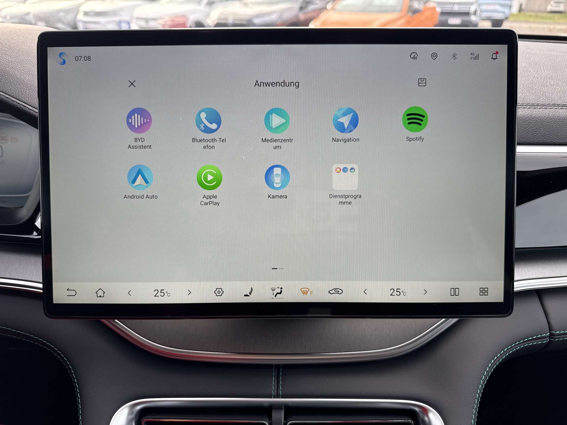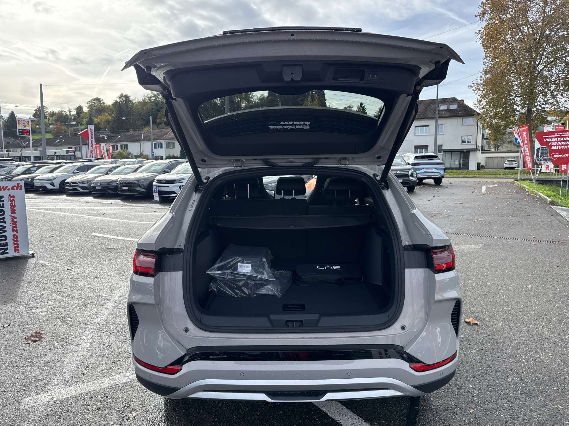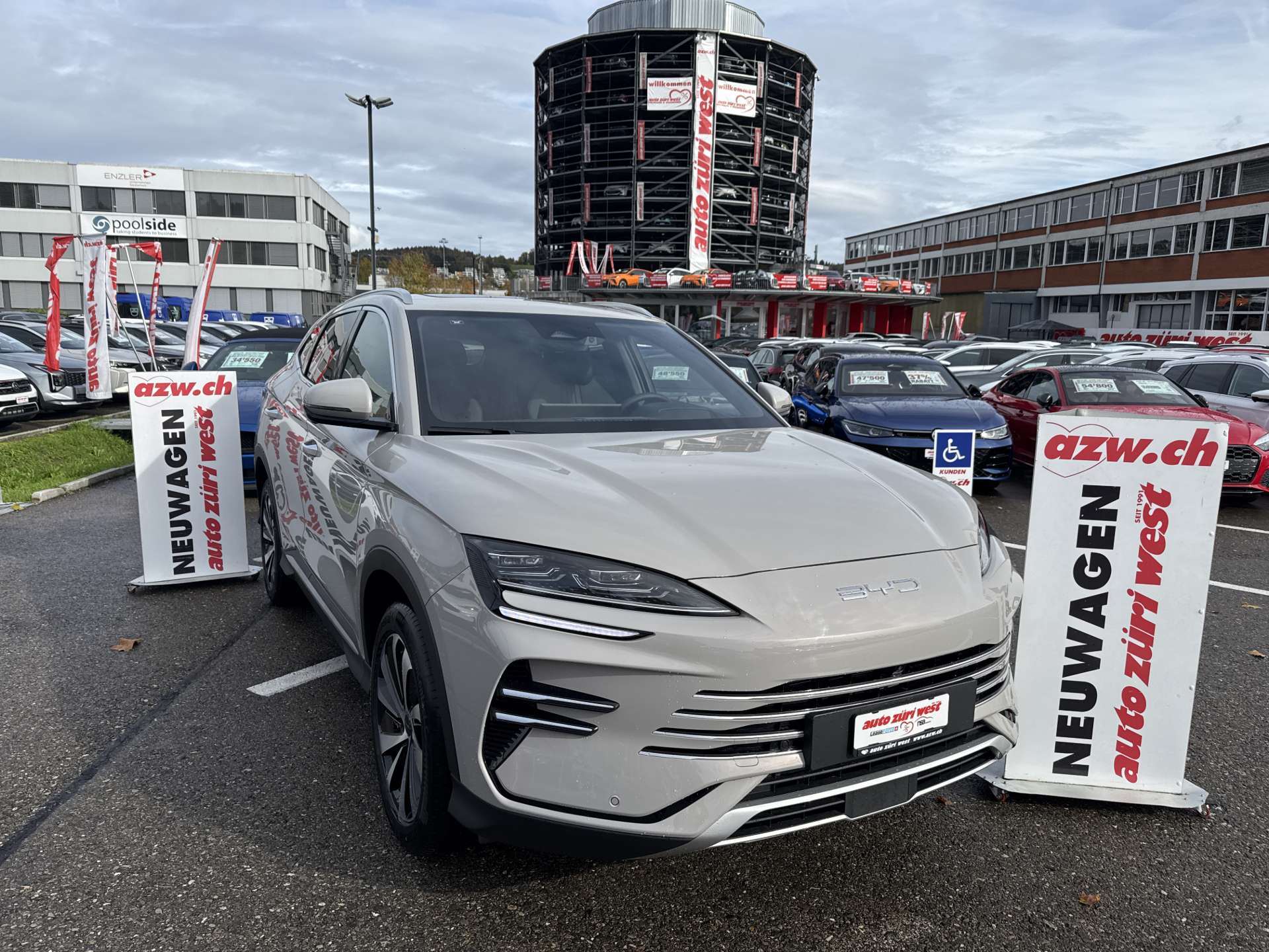 11kW On-Board Charger (OBC), 12-V-Stromanschluss, 2 x Smart Key, 4 x One-Touch-Fensterheber mit Einklemmschutzfunktion, Airbag: Fahrerairbag und Beifahrerairbag, Airbag: Frontairbag in der Mitte, Airbag: Seitenairbags vorn, Airbag: Vorhangairbags, Ambientebeleuchtung, mehrfarbig, Antiblockiersystem (ABS), Armlehne hinten, 2 Getränkehalter, Assist: Spurverlassenswarnung (LDW), Assist: 360° view camera, Assist: Adaptive Geschwindigkeitsregelung (ACC) & Intelligente Geschwindigkeitsregelung (ICC), Assist: Auto Hold, Assist: Automatische Notbremsung (AEB), Assist: Bergabfahrhilfe (HDC), Assist: Berganfahrassistent (HSA), Assist: Comfort Stop (CST), Assist: Elektrische Parkbremse (EPB), Assist: Heckkollisionswarnung (RCW), Assist: Hydraulischer Bremsassistent (HBA), Assist: Kindererkennung (CPD), Assist: Kontrollierte Verzögerung mit Feststellbremse (CDP), Assist: Müdigkeitserkennung für den Fahrer (DFW) und Aufmerksamkeitswarnung für den Fahrer (DFW), Assist: Parksensoren vorne und hinten, Assist: Querverkehrswarnung hinten (RCTA) & Querverkehrsbremse hinten (RCTB), Assist: Querverkehrswarnung vorn (FCTA) & Querverkehrsbremse vorn (FCTB), Assist: Spurhalteassistent (ELKA), Assist: Spurverlassensverhinderung (LDP), Assist: Spurwechselassistent (LCA), Assist: Toter-Winkel-Warnung (BSD), Assist: Traktionskontrolle (TCS), Assist: Überschlagskontrollsystem (RMI), Assist: Verkehrszeichenerkennung (TSR), Assist: Vorwärtskollisionswarnung (FCW), Aussenspiegel elektrisch verstellbar, elektrisch anklappbar, beheizbar, Automatisch abblendender Rückspiegel, Automatisches Verriegelungssystem, Bodenbeleuchtung vorne, Bremsüberbrückungssystem (BOS), Dachreling in Aluminium, Diebstahlsicherung, Dynamische Blinker, Elektrische Heckklappe, Elektronische Bremskraftverteilung (EBD), Elektronische Kindersicherung, ESP (Elektronisches Stabilitätsprogramm), Fahrmodus: Eco, Normal, Sport, Snow, Fahrwerk: Fahrdynamikregelung (VDC), Frontscheibe, Scheibenwischer mit Regensensor, Frontscheibe, UV-Schutz, Wärmedämmung, Schalldämmung, Fussraumbeleuchtung in den Aussenspiegeln, Garantie: Batterie-Garantie 8 Jahre oder 200'000 km, Garantie: Garantie 6 Jahre oder 150'000 km, Gepäckraumleuchte, Getriebe: Direktantrieb, kein Getriebe, Head-up-Display (HUD), ISOFIX und i-Size, Beifahrer- und äussere Rücksitze, Keyless entry & keyless start, Kindersicherung manuell, Klima: Belüftungsdüsen hinten, Kofferraum-Gepäckablage, Kraftbegrenzender Sicherheitsgurt auf dem mittleren Rücksitz, Lackierung: Metallic-Lackierung, LED-Leseleuchten hinten, LED-Leseleuchten vorn, Licht: Fernlichtassistent (HMA), Licht: Follow-me-Home, Licht: LED-Rückleuchten, Licht: LED-Scheinwerfer, automatisches Ein-/Ausschalten, Licht: LED-Tagfahrlicht, Licht: Nebelschlussleuchten, Media: 12,3" TFT-LCD-Instrumententafel, Media: 15,6" elektrisch drehbarer Touchscreen, Media: Android Auto & Apple CarPlay, Media: DAB+ & FM, Media: Infinity-Soundsystem, 10 Lautsprecher, Media: Integrierte 4G-Konnektivität2, Media: Intelligente Sprachsteuerung "Hallo, BYD", Media: Smartphone wireless charging, 2x 15 W, Media: USB-Anschlüsse hinten: 1 x 18W Typ C, 1 x 60 W Typ C, Media: USB-Anschlüsse vorn: 1 x 18W Typ C, 1 x 60 W Typ C, Mehrfarbige LED-Ladeanzeige, Mittelarmlehne hinten, 2 Getränkehalter, Mittelarmlehne vorn, 2 Getränkehalter, Notruf, Panoramadach, elektrisch verstellbares Sonnenschutzrollo, PM2.5 filter, PM2.5-Luftreinigungssystem, Privacy glass in fond, Räder: 19" Bicolor- Leichtmetallfelgen, Reifendruckkontrolle (TPMS), Servolenkung, Sitze: Beifahrersitz belüftet, beheizt, Sitze: Beifahrersitz, elektrisch verstellbar, 4-fach, Sitze: Fahrersitz belüftet, beheizt, gespeicherte Einstellung, Sitze: Fahrersitz und Beifahrer, integrierte Kopfstütze, Sitze: Fahrersitz, elektrisch verstellbar, 8-fach, Positionsspeicher, Sitze: Rücksitze 40:60 geteilt umklappbar, Sitze: Rücksitze, manuell einstellbare Kopfstütze, Türöffnungswarnung (DOW), Vier LED-Türleuchten, Vordersitz-Sonnenblenden mit beleuchtetem Schminkspiegel, Vorgespannte und kraftbegrenzende Sicherheitsgurte vorn, Wärmepumpe