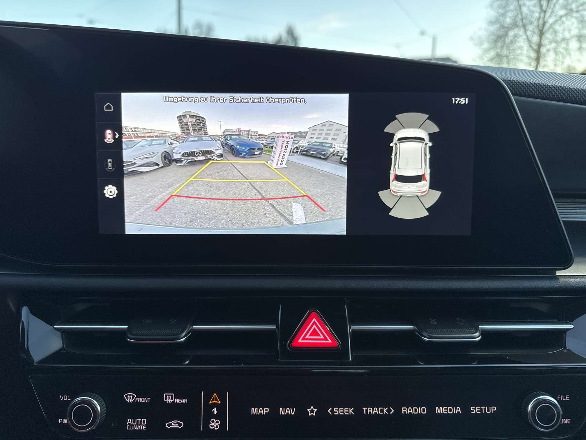 Airbag: Airbag Fahrer und Beifahrer, Beifahrerairbag abschaltbar, Airbag: Center Airbag (zwischen Fahrer und Beifahrer), Airbag: Knie-Airbag, Airbag: Kopfairbags (Vorhang) vorn und hinten, Airbag: Seitenairbags vorn, Ambientebeleuchtung, Antiblockiersystem (ABS), Assist: Ausstiegsassistent, Assist: Autobahnassistent, Assist: Autonomer Notbremsassistent mit Abbiegeerkennung (Drive Wise FCA 1.5), Assist: Berganfahrassistent (HAC), Assist: e-Call automatisches Notrufsystem, Assist: Elektronische Traktionskontrolle (TCS), Assist: Fernlichtassistent, Assist: Inteligenter Geschwindigkeitsassistent (ISLA), Assist: Intelligentes regeneratives Bremssystem (SRBS 2.0), Assist: Lichtsensor, Assist: Müdigkeitserkennung, Assist: Parksensoren hinten, Assist: Parksensoren vorn, Assist: Rückfahrkamera, Assist: Spurfolgeassistent (LFA), Assist: Spurhalteassistent, Assist: Tempomat mit Distanzassistent, Aussenspiegel elektrisch einklappbar, Aussenspiegel elektrisch verstell- und beheizbar, Aussenspiegel in Wagenfarbe, Batterieheizsystem, Dachreling, Design-Elemente (Stossstange, Radläufe und Seitendekor) in Hochglanzschwarz, Drive Mode Select, Elektrische Handbremse, Elektronisches Stabilitäts-Programm (ESP), Fensterheber elektrisch vorn und hinten, Frontscheibe mit integrierter Akustikfolie, Gangwahl-Drehschalter, Gepäckraumbeleuchtung, Getränkehalter in der Mittelkonsole, Getriebe: Direktantrieb, kein Getriebe, Heckscheiben-Wisch-/Waschanlage, Heckscheibenheizung, Innenrückspiegel automatisch abblendbar, Insassenalarm, Kindersicherung elektrisch, Klima: Klimaautomatik 2-Zonen, Klima: Wärmepumpe und Vehicle-to-Load-Funktion (V2L), Kofferraumabdeckung, Kühlergrill mit Chromverzierung, Lackierung: Uni Lackierung, Ladeboden variabel, Lenkrad: Lederlenkrad, Lenkrad: Lenkrad beheizbar, Lenkrad: Lenkrad höhen- und tiefenverstellbar, Lenkrad: Multifunktionslenkrad, Lenkrad: Schaltwippen hinter dem Lenkrad, Licht: Drittes Bremslicht, Licht: Dual LED-Scheinwerfer, Licht: LED-Nebelscheinwerfer, Licht: LED-Rückleuchten, Licht: LED-Tagfahrlicht, Licht: Nebelschlussleuchte, Media: 10.25"-Navigationssystem, DAB+, Media: 6 Lautsprecher, Media: Android Auto und Apple CarPlay, Media: Bluetooth Freisprecheinrichtung, Media: Online-Dienste Kia Connect inkl. 7 Jahre, Media: USB-Anschluss, Media: USB-Anschlüsse Rücksitzlehnen, Mittelarmlehne vorne mit Staufach, On-Board-Charger (3 Phasen), Privacy-Verglasung, Räder: 4 Leichtmetallfelgen 7 J × 17", Räder: Reifendruckkontrollsystem (TPMS), Räder: Tire mobility kit, Regensensor, Servolenkung, Sitze: Beifahrersitz höhenverstellbar, Sitze: Fahrersitz höhenverstellbar, Sitze: ISOFIX-Kindersitzverankerung hinten, Sitze: Kopfstützen höhenverstellbar vorne und hinten, Sitze: Lendenwirbelstütze für den Fahrersitz, Sitze: Sitzheizung vorne, Sitze: Sitzlehne der 2. Sitzreihe umklappbar, asymmetrisch 60:40, Sitze: Tasche an der Rücksitzlehne Beifahrersitz, Sitze: Tasche an der Rücksitzlehne Fahrersitz, Sonnenblende Fahrer und Beifahrerseite, Start-/Stop-Knopf mit Smart Key, Stauraum unter dem Ladeboden, Stossfänger mit Chromverzierung, Supervision Cluster digital 10.25", Wegfahrsperre elektronisch, Zentralverriegelung mit Fernbedienung