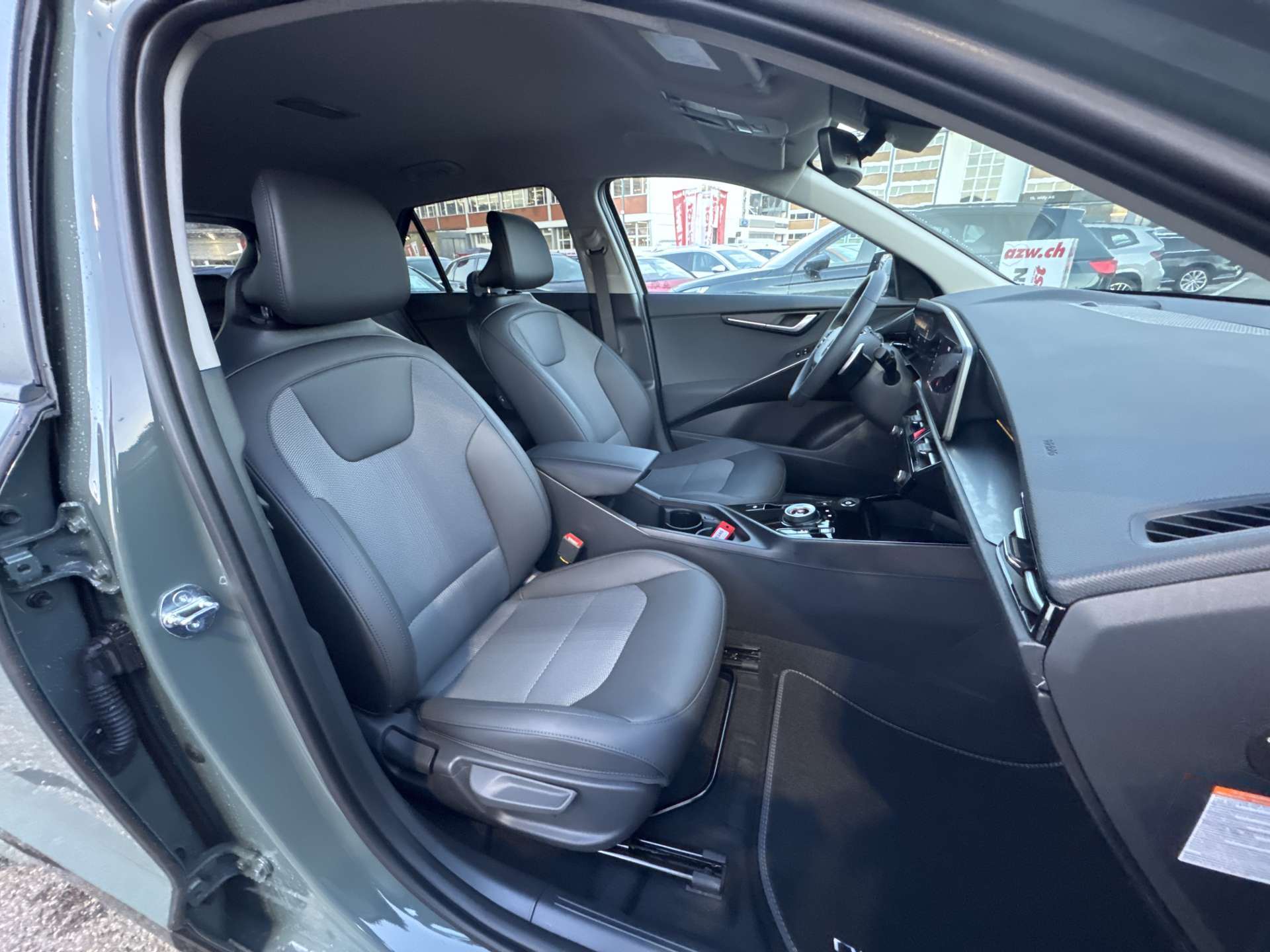 Airbag: Airbag Fahrer und Beifahrer, Beifahrerairbag abschaltbar, Airbag: Center Airbag (zwischen Fahrer und Beifahrer), Airbag: Knie-Airbag, Airbag: Kopfairbags (Vorhang) vorn und hinten, Airbag: Seitenairbags vorn, Ambientebeleuchtung, Antiblockiersystem (ABS), Assist: Ausstiegsassistent, Assist: Autobahnassistent, Assist: Autonomer Notbremsassistent mit Abbiegeerkennung (Drive Wise FCA 1.5), Assist: Berganfahrassistent (HAC), Assist: e-Call automatisches Notrufsystem, Assist: Elektronische Traktionskontrolle (TCS), Assist: Fernlichtassistent, Assist: Inteligenter Geschwindigkeitsassistent (ISLA), Assist: Intelligentes regeneratives Bremssystem (SRBS 2.0), Assist: Lichtsensor, Assist: Müdigkeitserkennung, Assist: Parksensoren hinten, Assist: Parksensoren vorn, Assist: Rückfahrkamera, Assist: Spurfolgeassistent (LFA), Assist: Spurhalteassistent, Assist: Tempomat mit Distanzassistent, Aussenspiegel elektrisch einklappbar, Aussenspiegel elektrisch verstell- und beheizbar, Aussenspiegel in Wagenfarbe, Batterieheizsystem, Dachreling, Design-Elemente (Stossstange, Radläufe und Seitendekor) in Hochglanzschwarz, Drive Mode Select, Elektrische Handbremse, Elektronisches Stabilitäts-Programm (ESP), Fensterheber elektrisch vorn und hinten, Frontscheibe mit integrierter Akustikfolie, Gangwahl-Drehschalter, Gepäckraumbeleuchtung, Getränkehalter in der Mittelkonsole, Getriebe: Direktantrieb, kein Getriebe, Heckscheiben-Wisch-/Waschanlage, Heckscheibenheizung, Innenrückspiegel automatisch abblendbar, Insassenalarm, Kindersicherung elektrisch, Klima: Klimaautomatik 2-Zonen, Klima: Wärmepumpe und Vehicle-to-Load-Funktion (V2L), Kofferraumabdeckung, Kühlergrill mit Chromverzierung, Lackierung: Uni Lackierung, Ladeboden variabel, Lenkrad: Lederlenkrad, Lenkrad: Lenkrad beheizbar, Lenkrad: Lenkrad höhen- und tiefenverstellbar, Lenkrad: Multifunktionslenkrad, Lenkrad: Schaltwippen hinter dem Lenkrad, Licht: Drittes Bremslicht, Licht: Dual LED-Scheinwerfer, Licht: LED-Nebelscheinwerfer, Licht: LED-Rückleuchten, Licht: LED-Tagfahrlicht, Licht: Nebelschlussleuchte, Media: 10.25"-Navigationssystem, DAB+, Media: 6 Lautsprecher, Media: Android Auto und Apple CarPlay, Media: Bluetooth Freisprecheinrichtung, Media: Online-Dienste Kia Connect inkl. 7 Jahre, Media: USB-Anschluss, Media: USB-Anschlüsse Rücksitzlehnen, Mittelarmlehne vorne mit Staufach, On-Board-Charger (3 Phasen), Privacy-Verglasung, Räder: 4 Leichtmetallfelgen 7 J × 17", Räder: Reifendruckkontrollsystem (TPMS), Räder: Tire mobility kit, Regensensor, Servolenkung, Sitze: Beifahrersitz höhenverstellbar, Sitze: Fahrersitz höhenverstellbar, Sitze: ISOFIX-Kindersitzverankerung hinten, Sitze: Kopfstützen höhenverstellbar vorne und hinten, Sitze: Lendenwirbelstütze für den Fahrersitz, Sitze: Sitzheizung vorne, Sitze: Sitzlehne der 2. Sitzreihe umklappbar, asymmetrisch 60:40, Sitze: Tasche an der Rücksitzlehne Beifahrersitz, Sitze: Tasche an der Rücksitzlehne Fahrersitz, Sonnenblende Fahrer und Beifahrerseite, Start-/Stop-Knopf mit Smart Key, Stauraum unter dem Ladeboden, Stossfänger mit Chromverzierung, Supervision Cluster digital 10.25", Wegfahrsperre elektronisch, Zentralverriegelung mit Fernbedienung