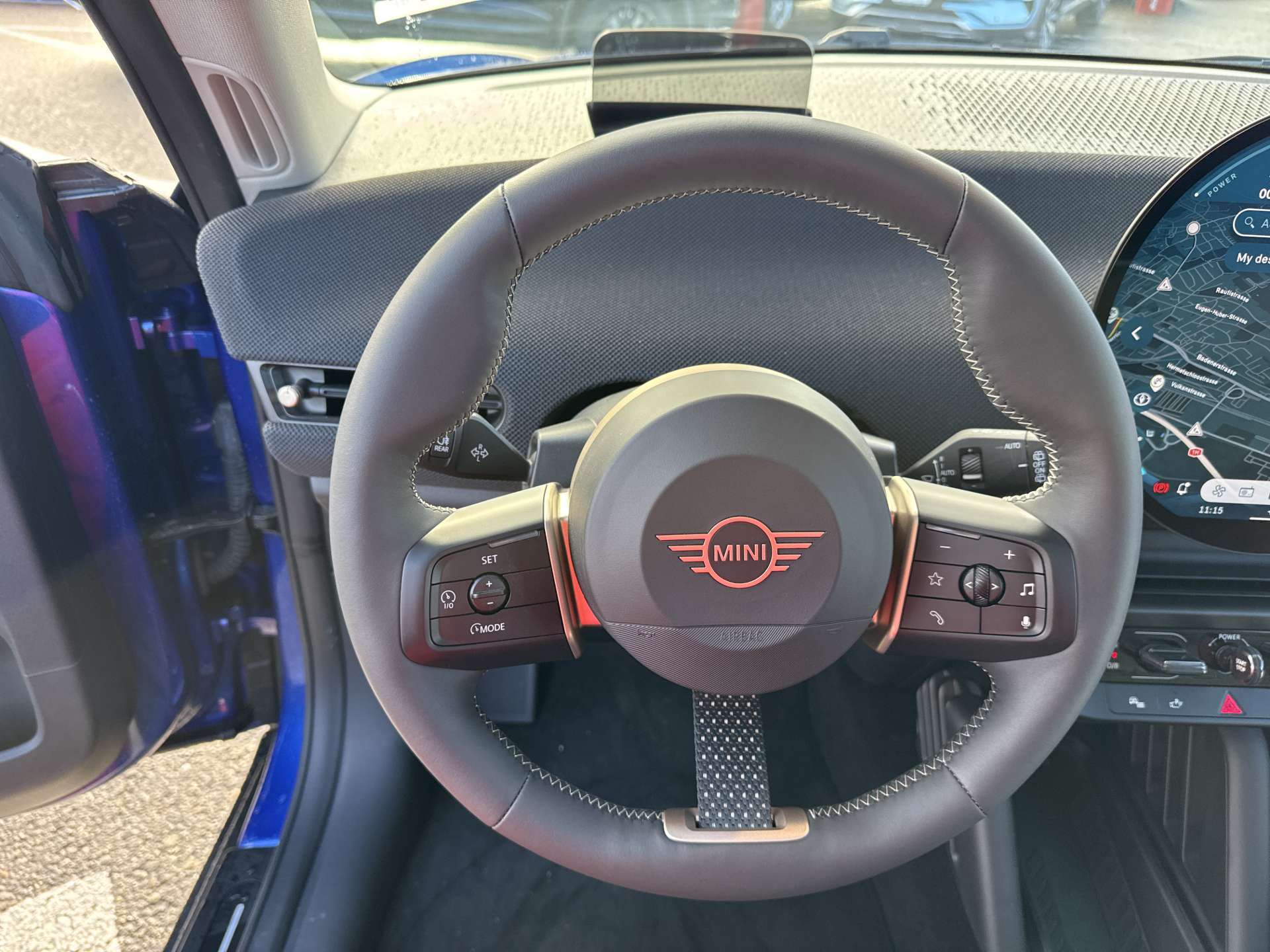 Head-Up Display - Anzeige verschiedener Informationen wie Navigationsinformationen, Geschwindigkeitsbegrenzungen, Warnhinweise, etc. (ausstattungsabhängig)., Lackierung: Metallic-Lackierung, Media: MINI Navigation AR Folgende Navigationsfunktion: - Navigationsführung mit Augmented View inkl. Abbiegehinweise, Fahrspurvorschlag, POI-Anzeige und Unterstützung bei der Parkplatzsuche im Control Display, Reifenreparatur-Set, Licht: Fernlichtassistent, Paket: Paket L, Lenkrad: Sport-Lederlenkrad, Sitze: Vordersitze heizbar, Assist: Parking Assistant Plus Kamera- und ultraschallbasiertes Assistenzsystem bestehend aus Surround View System und Remote 3D View sowie den Funktionen der SA 5DM 'Parking Assistant'., MINI Excitement Modes - Die MINI Experience Modes bieten intensive und klar differenzierte Modi, die den Gesamteindruck des MINI Innenraums verändern. Der Kunde erlebt unterschiedlich Charaktere auf verschiedenen Wahrnehmungsebenen., Licht: LED Scheinwerfer mit erweiterten Umfängen - Bi-LED-Licht für Abblendlicht und Fernlicht - LED-Heckleuchte - Abbiegelicht in LED-Technologie (adaptive Lichtverteilung mit erhöhter Seitenausleuchtung für Stadt-, Überland- und Autobahnverkehr, Schlechtwetter) - Drei charakteristische Licht-Signaturen (Tagfahrlicht-Signatur, Front und Heckleuchte) über Lichtmenü wählbar, inklusive dazugehöriger Welcome- und Goodbye-Inszenierung, Paket: Classic Trim, Media: Harman Kardon Surround Sound System, Alarmanlage - Inkl. Überwachung der Türen, Front- und Heckklappe, Innenraumschutz, Neigungsalarmgeber, Notstromsirene und Diebstahlsicherung., Sonnenschutzverglasung - reduzierte Sonneneinstrahlung (Lichtdurchlässigkeit 20%) in Fond- und Heckverglasung - vermindert die Aufheizung des Fahrzeuginnenraums - geringere Einsehbarkeit von außen nach innen - Frontscheibe und Fahrer-/Beifahrertür-Verglasung unverändert zur Serie, Räder: 18" Leichtmetallräder Slide Spoke 2-tone - 7,5 J×18, Bereifung 225/40 R 18, Panorama-Glasdach - einteiliges Glasdach, nicht öffenbar - im Innenraum stufenlos einstellbares Abschattungssystem mit hohem Abschattungsgrad - ambiente Beleuchtung, seitlich integriert im Fahrzeughimmel, Innenspiegel automatisch abblendbar, Paket: Innen- und Aussenspiegelpaket - Außenspiegel mit Bordsteinautomatik (auf Beifahrerseite bei Einlegen des Rückwärtsganges) und elektrischer Anklappfunktion - Logoprojektion Außenspiegel Fahrer- und Beifahrerseite - Außenspiegel Fahrerseite mit automatischer Abblendung - Memoryfunktion, Wireless Charging Ablage