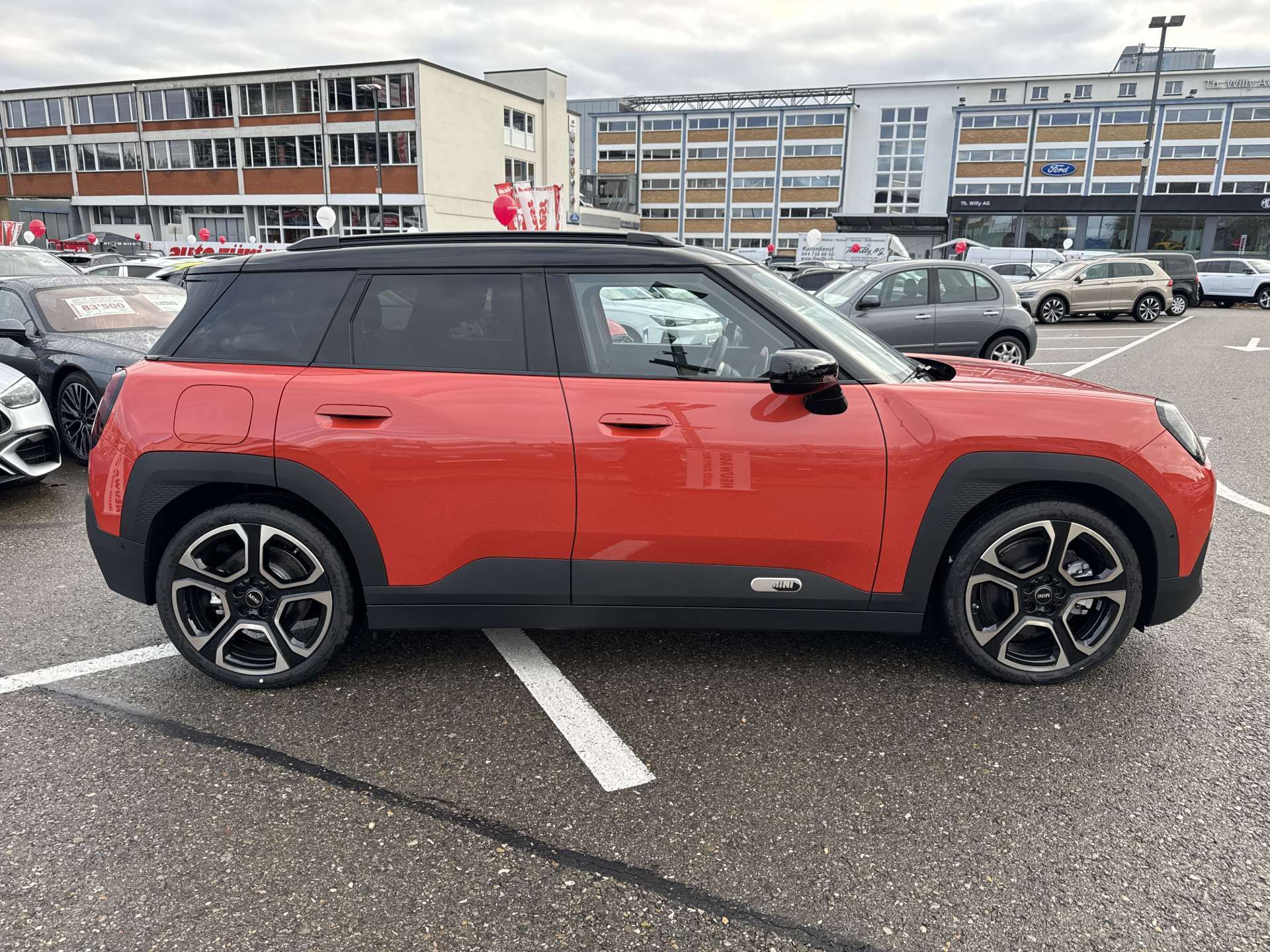 AC-Laden Plus 11 kW, Akustischer Fussgängerschutz, Assist: Driving Assistant - Radarbasiertes Fahrerassistenzsystem bestehend aus: Spurwechselwarnung, Querverkehrswarnung hinten mit Bremseingriff, Safe Exit, Prävention Heckkollision, Assist: Parking Assistant Kamera- und ultraschallbasiertes Assistenzsystem bestehend aus: - Parkassistent - Rückfahrassistent - Active Park Distance Control - PDC (ultraschallbasiertes Fahrerassistenzsystem) - Einparkhilfe Seite - Parken-Anfahrüberwachung - Anhängerassistent - Rückfahrkamera mit Panoramaansicht hinten, Dach in schwarz, Dachreling schwarz, Gesetzlicher Notruf, Media: DAB+ (Digital Audio Broadcasting), Media: MINI Interaction Unit - rundes Zentralinstrument - Fläche 440 cm² - OLED Technologie - MINI Spezifische Nutzeroberfläche, Räder: Abschliessbare Radschrauben, Räder: Reifendruck-Kontrollanzeige, Reifenreparatur-Set, Sitze: Kindersitzbefestigung i-Size für Beifahrer, TeleService, Warndreieck - inklusive Erste-Hilfe-Set.