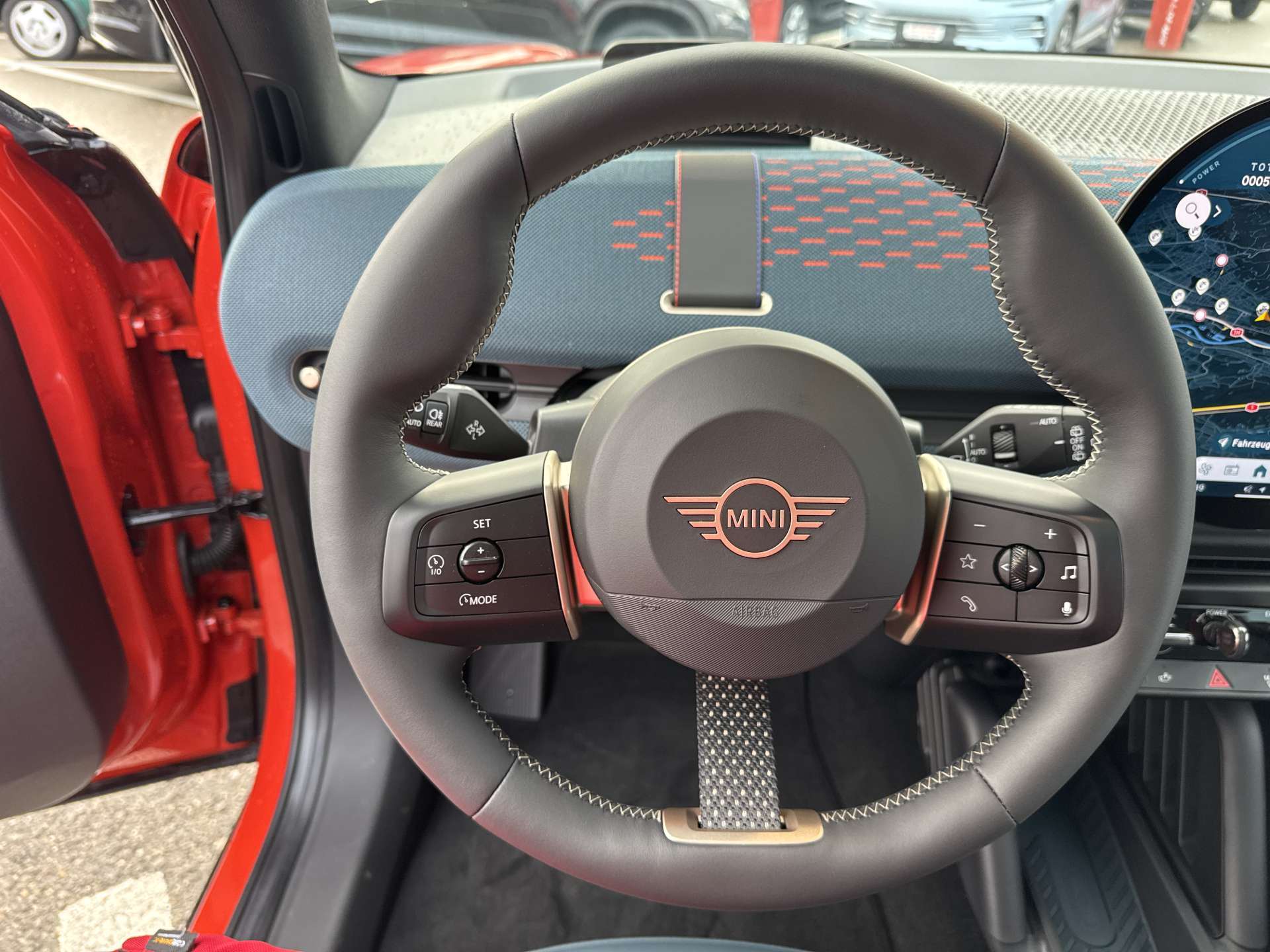 Paket: Favoured Trim, Head-Up Display - Anzeige verschiedener Informationen wie Navigationsinformationen, Geschwindigkeitsbegrenzungen, Warnhinweise, etc. (ausstattungsabhängig)., Sitze: John Cooper Works Sportsitze, Lackierung: Metallic-Lackierung, Lenkrad: Lenkradheizung, Licht: Fernlichtassistent, Paket: Paket M, Lenkrad: Sport-Lederlenkrad, Sitze: Vordersitze heizbar, MINI Excitement Modes - Die MINI Experience Modes bieten intensive und klar differenzierte Modi, die den Gesamteindruck des MINI Innenraums verändern. Der Kunde erlebt unterschiedlich Charaktere auf verschiedenen Wahrnehmungsebenen., Licht: LED Scheinwerfer mit erweiterten Umfängen - Bi-LED-Licht für Abblendlicht und Fernlicht - LED-Heckleuchte - Abbiegelicht in LED-Technologie (adaptive Lichtverteilung mit erhöhter Seitenausleuchtung für Stadt-, Überland- und Autobahnverkehr, Schlechtwetter) - Drei charakteristische Licht-Signaturen (Tagfahrlicht-Signatur, Front und Heckleuchte) über Lichtmenü wählbar, inklusive dazugehöriger Welcome- und Goodbye-Inszenierung, Alarmanlage - Inkl. Überwachung der Türen, Front- und Heckklappe, Innenraumschutz, Neigungsalarmgeber, Notstromsirene und Diebstahlsicherung., Dachhimmel Anthrazit, Sonnenschutzverglasung - reduzierte Sonneneinstrahlung (Lichtdurchlässigkeit 20%) in Fond- und Heckverglasung - vermindert die Aufheizung des Fahrzeuginnenraums - geringere Einsehbarkeit von außen nach innen - Frontscheibe und Fahrer-/Beifahrertür-Verglasung unverändert zur Serie, Panorama-Glasdach - einteiliges Glasdach, nicht öffenbar - im Innenraum stufenlos einstellbares Abschattungssystem mit hohem Abschattungsgrad - ambiente Beleuchtung, seitlich integriert im Fahrzeughimmel, Innenspiegel automatisch abblendbar, Paket: Innen- und Aussenspiegelpaket - Außenspiegel mit Bordsteinautomatik (auf Beifahrerseite bei Einlegen des Rückwärtsganges) und elektrischer Anklappfunktion - Logoprojektion Außenspiegel Fahrer- und Beifahrerseite - Außenspiegel Fahrerseite mit automatischer Abblendung - Memoryfunktion, Wireless Charging Ablage