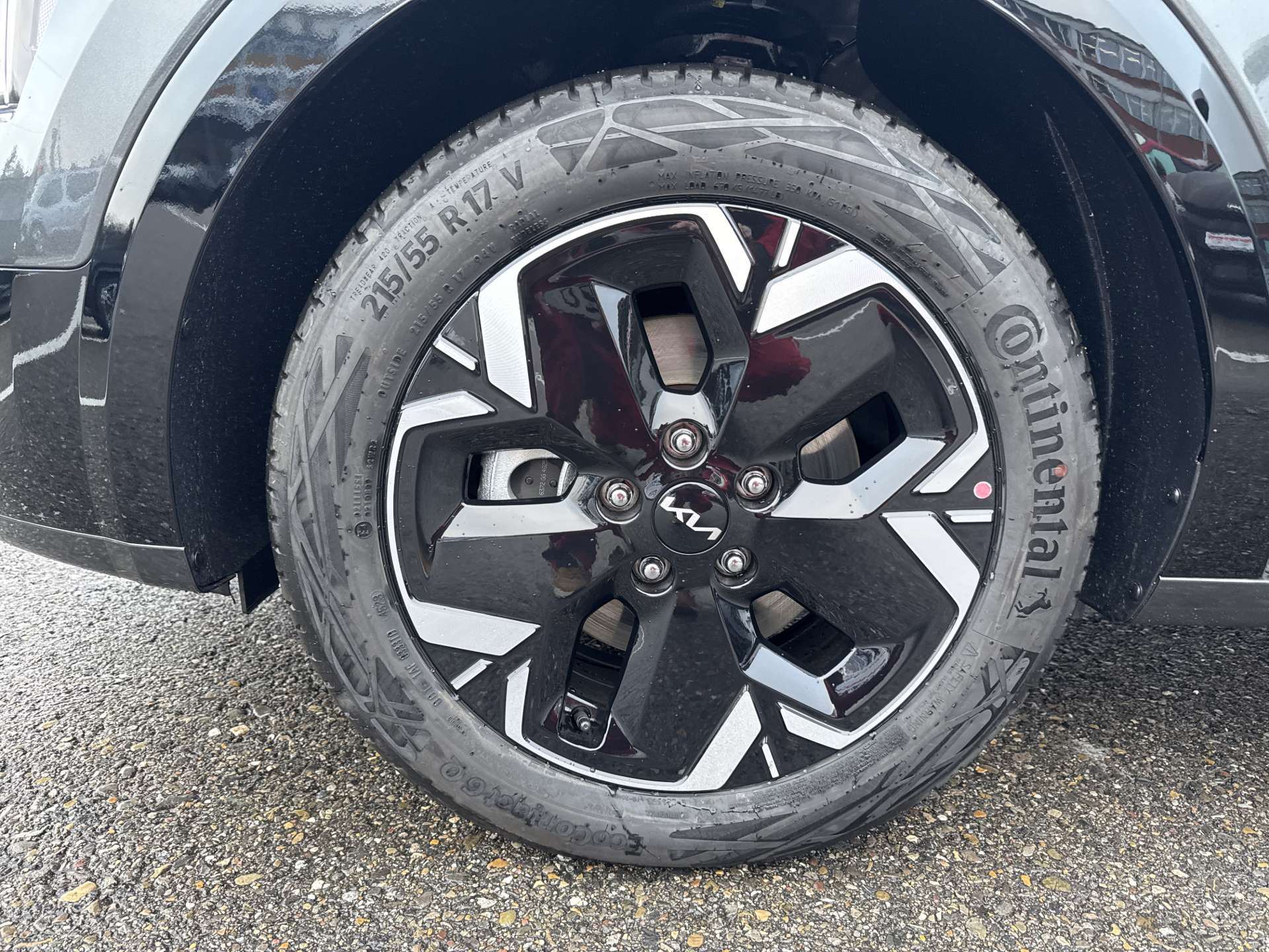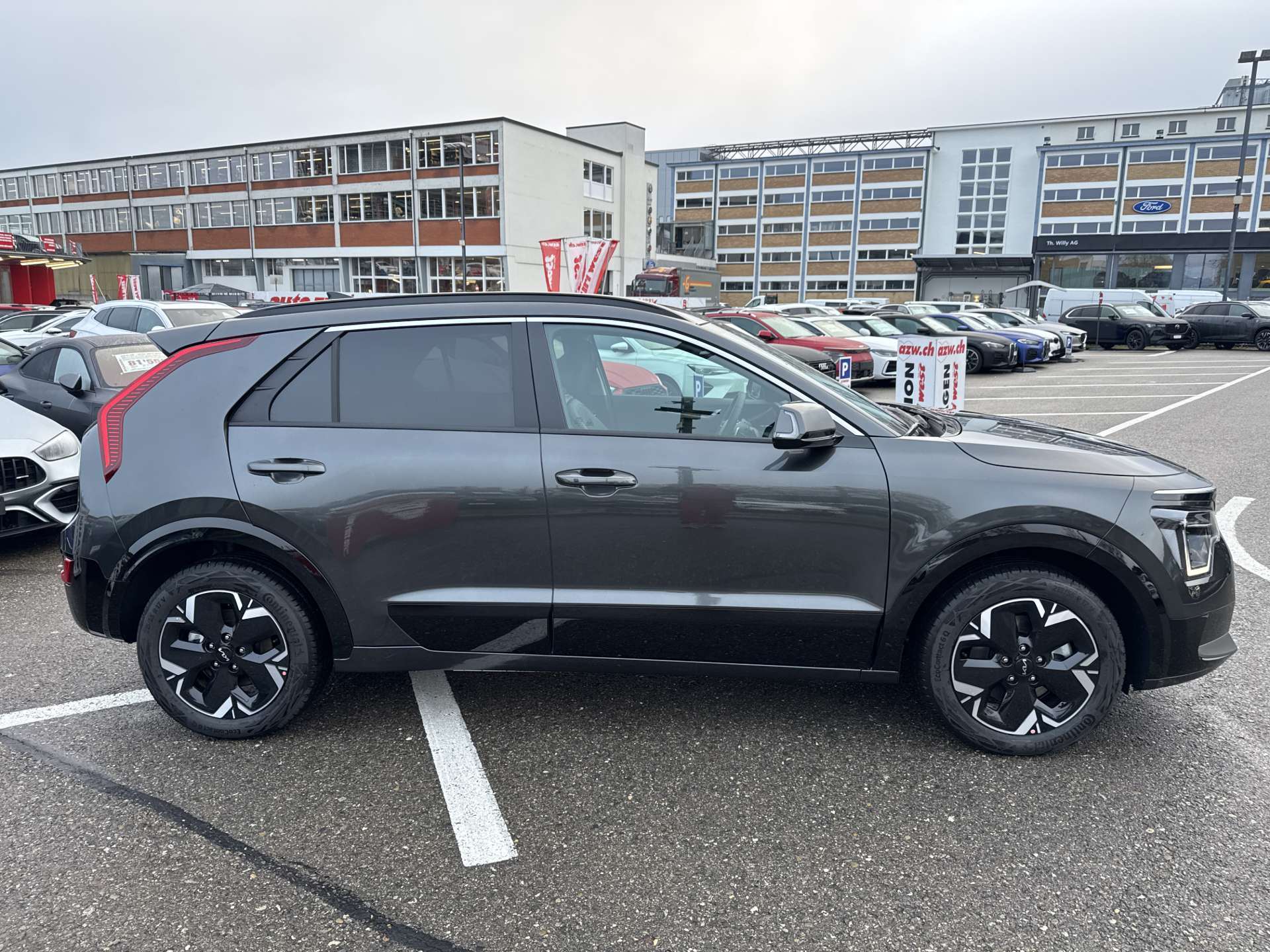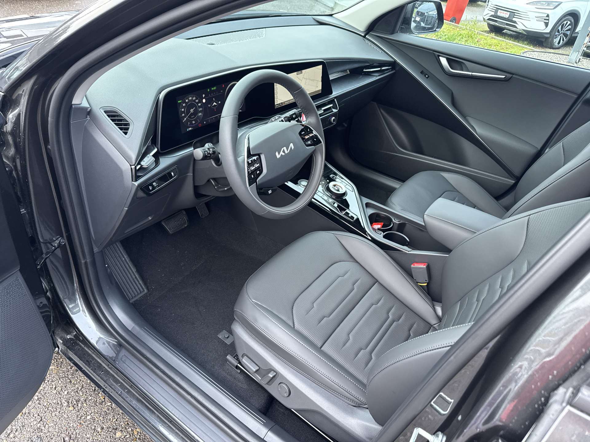 Airbag: Airbag Fahrer und Beifahrer, Beifahrerairbag abschaltbar, Airbag: Center Airbag (zwischen Fahrer und Beifahrer), Airbag: Knie-Airbag, Airbag: Kopfairbags (Vorhang) vorn und hinten, Airbag: Seitenairbags vorn, Ambientebeleuchtung, Antiblockiersystem (ABS), Assist: Ausstiegsassistent, Assist: Autobahnassistent, Assist: Autonomer Notbremsassistent mit Abbiegeerkennung (Drive Wise FCA 1.5), Assist: Berganfahrassistent (HAC), Assist: e-Call automatisches Notrufsystem, Assist: Elektronische Traktionskontrolle (TCS), Assist: Fernlichtassistent, Assist: Inteligenter Geschwindigkeitsassistent (ISLA), Assist: Intelligentes regeneratives Bremssystem (SRBS 2.0), Assist: Lichtsensor, Assist: Müdigkeitserkennung, Assist: Parksensoren hinten, Assist: Parksensoren vorn, Assist: Rückfahrkamera, Assist: Spurfolgeassistent (LFA), Assist: Spurhalteassistent, Assist: Tempomat mit Distanzassistent, Aussenspiegel elektrisch einklappbar, Aussenspiegel elektrisch verstell- und beheizbar, Aussenspiegel in Wagenfarbe, Batterieheizsystem, Dachreling, Design-Elemente (Stossstange, Radläufe und Seitendekor) in Hochglanzschwarz, Drive Mode Select, Elektrische Handbremse, Elektronisches Stabilitäts-Programm (ESP), Fensterheber elektrisch vorn und hinten, Frontscheibe mit integrierter Akustikfolie, Gangwahl-Drehschalter, Gepäckraumbeleuchtung, Getränkehalter in der Mittelkonsole, Getriebe: Direktantrieb, kein Getriebe, Heckscheiben-Wisch-/Waschanlage, Heckscheibenheizung, Innenrückspiegel automatisch abblendbar, Insassenalarm, Kindersicherung elektrisch, Klima: Klimaautomatik 2-Zonen, Klima: Wärmepumpe und Vehicle-to-Load-Funktion (V2L), Kofferraumabdeckung, Kühlergrill mit Chromverzierung, Lackierung: Uni Lackierung, Ladeboden variabel, Lenkrad: Lederlenkrad, Lenkrad: Lenkrad beheizbar, Lenkrad: Lenkrad höhen- und tiefenverstellbar, Lenkrad: Multifunktionslenkrad, Lenkrad: Schaltwippen hinter dem Lenkrad, Licht: Drittes Bremslicht, Licht: Dual LED-Scheinwerfer, Licht: LED-Nebelscheinwerfer, Licht: LED-Rückleuchten, Licht: LED-Tagfahrlicht, Licht: Nebelschlussleuchte, Media: 10.25"-Navigationssystem, DAB+, Media: 6 Lautsprecher, Media: Android Auto und Apple CarPlay, Media: Bluetooth Freisprecheinrichtung, Media: Online-Dienste Kia Connect inkl. 7 Jahre, Media: USB-Anschluss, Media: USB-Anschlüsse Rücksitzlehnen, Mittelarmlehne vorne mit Staufach, On-Board-Charger (3 Phasen), Privacy-Verglasung, Räder: 4 Leichtmetallfelgen 7 J × 17", Räder: Reifendruckkontrollsystem (TPMS), Räder: Tire mobility kit, Regensensor, Servolenkung, Sitze: Beifahrersitz höhenverstellbar, Sitze: Fahrersitz höhenverstellbar, Sitze: ISOFIX-Kindersitzverankerung hinten, Sitze: Kopfstützen höhenverstellbar vorne und hinten, Sitze: Lendenwirbelstütze für den Fahrersitz, Sitze: Sitzheizung vorne, Sitze: Sitzlehne der 2. Sitzreihe umklappbar, asymmetrisch 60:40, Sitze: Tasche an der Rücksitzlehne Beifahrersitz, Sitze: Tasche an der Rücksitzlehne Fahrersitz, Sonnenblende Fahrer und Beifahrerseite, Start-/Stop-Knopf mit Smart Key, Stauraum unter dem Ladeboden, Stossfänger mit Chromverzierung, Supervision Cluster digital 10.25", Totwinkelassistent, Wegfahrsperre elektronisch, Zentralverriegelung mit Fernbedienung