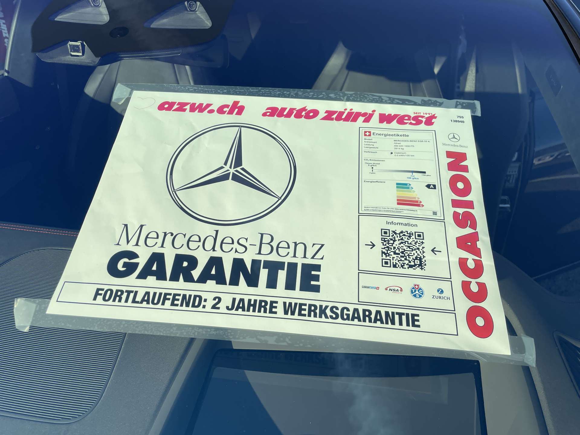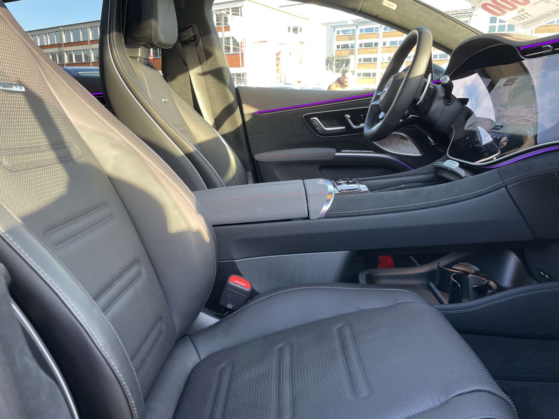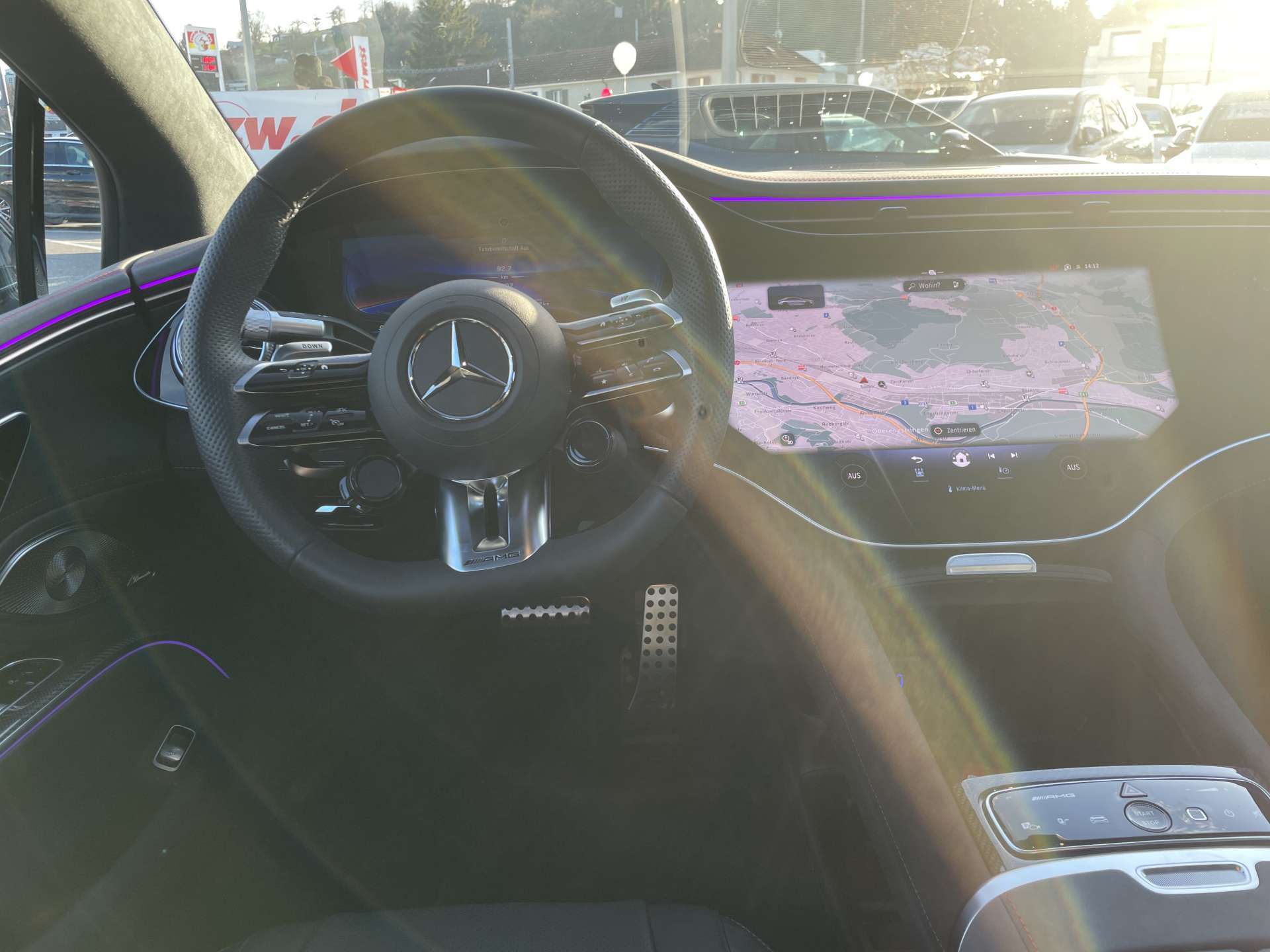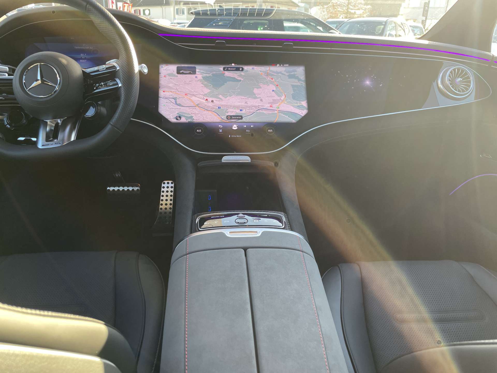 1 kabelloser Kopfhörer, Ablagen unter der Mittelkonsole, Airbag: Airbag Fahrer und Beifahrer, Airbag: Beltbag, Airbag: Kneebag für Fahrer, Airbag: Mittenairbag, Airbag: Window-Kopfairbags, Akustik-Paket, Akustischer Umfeldschutz, AMG Abrisskante, AMG Black-Panel-Kühlergrill, AMG Driver's Package, AMG Frontstossfänger in Wagenfarbe mit Chromzierelementen, AMG Fussmatten, AMG Sportpedalanlage aus gebürstetem Edelstahl mit schwarzen Gumminoppen, Antiblockiersystem (ABS), Assist: Aktiver Bremssassistent, Assist: Aktiver Spurhalte-Assistent, Assist: Elektronisches Stabilitäts-Programm (ESP®), Assist: Fussgängerschutz, Assist: Geschwindigkeitslimit-Assistent, Assist: Mercedes-Benz Notrufsystem, Beleuchtete Einstiegsleisten mit Mercedes-Benz Schriftzug, Beleuchtete Einstiegsleisten mit Mercedes-Benz Schriftzug und Wechselcover, Bremssättel in Silber eloxiert, Dekor: Innenhimmel Stoff schwarz, Dekor: Mittelkonsole Holz fineline anthrazit, Dekor: Zierelemente Holz Linde linestructure anthrazit offenporig, EASY-PACK Laderaumabdeckung, EASY-PACK-Heckklappe, Einstiegsleisten mit "Mercedes-Benz" Schriftzug, Elektrische Fensterheber vorne + hinten, Elektrische Feststellbremse mit Anfahrhilfe, Elektronische Traktionskontrolle, Elektronisches Stabilitäts-Programm (ESP), Erste-Hilfe-Kasten und Warndreieck, Erweiterte Ladeservices und Remote Services Premium (36U) inkl. IONITY unbegrenzt für 1 Jahr, Fahranfängermodus, Fahrwerk: AIRMATIC, Fahrwerk: AMG Performance 4MATIC+, Fahrwerk:AMG DYNAMIC SELECT mit folgender Fahrprogramm-Auswahl: Comfort, Sport, Sport+, Individual, Flex-Bottleholder, Getönte Wärmeschutzverglasung, Getriebe: Direktantrieb, Gleichstrom-Ladesystem (DC-Laden) mit 110 kW, Hinterachslenkung mit Einstellung des Lenkeinschlags auf 10°, Klima: Luftfilter für Klimaanlage, Lackierung: MANUFAKTUR metallic lackierung, Lackierung: Metallic-Lackierung, Lackierung: Metallic-Lackierung Obsidianschwarz, Lackierung: Uni-Lackierung Polarweiss, Lackierung: Uni-Lackierung Schwarz, Ladekabel für Haushaltssteckdose, 5 m, glatt, Ladekabel für Haushaltssteckdose, 5 m, glatt, Ladekabel für Industriesteckdose, 5m, glatt, Ladekabel für Wallbox und öffentliche Ladestationen, 5 m, glatt, 11 kW, Ladekabel für Wallbox und öffentliche Ladestationen, 5 m, glatt, 22 kW/32 A, Lenkrad: AMG Lenkradtasten, Lenkrad: AMG Performance Lenkrad in Leder Nappa, Licht: Ambientebeleuchtung, Licht: DIGITAL LIGHT mit Leuchtband, Licht: Drittes Bremslicht, Licht: LED-Heckleuchten im 3-D-Helix-Design mit Leuchtband hinten, Media: 2 kabellose Kopfhörer, Media: Burmester® 3D-Surround-Soundsystem und Zugang zu Musikstreaming über das Multimediasystem, Media: Digitales Radio (DAB), Media: Festplattennavigation, Media: Kabelloses Ladesystem für mobile Endgeräte, Media: Kommunikationsmodul (LTE Advanced) zur Nutzung von Mercedes me connect Diensten, Media: MBUX Augmented Reality für Navigation, Media: MBUX Hyperscreen, Media: MBUX Premium-Navigation, Media: Smartphone-Intergration, Mercedes-AMG Exterieur, Mercedes-AMG Interieur, Paket: Advantage-Paket, Paket: Advantage-Plus-Paket, Paket: Fahrassistenz-Paket, Paket: Fahrassistenz-Paket PLUS, Paket: Innenraumlicht-Paket, Paket: KEYLESS-GO Komfort-Paket, Paket: Memory-Paket, Paket: Park-Paket mit 360° -Kamera, Paket: Serienmässiges Ausstattungspaket, Paket: Spiegel-Paket, Paket: USB-Paket Plus, Park-Paket mit Rückfahrkamera, Parkdienstmodus, Polster: ARTICO/Mikrofaser MICROCUT zweifarbig schwarz/spacegrau, Räder: AMG Leichtmetallräder 21" im 5-Doppelspeichen-Design, Räder: Reifendichtmittel TIREFIT, Reifendruckkontrolle, Remote Services Premium, Scheibenwaschanlage beheizbar, Servolenkung, Signalgeber für Fussgängerwarnung, Sitze: 4-Wege-Lordosenstütze, Sitze: Beifahrersitz mit Gewichtserkennung, Sitze: Fondsitze elektrisch einstellbar mit, Sitze: Komfortkopfstützen vorne, Sitze: Sitzheizung für Fahrer und Beifahrer, Sitze: Sitzheizung im Fond, Sitze: Sitzlehnen im Fond klappbar, Sitze: Sportsitze, URBAN GUARD Fahrzeugschutz, Verschiedene Rekuperationsstufen, über die Lenkradschaltpaddles aktivierbar, Vorinstallation für digitale Schlüsselübertragung, Vorrüstung für Live Traffic Information, Wechselstromsystem (AC-Laden), Wegfall abgedunkelte Scheiben, Zentralverriegelung mit Fernbedienung
