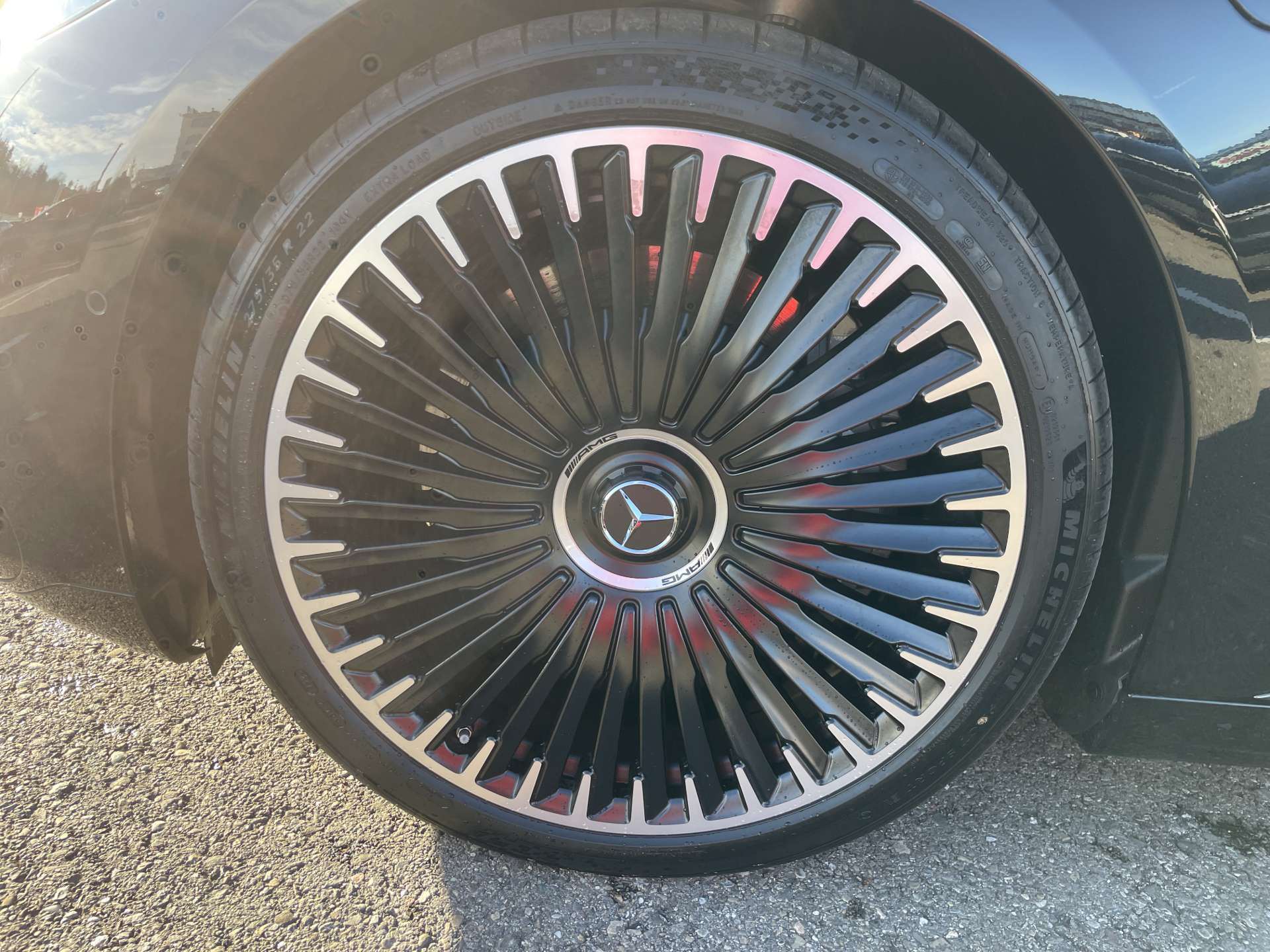 Sonnenblende ausziehbar, Feuerlöscher, Media: MBUX Fond-Tablet, Sitze: Sitzklimatisierung vorne, Räder: AMG Leichtmetallräder 22" im Vielspeichen-Design, Polster: Leder Nappa AMG schwarz/spacegrau, Dekor: AMG Zierelemente Carbon, Dekor: Innenhimmel in Mikrofaser MICROCUT schwarz, Sitze: Multikontursitze vorne, Geräuschdämmende, getönte Verglasung aus Infrarot reflektierendem Verbundglas, Media: MBUX Augmented Reality Head-up-Display in Verbindung mit Premium-Paket/Premium-Plus-Paket, Media: Head-Up Display, Lenkrad: Lenkradheizung, MBUX Interieur-Assistent, Frontscheibenheizung, Paket: AMG DYNAMIC PLUS Paket, AMG Track Pace, Paket: AMG Sport-Paket Black, Getönte Wärmeschutzverglasung, Zierelemente mit zwei Lamellen an der Heckschürze in Schwarz verchromt, A-Wing mit Zierleiste in der AMG Frontschürze schwarz glänzend, Aussenspiegelgehäuse in Hochglanzschwarz, Zierelemente in den Türen in Schwarz verchromt, Spiegelfuss in Schwarz, Bordkantenzierstäbe und Fenstereinfassungen in Hochglanzschwarz, Klima: ENERGIZING AIR CONTROL Plus, Klima: Luftfilter für Klimaanlage