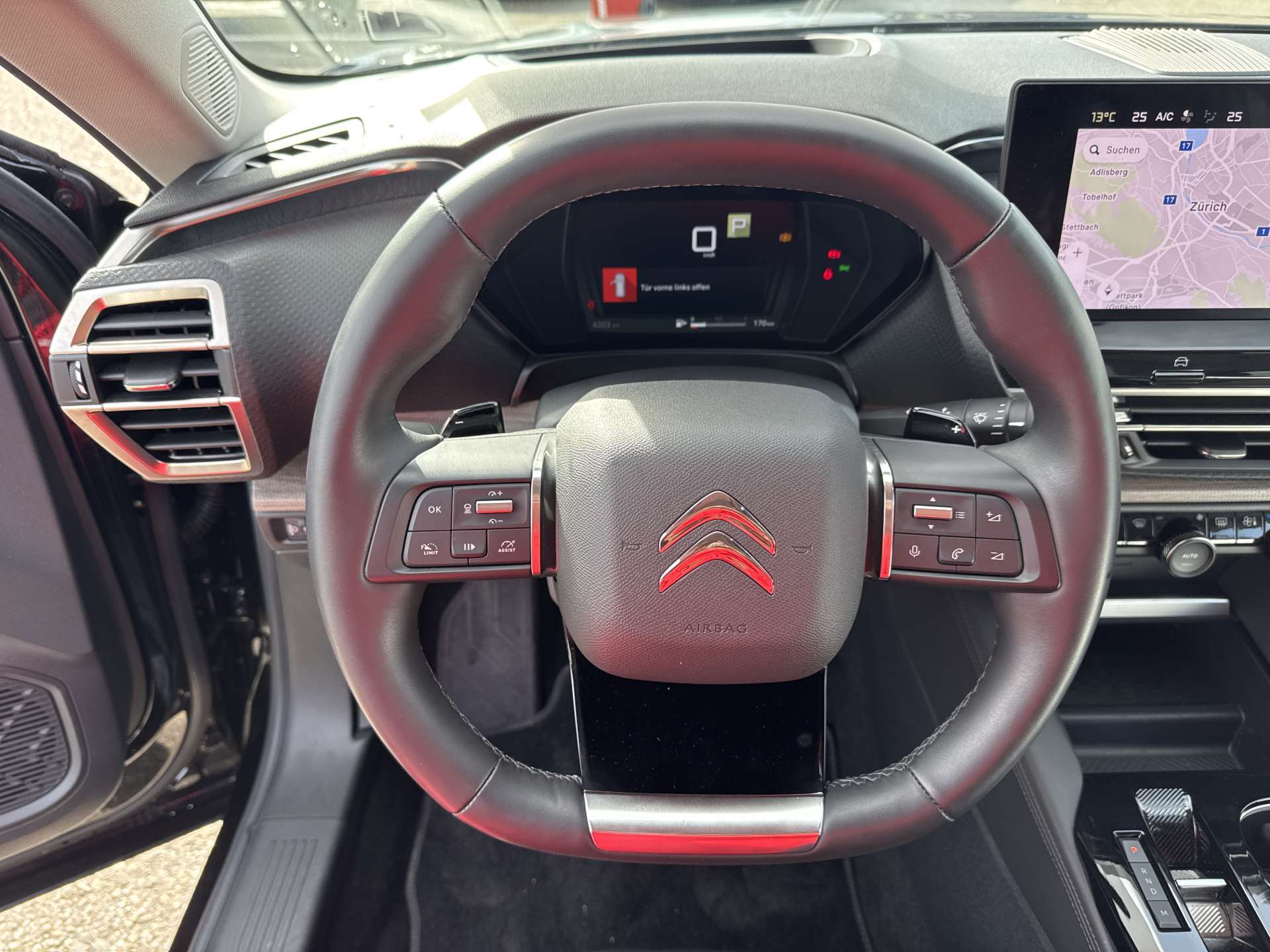 12V-Anschluss, 3-Punkt-Sicherheitsgurte auf allen Plätzen, A-Säule in schwarz lackiert, Abgedunkelte Seiten- und Heckscheibe, ABS und ESC, Airbag: Airbag Fahrer und Beifahrer inkl.Seitenairbags, Ambientbeleuchtung im Innenraum, Assist: Abstandsradar mit autonomes Notbremssystem, Assist: Anhängerstabilisierungsprogramm, Assist: Berganfahrhilfe, Assist: Elektrische Parkbremse, Assist: Erweiterte Verkehrsschilderkennung, Assist: Fahrlichtautomatik, Assist: Geschwindigkeitsregelanlage mit Begrenzer, Assist: Geschwindigkeitsregler/-begrenzer, Assist: Highway Driver Assist, Assist: Müdigkeitserkennung, Assist: Notbremsfunktion in Gefahrensituation, Assist: Rückfahrkamera, Assist: Spurassistent, Assist: Toter-Winkel-Warnsystem, Assist: Verkehrsschildererkennung und Geschwindigkeitsempfehlung, Aussenspiegel rechts und links beheizt, elektrisch verstell- / und einklappbar, Aussenspiegel schwarz, Bordcomputer, Dekor: Bedienelemente für Fensterheber in Shiny Black, Drehzahlmesser, Elektrische Fensterheber vorne, Fahrmodischalter, Fahrwerk: Advanced Comfort Federung, Fussraumbeleuchtung vorne, Garantie: Citroën Garantie Essential Drive 5 Jahre / 100000 km, Getriebe: 8-Stufen-Automat sequentiell, Handschuhfach gekühlt mit LED Licht, Head-Up Display, Heckscheibenheizung, Innenspiegel abblendbar, rahmenlos, Keyless - Start Funktion (Fahrzeugstart per Knopfdruck), Keyless Entry / -Start, Klima: Automatische Zweizonen-Klimaanlage, Kofferraummatte mit Schienen, Lenkrad: Lederlenkrad, Lenkrad: Lederlenkrad inkl. Hands-On Erkennung, Lenkrad: Lenkrad mit Schaltwippen, Lenkrad: Multifunktionslenkrad, Licht- und Regensensor, Licht: Drittes Bremslicht, Licht: ECO LED Scheinwerfer, Licht: LED Heckleuchten, Licht: Nebelscheinwerfer, Licht: Nebelschlussleuchte, Media: Audiosystem, Media: CITROEN Connect Nav, Media: Induktives Laden für Smartphone, Mittelarmlehne mit Staufach für 1,5 L Flasche, Park Distance Control vorne und hinten, Polster: Metropolitan Grey, Räder: Alufelgen 19" Aero X, Diamantgeschliffen mit schwarzen, Räder: Reifendrucksensor, Räder: Reifenreparatur-Set (Tire Fit), Reifendruckkontrollsystem, Servolenkung, Sitze: Isofix-Befestigungen 2. Reihe, Sitze: Kopfstützen auf allen plätzen, Sitze: Lendenwirbelstütze für Fahrer und Beifahrersitz, Sitze: Rücksitzbank geteilt (60/40) umklappbar "Magic Flat", Start-/Stop-Knopf, Stossfänger hinten mit Chrom Einsätze, Traktionskontrolle (TCS-Traction Conrol System), Wegfahrsperre elektronisch, Windschutzscheibe mit Akustikglas