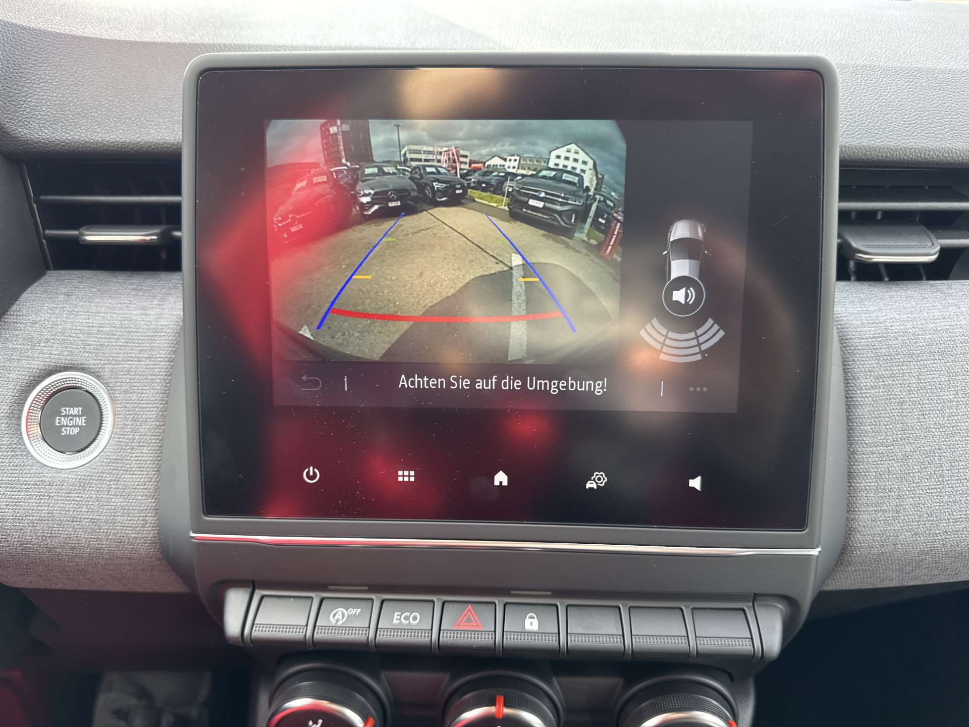 Airbag: Autoadaptiver Fahrer- und Beifahrerairbag, Airbag: Seitenairbags vorne, Assist: Antiblockiersystem (ABS), Assist: Automatische Notfallbremsfunktion, Assist: Einparkhilfe hinten, Assist: Elektronisches Stabilitätsprogramm (ESC), Assist: Müdigkeitserkennung und -warner, Assist: Renault automatischer Notruf (112), Assist: Sicherheitsabstands-Warner, Assist: Spurhalteassistent, Assist: Tempomat mit Geschwindigkeitsbegrenzer, Assist: Verkehrszeichenerkennung mit Geschwindigkeitsanpassung und -warner, Aussenspiegel elektrisch verstellbar und beheizbar, Aussenspiegel in schwarz, Automatisches Einschalten der Scheinwerfer, Connected services MyRenault App, Dekor: Innenharmonie Grau, Elektrische Fensterheber hinten, Elektrische Fensterheber vorne, Getriebe: 6-Gang-Getriebe, Klima: Manuelle Klimaanlage mit Antipollen-Filter, Lackierung: Spezielle Metallic-Lackierung Orange Valencia, Lenkrad: Lenkrad Kunstleder, Licht: LED-Rückleuchten, Licht: LED-Scheinwerfer mit Lichtsignature in Halb-Rhombus Form, Licht: LED-Tagesfahrlicht und Blinker, Media: Digitale Instrumententafel 7-Zoll, Media: EASY LINK Multimediasystem 7'', Media: Kabellose Smartphone-Replikation Apple CarPlay und Android Auto, Polster: Stoffsitzbezug Twida, Räder: 16''-Stahlfelgen "Amicitia", Räder: Reifendruck-Kontrollanzeige, Räder: Reifenreparatur-Kit, Servolenkung, Sitze: Fahrersitz manuell verstellbar, Sitze: ISOFIX, Start/Stop-Funktion, Wegfahrsperre elektronisch, Zentralverriegelung