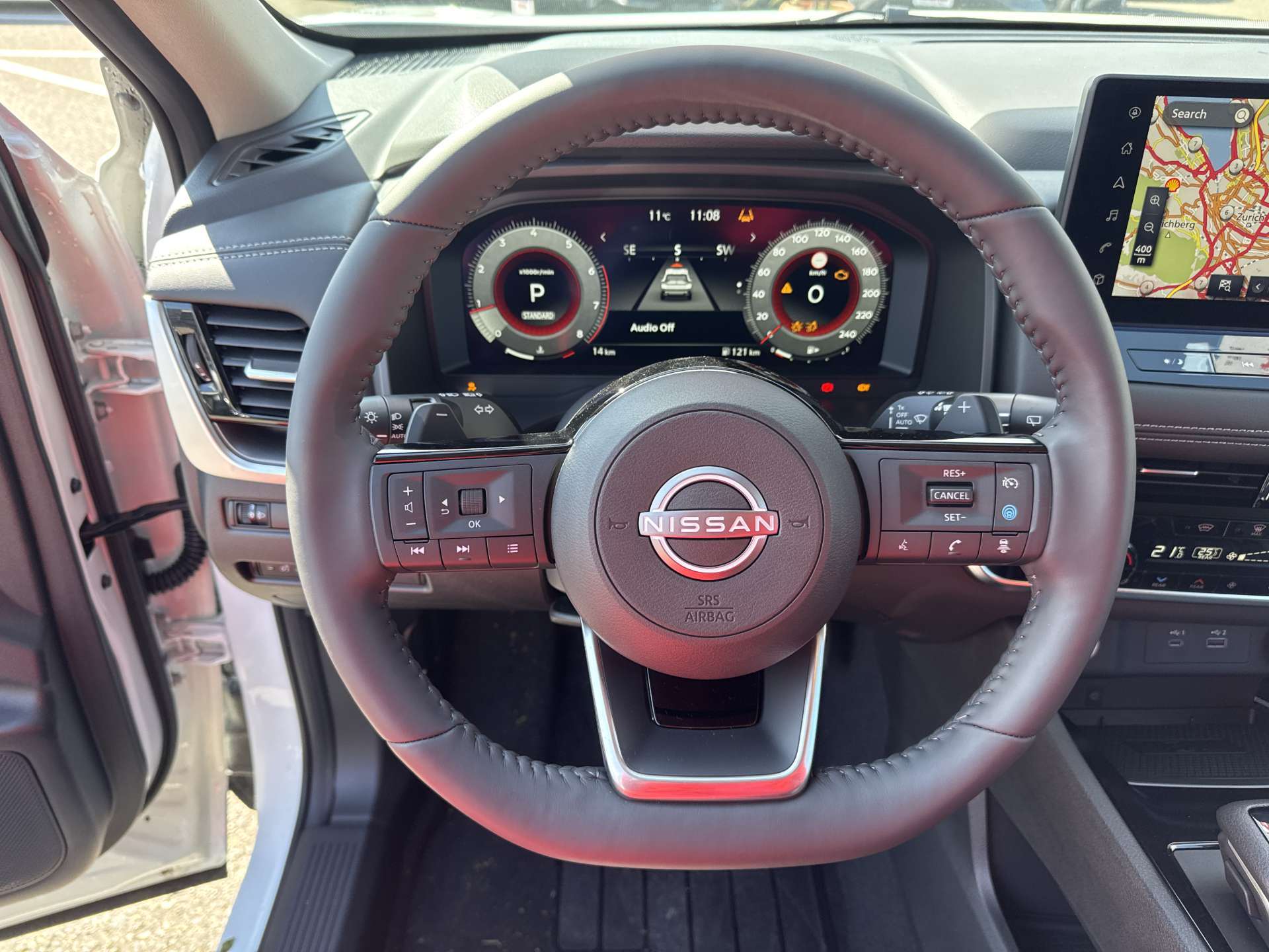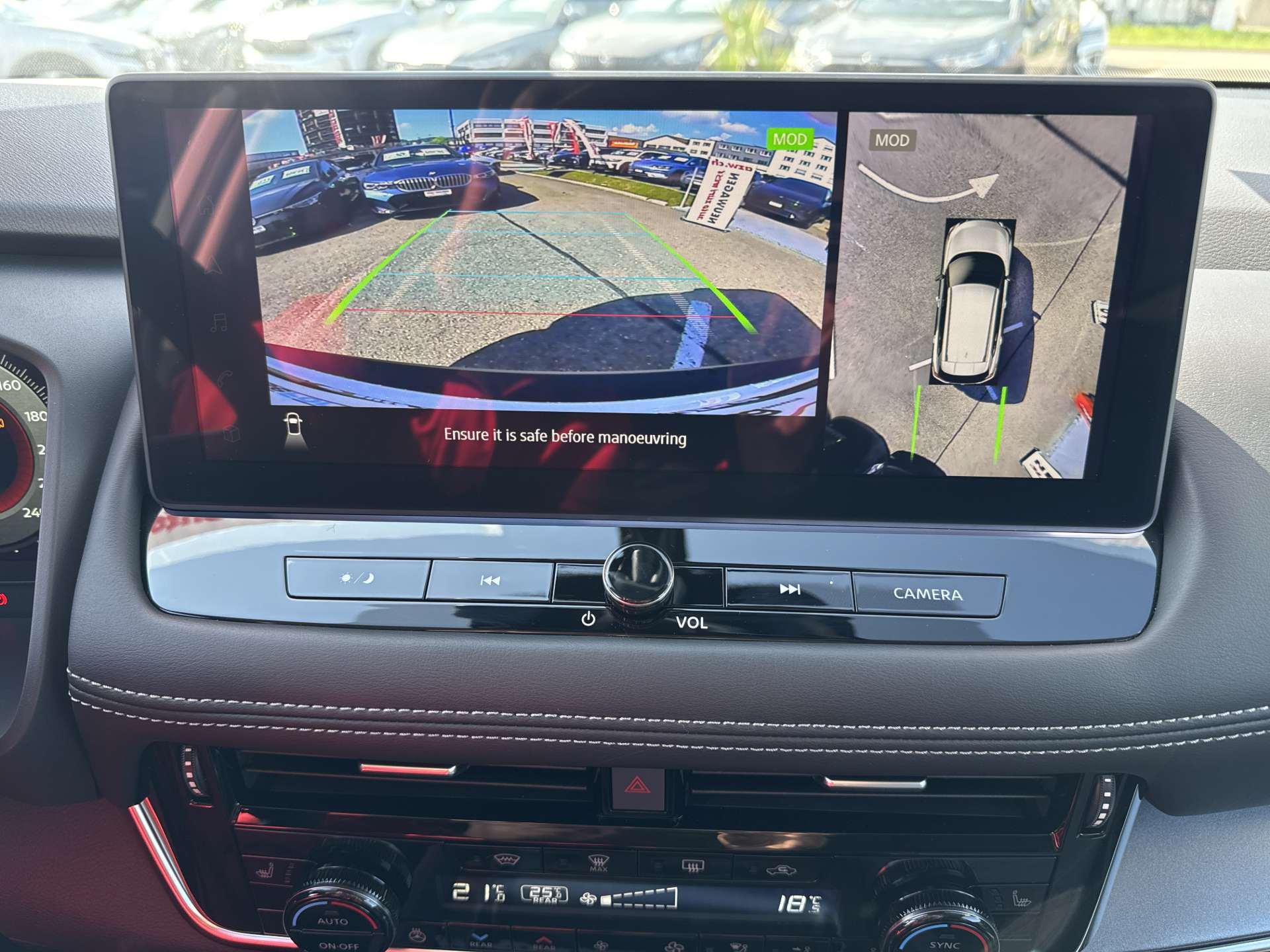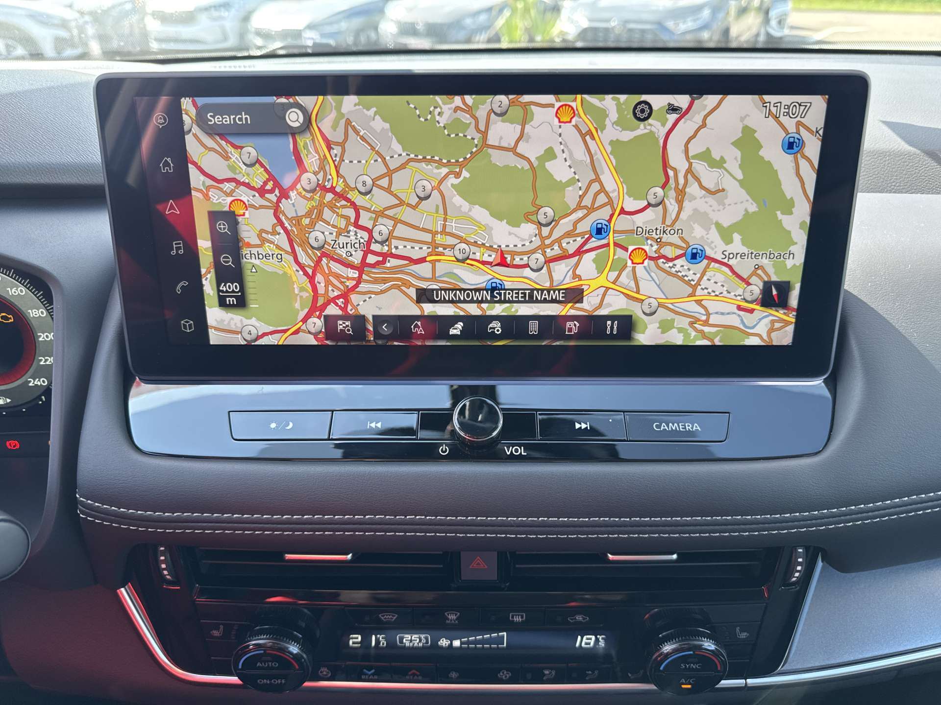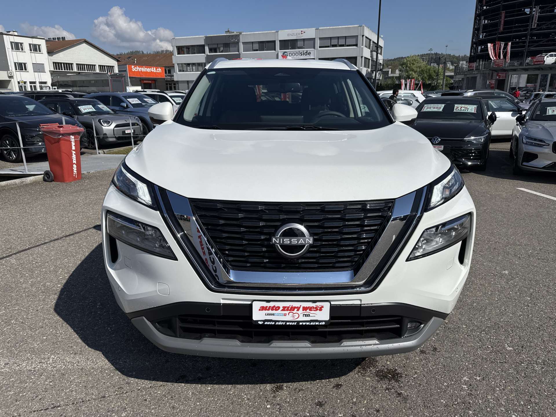 12-Volt-Steckdose vorne, 3-Punkt-Sicherheitsgurte auf allen Plätzen, 6 Verzurrösen im Kofferraum, Ablagen in den Türen, Airbag: Fahrer- und Beifahrerairbag, Kopfairbags und Seitenairbags vorne, Airbag: Zentralairbag, Ambientebeleuchtung für Mittelkonsole, Antiblockiersystem (ABS) mit elektronischer Bremskraftverteilung (EBD), Assist: 360°- Rundumsichtkamera, Assist: Adaptiver Geschwindigkeits- und Abstandsassistent, Assist: Aufmerksamkeitsassistent, Assist: Automatisches Aufleuchten der Warnblinkanlage bei starkem Bremsvorgang, Assist: Berganfahrassistent, Assist: eCall-Notrufsystem, Assist: Elektronische Parkbremse (e-PKB) mit automatischer Deaktivierung beim Anfahren, Assist: Frontkollisionswarnung, Assist: Intelligenter autonomer Notbrems-Assistent hinten -, Assist: Intelligenter Spurhalte-Assistent aktiv mit korrigierendem Bremseingriff, Assist: Manueller Geschwindigkeitsbegrenzer, Assist: Parksensoren hinten, Assist: Parksensoren vorne, Assist: Querverkehrswarner vorne mit Fussgänger- und Velofahrer Erkennung und Kreuzungsassistent, Assist: Querverkehrswarner, hinten, Assist: Rückfahrkamera in Farbe mit Reinigungsanlage, Assist: Spurverlassenswarnung, Assist: Traction Control (TCS), Assist: Verkehrszeichenerkennung, Assist: Visueller Totwinkel-Warner und aktiver Totwinkel-Assistent, Aussenspiegel rechts und links beheizt, elektrisch verstell- / und einklappbar, Beide Make up-Spiegel beleuchtet, Beleuchtetes Handschuhfach, Brillenfach, Dachhaltegriffe und 2 Kleiderhaken hinten, Dachreling silber, Dekor: "schwebende" Mittelkonsole mit "Schmetterlings"-Deckel, Differenzial mit begrenztem Schlupf, Dunkel getönte Seitenscheiben hinten, Elektrische Fensterheber vorne und hinten mit Auf-/Abwärts Automatik, Elektronisches Stabilitäts-Programm (ESP), Fahrmodi: Standard, Sport, Eco, Snow, Off-Road, Flexi-Board: Kofferraumboden einteilig, Frontscheibenheizung, Getränkehalter, 2 vorne, Getriebe: Direktantrieb, kein Getriebe, Gurtstraffer für Sicherheitsgurte und Warnton für nicht angelegte Sicherheitsgurte, Heckklappe elektrisch sensorgesteuert, Heckscheiben-Wisch-/Waschanlage, Heckscheibenheizung, Induktives Smartphone-Ladegerät, Innenbeleuchtung, Innenspiegel automatisch abblendbar, Intelligent Key: Schlüsselloses Zugangs- und Startsystem, ISOFIX-Kindersitz-Befestigungspunkte auf den hinteren Sitzplätzen inkl. Top-Tether, Klima: 2-Zonen-Klimaautomatik, inkl. Pollenfilter, Kofferraumabdeckung, Lackierung: Uni-Lackierung, Lenkrad: Lenkrad aus Leder, Lenkrad: Lenkrad beheizbar, Lenkrad: Lenkrad längs- und höhenverstellbar, Lenkrad: Multifunktionslenkrad, Licht: Dritte Bremsleuchte, Licht: Fahrlichtautomatik, Licht: Fernlicht-Assistent, Licht: LED-Rückleuchten, Licht: LED-Scheinwerfer, Licht: LED-Tagfahrlicht, Licht: Nebelschlussleuchte, Media: Apple CarPlay und Android Auto kabellos, Media: Audiosystem mit 6 Lautsprechern, Media: Bluetooth-Schnittstelle, Media: Haifischantenne, Media: Navigationssystem mit 12.3"-Touchscreen, Media: NissanConnect Services, Media: USB-Port Typ A vorne, Media: USB-Port Typ C (einer vorne,zwei hinten), Polster: Stoff, Räder: 18"-Leichtmetallfelgen, Räder: Reifendruck-Kontrollsystem (TPMS), Räder: Reifenreparatur-Set, Regensensor für Scheibenwischer vorne, Servolenkung, Sitze: 3. Sitzreihe (7 Sitze): geteilt (50:50) umklappbar, Sitze: Beheizbare Vorder- und Rücksitze der 2. Sitzreihe, Sitze: Beifahrersitz manuell höhenverstellbar, Sitze: Fahrer- und Beifahrersitz manuell einstellbar, Sitze: Fahrersitz mit Lendenwirbelstütze elektrisch einstellbar, Sitze: Kopfstützen auf allen Plätzen, manuell einstellbar, Sitze: Manuelle Lendenwirbelstütze für Beifahrersitz, Sitze: Mittelarmlehne hinten mit 2 Getränkehaltern, Sitze: Rücksitzbank asymmetrisch (60:40) umklappbar, Sonnenblenden mit Make-Up-Spiegel auf Fahrer- und Beifahrerseite, Sonnenstoren in den hinteren Seitentüren, Start-/Stop-Knopf, Tankstutzen mit Easy-Fill-Funktion, Taschen an der Rückseite der Vordersitze, Türgriffe mit Touch-Sensor, Wegfahrsperre elektronisch, Zentralverriegelung