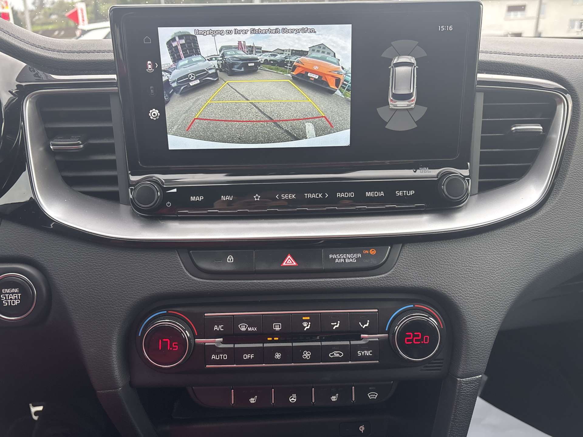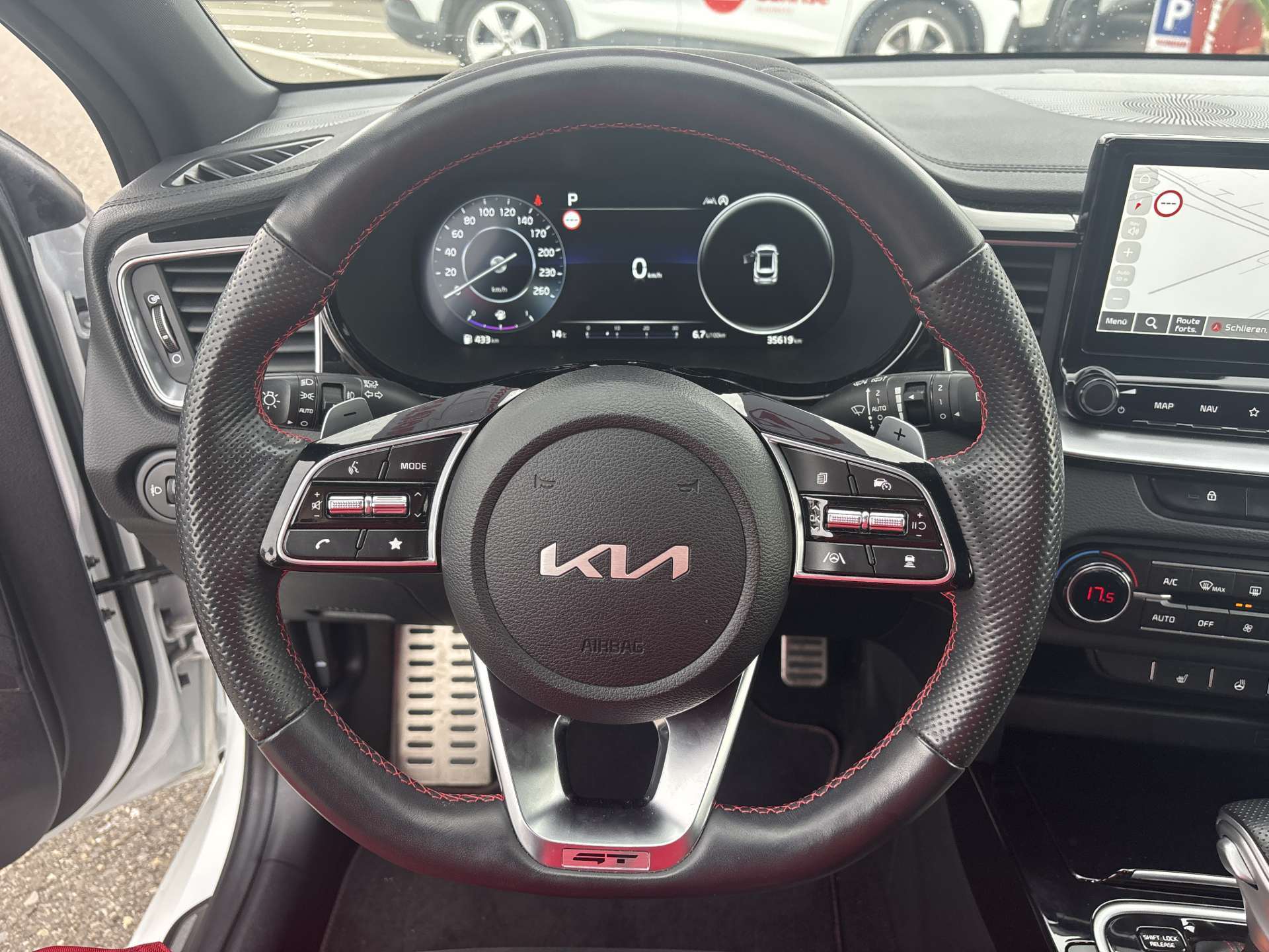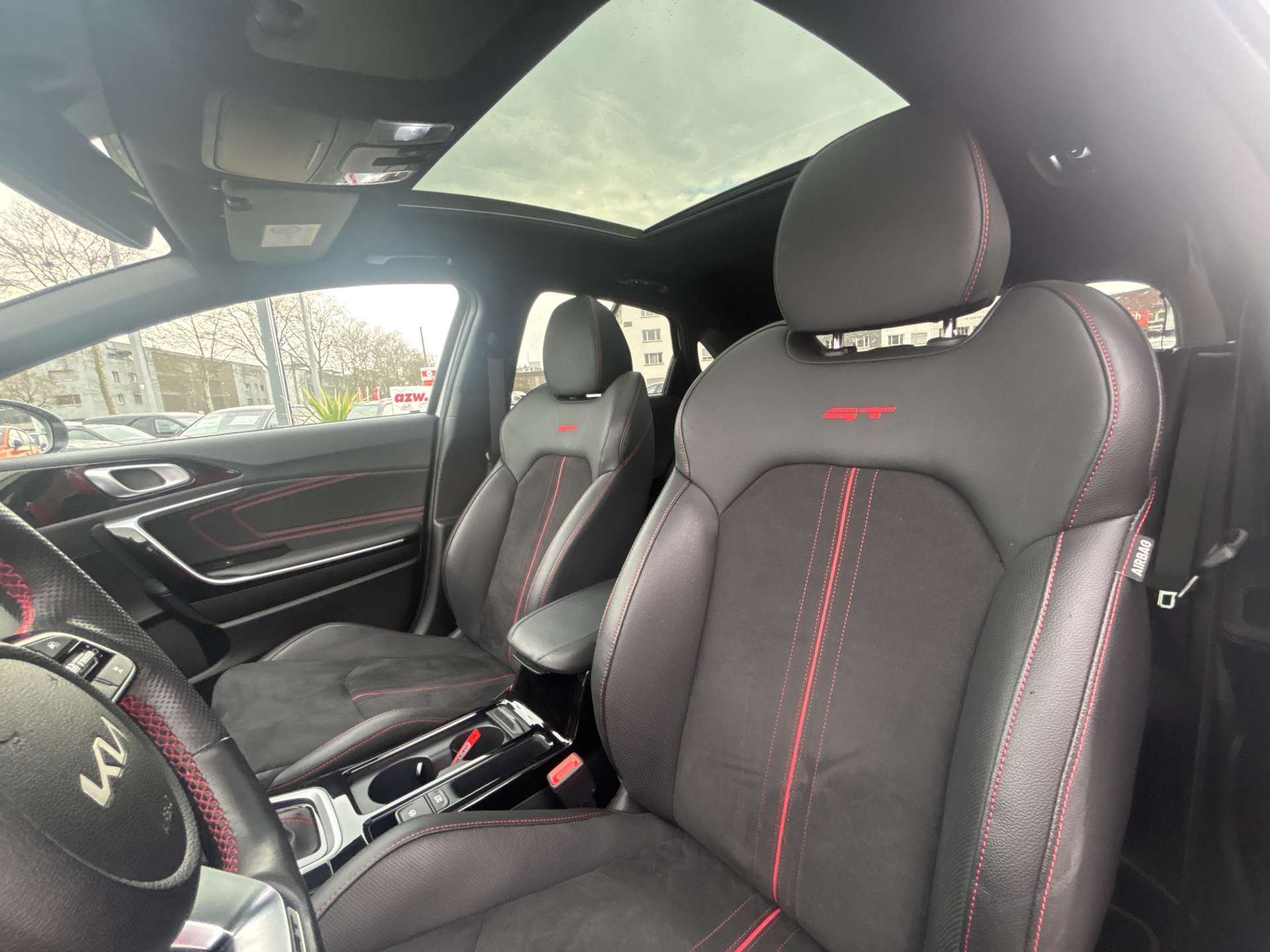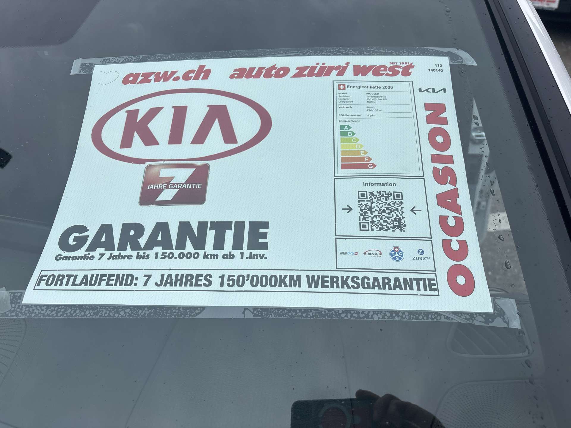 12V Anschluss in Mittelkonsole, 3-Punkt-Sicherheitsgurte an allen Sitzplätzen, vorn höhenverstellbar, Airbag: Airbag Fahrer und Beifahrer, Beifahrerairbag abschaltbar, Aluminium Sportpedale, Antiblockiersystem (ABS), Assist: Ausstiegsassistent, Assist: Autobahnassistent, Assist: Automatische Parkhilfe, Assist: Autonomer Notbremsassistent, Assist: Berganfahrassistent (HAC), Assist: Elektronischer Bremskraftverteilung (EBD), Assist: Fernlichtassistent, Assist: Intelligente Tempolimitwarnung, Assist: Lichtsensor, Assist: Müdigkeitserkennung, Assist: Parksensoren hinten, Assist: Parksensoren vorn, Assist: Rückfahr-Querverkehrswarner, Assist: Rückfahrkamera, Assist: Spurfolgeassistent (LFA), Assist: Spurhalteassistent aktiv, Assist: Tempomat mit Distanzassistent, Assist: Totwinkel-Assistent, Aussenspiegel in Schwarz, Aussenspiegel rechts und links beheizt,, Bordcomputer, Drehzahlmesser, Drive Mode Select, Elektrische Handbremse, Elektronisches Stabilitätsprogramm (ESC) / elektronische Traktionskontrolle (TCS), Fensterheber elektrisch, Fensterheber elektrisch vorn, Garantie: Audio-, Entertainment- und Navigationssystem 3 Jahre oder 100'000 km, Garantie: KIA Garantie 12 Jahre gegen Durchrostung, Garantie: KIA Garantie 5 Jahre oder 150'000 km Lackgarantie, Garantie: KIA Garantie 7 Jahre Mobilitätsgarantie, Garantie: KIA Garantie 7 Jahre oder 150'000 km, Gepäckraumabdeckung, Getriebe: 7-Gang DSG, Heckscheiben-Wisch-/Waschanlage, Heckscheibenheizung, Innenspiegel automatisch abblendbar, Instrumentenanzeige Supervision digital 12.3", Katalysator geregelt mit Partikelfilter, Klima: 2-Zonen-Klima-Automatik, Kühlergrill in Klavierlackoptik mit roten Akzenten, Lenkrad: Lenkrad beheizbar, Lenkrad: Lenkrad höhen- und tiefenverstellbar, Lenkrad: Lenkrad und Schaltknauf in Leder, Lenkrad: Multifunktionslenkrad, Licht: Aktives Bremslicht (ESS), Licht: Drittes Bremslicht, Licht: LED-Rückleuchten, Licht: LED-Scheinwerfer, Licht: LED-Tagfahrlicht, Licht: Nebelscheinwerfer vorn, Licht: Nebelschlussleuchte, Media: 10,25" Navigationssystem, Media: 8 Lautsprecher, Media: Android Auto und Apple CarPlay, Media: Bluetooth mit Sprachsteuerung, Media: DAB+ (Digital Audio Broadcasting), Media: Induktive Ladestation für Smartphone, Media: JBL Soundsystem, Media: Online-Dienste Kia Connect inkl. 7 Jahre, Media: USB-Anschluss, Mittelarmlehne vorne mit Staufach, Mittelkonsole in Klavierlackoptik, Paket: Power Pack, Privacy-Verglasung, Räder: 4 Leichtmetallfelgen 7,5 J × 18", Räder: Reifendruckkontrollsystem (TPMS), Räder: Tire mobility kit, Regensensor, Servolenkung mit elektrischer Lenkunterstützung, Sitze: Beifahrersitz höhenverstellbar, Sitze: Beifahrersitz mit Lendenwirbelstütze, Sitze: Fahrersitz elektrisch verstellbar mit Lendenwirbelstütze, Sitze: Fahrersitz höhenverstellbar, Sitze: Fahrersitz mit Memoryfunktion, Sitze: Höhenverstellbare Kopfstützen vorn und hinten, Sitze: ISOFIX-Kindersitzverankerung hinten, Sitze: Sitzheizung vorne und hinten, Sitze: Sitzlehne der 2. Sitzreihe umklappbar, asymmetrisch 60:40, Smart Entry-/Start-System, Sonnenblende mit Make-up-Spiegel, Start-/Stopp-Automatik, Wegfahrsperre elektronisch, Zentralverriegelung mit Fernbedienung