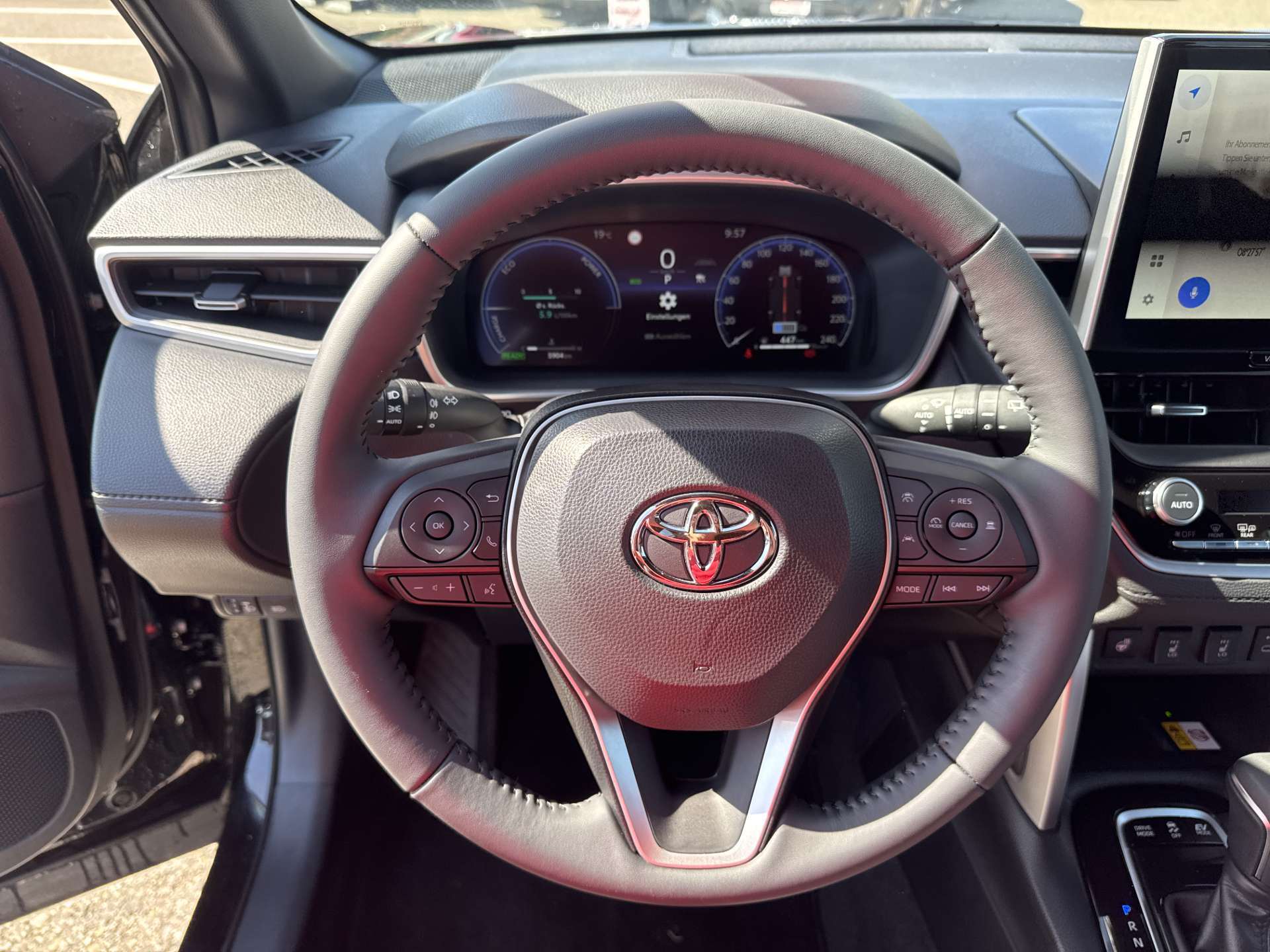 12 V-Anschluss vorne, 3-Punkt-Sicherheitsgurte auf allen Plätzen, Airbag: Airbag Fahrer und Beifahrer, Ambientebeleuchtung Innenraum, Antiblockiersystem (ABS), Assist: Adaptiver Tempomat (ACC), Assist: Berganfahrhilfe (HAC), Assist: Pre Collision System mit Fussgänger- und Fahrraderkennung (PCS), Assist: Rückfahrkamera, Assist: Spurhalteassistent (LTA), Assist: Verkehrszeichenerkennung (RSA), Aussenspiegel elektrisch einklappbar, verstellbar und beheizt, Dachreling, Digitaler Schlüssel für Zugang mit Smartphone, Elektronische Stabilitätskontrolle (ESC), Elektronische Traktionskontrolle, Getränkehalter, vorn, Getriebe: Stufenloser Automat, Heckscheibe und hintere Seitenscheiben getönt, Heckscheibenheizung, Heckscheibenwischer, Innenspiegel automatisch abblendbar, Kabellose Ladestation für mobile Geräte (Qi), Klima: Klimaautomatik mit Pollenfilter, Kopfstützen auf allen Plätzen, Lackierung: Uni-Lackierung, Lenkrad: Lederlenkrad, Lenkrad: Lenkrad mit Bedienelementen, Licht: Drittes Bremslicht, Licht: Fernlicht-Automatik (AHB), Licht: LED Nebelscheinwerfer, Licht: LED-Tagfahrlicht, Licht: Nebelschlussleuchte, Licht: Scheinwerfer LED Premium, Media: 12,3" Multiinformationsdisplay (Tachodisplay), Media: MyT App Connected Services (10 Jahre gratis), Media: MyT App Smart Connect Pack (4 Jahre gratis), Media: Smartphone Integration: Apple CarPlay ohne Kabel / Android Auto mit Kabel, Media: Toyota Smart Connect (T1) Multimedia mit 10.5" HD Bildschirm, Cloud-Navigationssystem, Media: USB Anschluss 1x vorne, 2x hinten (1 x Typ A / 2 x Typ C), Polster: Sitze Teilleder, Räder: 18"-Leichtmetallfelgen, 225/50 R18-Reifen, Räder: Reifendruck-Warnsystem (TPWS), Räder: Reifenreparatur-Set, Regensensor, Schaltknauf PVC, Servolenkung geschwindigkeitsabhängig, Sitze: Beifahrersitz 4 -fach manuell verstellbar, Sitze: Beifahrersitz 6 -fach manuell verstellbar, Sitze: Fahrersitz Lendenwirbelstütze elektrisch, Sitze: Rücksitze, im Verhältnis 60:40 manuell umklappbar, Sitze: Sitzheizung Fahrer und Beifahrer, Sitze: Sitzhöhenverstellung Fahrerseite, Smart Entry, Wegfahrsperre elektronisch, Zentralverriegelung mit Fernbedienung