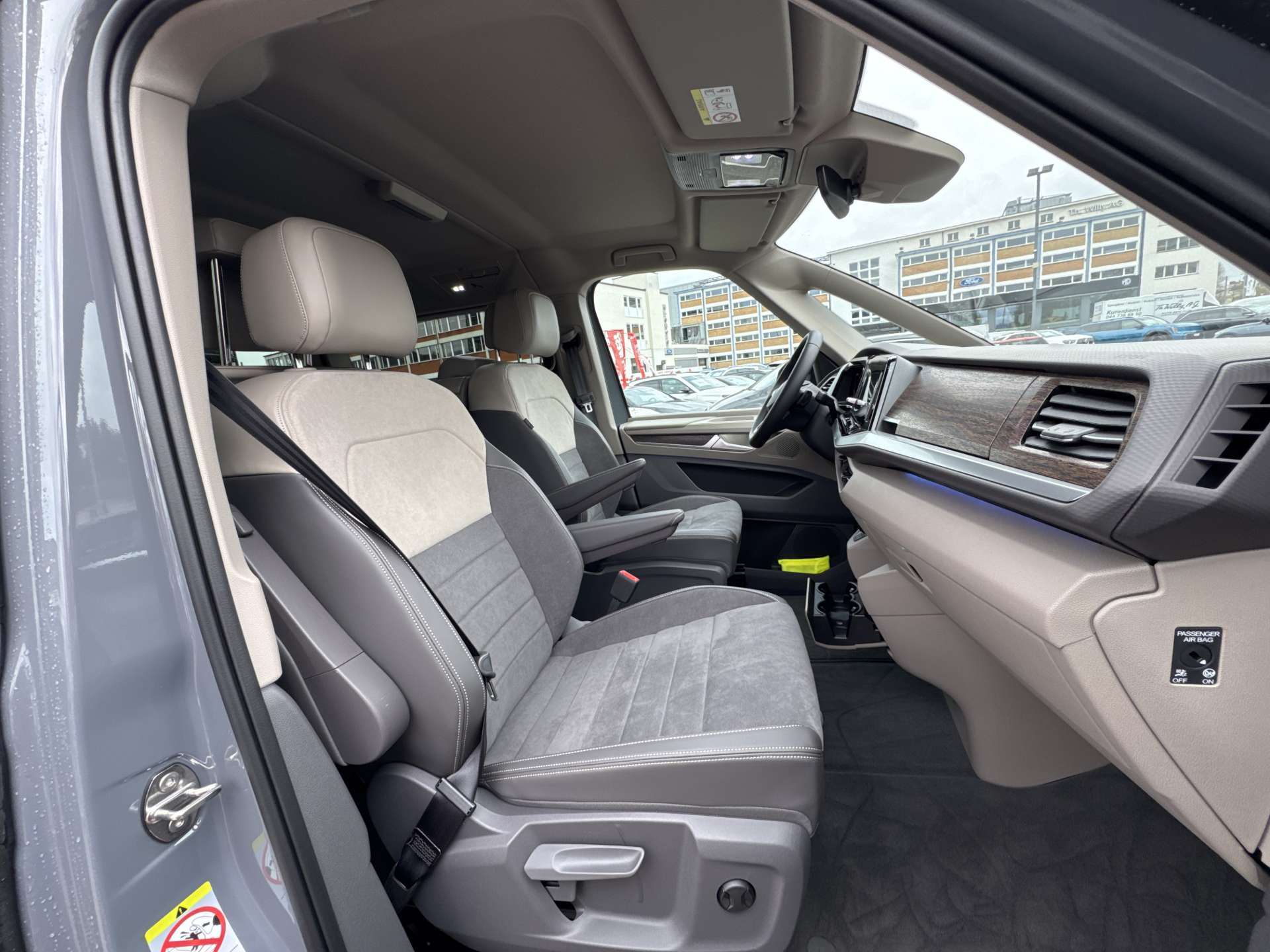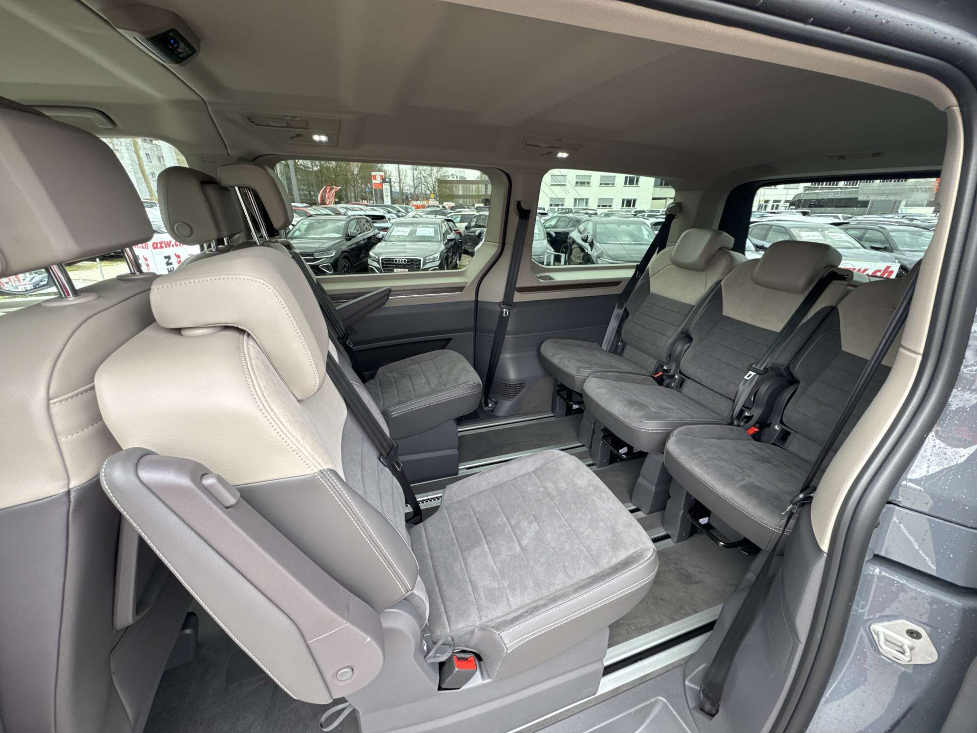 FAMILIEN-MULTIVAN! 7-Plätzer! LANG! DSG-Automat! Navigat. via App-Connect, Anhängekupplung schwenkbar, elektr. Heckklappe, elektr. Schiebetüren li./re., Alcantara, 17" Alufelgen, IQ-Light LED Matrix Scheinwerfer, abged. Scheiben ht., Sprachsteuerung, Klimaautomatik, Einparkhilfe vo./hi., Rückfahrkamera, ISOFIX,  Ganzjahresreifen, DAB+ Radio, Komforttelefonie, Wireless Charging, Bluetooth, App-Connect, Ablenkungs-/Müdigkeitserkennung, Abstandsregeltempomat, ABS, Diebstahlalarmanlage, Parklenkassistent, Diebstahlalarmanlage, Armlehne hint., 6x Airbags, Armlehnen vorne, Innenspiegel aut. abblendend, Sitzheizung vorne, Multif.-Lederlenkrad, Schaltwippen, Keyless Go, Zentralverriegelung mit Funk, elektr. Fensterheber vorne u.v.m.