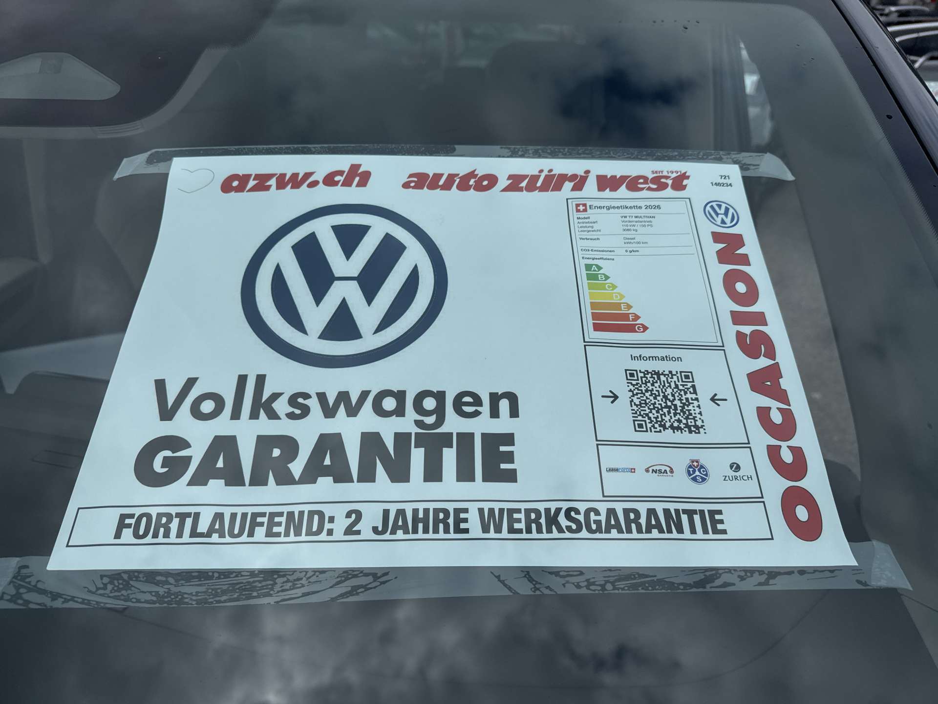 2 Schiebefenster im Fahrgastraum, 4 Funkklappschlüssel, Airbag: Airbags für Fahrer und Beifahrer, Airbag: Airbags für Fahrer und Beifahrer, Airbag: Seiten- und Kopfairbags vorn, Airbag: Seiten- und Kopfairbags vorn, Assist: ABS, TCS, ESP, Assist: Aufmerksamkeits- & Müdigkeitsassistent, Assist: Aufmerksamkeits- & Müdigkeitsassistent, Assist: Ausweichunterstützung mit Abbiegeassistent, Assist: Ausweichunterstützung mit Abbiegeassistent, Assist: Automatische Distanzregelung ACC "stop & go" mit Geschwindigkeitsbegrenzer, Assist: Automatische Distanzregelung ACC "stop & go" mit Geschwindigkeitsbegrenzer, Assist: Geschwindigkeitsregelanlage, Assist: Kreuzungsassistent, Assist: Kreuzungsassistent, Assist: Notbremsassistent "Front Assist" mit Fussgänger- und Radfahrererkennung, Assist: Notbremsassistent "Front Assist" mit Fussgänger- und Radfahrererkennung, Assist: Parklenkassistent "Park Assist" und Ultraschall-Einparkhilfe vorne und hinten, Assist: Parklenkassistent "Park Assist" und Ultraschall-Einparkhilfe vorne und hinten, Assist: Rückfahrkamera Rear View, Assist: Rückfahrkamera Rear View, Assist: Speedlimiter mit "Intelligent Speed Assist", Assist: Speedlimiter mit "Intelligent Speed Assist", Assist: Spurhalteassistent Lane Assist, Assist: Spurwechselassistent "Side Assist" inkl. Blind Spot Detection und Ausparkassistent, Assist: Spurwechselassistent "Side Assist" inkl. Blind Spot Detection und Ausparkassistent und Ausstiegswarner, Assist: Verkehrszeichenerkennung, Assist: Verkehrszeichenerkennung, Aussenspiegelgehäuse in Schwarz hochglanz, Aussenspiegelgehäuse in Schwarz hochglanz, Chromleistenpaket an den Seiten und am Heck, Chromleistenpaket an den Seiten und am Heck, Dekor: Dekoreinlagen "Dark Woodgrain Optic", Dekor: Dekoreinlagen "Dark Woodgrain Optic", Diebstahl-Alarmanlage mit Innenraumüberwachung, Back-up-Horn und Abschleppschutz, Diebstahl-Alarmanlage mit Innenraumüberwachung, Back-up-Horn und Abschleppschutz, Elektrische Fensterheber vorne, Elektrische Heckklappe, Elektrische Heckklappe (öffnend und schließend) mit "Easy Open" und "Easy Close"-Funktion, Elektronische Wegfahrsperre, Garantie: VW Anschlussgarantie (2+3 Jahre, max. 200'000km), Garantie: VW Garantie 3 Jahre Lack-Garantie, Garantie: VW Garantie: 12 Jahre Karosserie-Garantie gegen Durchrostung, Garantie: VW Garantie: 2 Jahre ohne Kilometerbegrenzung (ab 1. Inv.), Gepäckraumabdeckung, Gepäckraumabdeckung, Getriebe: 7-Gang Getriebe automatisiert, Handschuhfach und Ablagefächer im Armaturenbrett, Heckklappe mit elektrischer Öffnung und Schliessung, Klima: 3-Zonen Klimaanlage "Air Care Climatronic" mit zusätzlichem Bedienteil im Fahrgastraum, Klima: 3-Zonen Klimaanlage "Air Care Climatronic" mit zusätzlichem Bedienteil im Fahrgastraum, Kühlerschutzgitter in Schwarz glänzend lackiert mit 2 Chromleisten, hinterleuchtet, Kühlerschutzgitter in Schwarz glänzend lackiert mit 2 Chromleisten, hinterleuchtet, Lackierung: Uni-Lackierung, Lackierung: Uni-Lackierung, Laderaumunterteilung (Belastbarkeit 20 kg) mit Taschenhaken und Gepäcknetz, Laderaumunterteilung (Belastbarkeit 20 kg) mit Taschenhaken und Gepäcknetz, Lenkrad: Leder-Multifunktionslenkrad mit Bedienung für Radio und Telefon und Schaltwippen, Lenkrad: Leder-Multifunktionslenkrad mit Bedienung für Radio und Telefon und Schaltwippen, Licht: Dynamischer Fernlichtassistent "Dynamic Light Assist" für LED-Matrix-Scheinwerfer, Licht: Dynamischer Fernlichtassistent "Dynamic Light Assist" für LED-Matrix-Scheinwerfer, Licht: IQ.Light-LED-Matrix-Scheinwerfer mit LED-Tagfahrlicht, Licht: IQ.Light-LED-Matrix-Scheinwerfer mit LED-Tagfahrlicht, Licht: LED-Rückleuchten, rot, Licht: LED-Rückleuchten, rot, Licht: Tagesfahrlichtschaltung, Licht: Umfeldbeleuchtung an der Heckklappe und Ambientebeleuchtung 30-farbig, Licht: Umfeldbeleuchtung an der Heckklappe und Ambientebeleuchtung 30-farbig, Media: 2 USB-C-Schnittstellen vorn, 4 USB-C-Ladebuchsen im Fahrgastraum, Media: 2 USB-C-Schnittstellen vorn, 4 USB-C-Ladebuchsen im Fahrgastraum, Media: 8 Lautsprecher, Media: 8 Lautsprecher, Media: App-Connect, Media: App-Connect, Media: DAB+ (Digital Audio Broadcasting), Media: DAB+ (Digital Audio Broadcasting), Media: Digital Cockpit Pro, Media: Digital Cockpit Pro, Media: Mobiltelefon-Schnittstelle "Comfort" mit induktiver Ladefunktion, Media: Mobiltelefon-Schnittstelle "Comfort" mit induktiver Ladefunktion, Media: Navigationssystem "Discover Pro" mit 25,4 cm (10") Touch-Farbdisplay inklusive, Media: WeConnect Plus, 3 Jahre, Multifunktionstisch/Mittelkonsole mit 3 Becherhaltern, im ganzen Fahrzeug verschiebbar, Paket: 7-Sitzer-Paket 2-2-3, Paket: Easy Open Paket Basic, Räder: Leichtmetallräder "Dundrod" 6,5J x 17, in Schwarz, Oberfläche glanzgedreht, Räder: Reifenkontrollanzeige, Räder: Reifenkontrollanzeige, Räder: Tire Mobility Set, Scheiben im Fond abgedunkelt, Scheibenwischer mit Regensensor, Scheibenwischer mit Regensensor, Schubladen unter den äusseren Sitzen im Fahrgastraum und 2 Abfallbehälter, Schubladen unter den äusseren Sitzen im Fahrgastraum und 2 Abfallbehälter, Sicherheitsinnenspiegel, automatisch abblendbar, Sicherheitsinnenspiegel, automatisch abblendbar, Sitze: 2 Einzelsitze im Fahrerhaus höhenverstellbar mit Armlehnen, elektrischer Lendenwirbelstützue, Sitze: 2 Einzelsitze im Fahrerhaus höhenverstellbar mit Armlehnen, elektrischer Lendenwirbelstützue und Klapptisch, Sitze: 2 Einzelsitze in der ersten Sitzreihe im Fahrgastraum mit Armlehnen inkl. Schubladen, Sitze: 3 Einzelsitze in der zweiten Sitzreihe im Fahrgastraum inkl. Schubladen unter den Sitzen, Sitze: 3 Einzelsitze in der zweiten Sitzreihe im Fahrgastraum inkl. Schubladen unter den Sitzen, Sitze: Armlehne für Fahrer- und Beifahrersitz, Sitze: Bi-Color Sitzbezüge, Sitzmittelbahnen in Mikrovlies "ArtVelours", Sitze: Bi-Color Sitzbezüge, Sitzmittelbahnen in Mikrovlies "ArtVelours" Sitzwangen in Glattlederoptik, Sitze: Sitzheizung für Vordersitze, Sitze: Sitzheizung für Vo