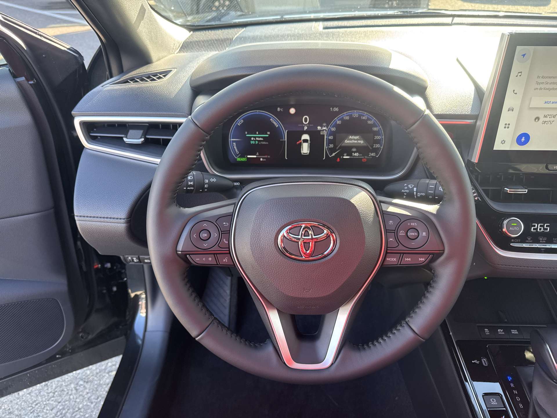12 V-Anschluss vorne, Airbag: Airbag Fahrer und Beifahrer, Airbag: Seiten- und Kopfairbags vorne, Ambientebeleuchtung Innenraum, Antiblockiersystem (ABS), Assist: Adaptiver Tempomat (ACC), Assist: Berganfahrhilfe (HAC), Assist: Erweiterter Notbremsassistent (EDSS), Assist: Parksensoren vorne & hinten mit Bremsassistent mit Objekt & Fahzeugerkennung (PKSB), Assist: Pre Collision System mit Fussgänger- und Fahrraderkennung (PCS), Assist: Rückfahrkamera, Assist: Safe Exit Assistent (SEA), Assist: Spurhalteassistent (LTA), Assist: Totwinkelassistent (BSM) und Querverkehrswarner hinten (RCTA), Assist: Verkehrsschilderkennung (RSA), Aussenspiegel elektrisch verstellbar, einklappbar und beheizbar, Bodenteppiche, Dachreling, Elektrische Fensterheber vorne + hinten, Elektronische Traktionskontrolle, Elektronisches Stabilitäts-Programm (ESP), Getränkehalter 2x vorn, 4x hinten, Getriebe: Stufenloser Automat, Heckklappe elektrisch, Heckscheibe und hintere Seitenscheiben getönt, Innenspiegel automatisch abblendbar, Klima: 2-Zonen-Klimaautomatik, Klima: Fernsteuerung von Klimaanlage, Lackierung: Uni-Lackierung, Lenkrad: Lederlenkrad, Lenkrad: Lenkrad beheizbar, Lenkrad: Lenkrad mit Bedienelementen, Licht: Fernlicht-Automatik (AHB), Licht: LED Nebelscheinwerfer, Licht: LED Scheinwerfer Premium, Licht: LED-Tagfahrlicht, Media: 12,3" Multiinformationsdisplay (Tachodisplay), Media: Kabellose Ladestation für mobile Geräte (Qi), Media: MyT App Connected Services (10 Jahre gratis), Media: MyT App Smart Connect Pack (4 Jahre gratis), Media: Smartphone Integration: Apple CarPlay ohne Kabel / Android Auto mit Kabel, Media: Toyota Smart Connect (T1) Multimedia mit 10.5" HD Bildschirm, Cloud-Navigationssystem, Media: USB Anschlüsse hinten (2x USB-C), Media: USB-Anschlüsse vorne (1x USB-A), Paket: Tech Paket, Polster: Sitzbezug Stoff, Räder: 18"-Leichtmetallfelgen, 225/50 R18-Reifen, Räder: Reifendrucküberwachung (TPMS), Räder: Reifenreparatur-Set, Regensensor, Schaltknauf Leder, Servolenkung, Sitze: 2. Sitzreihe, im Verhältnis 60:40 manuell umklappbar, Sitze: Beifahrersitz 4 -fach manuell verstellbar, Sitze: Fahrersitz 6-fach manuell verstellbar, Sitze: Fahrersitz höhenverstellbar, Sitze: Fahrersitz mit Lendenwirbelstütze elektrisch verstellbar, Sitze: Sitzheizung Fahrer und Beifahrer, Smart Entry-/Start-System, Zentralverriegelung mit Fernbedienung