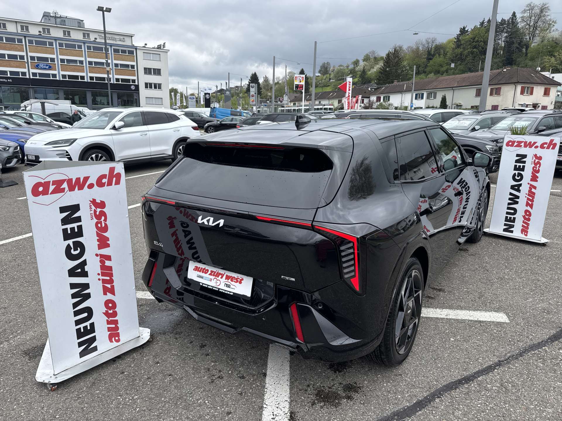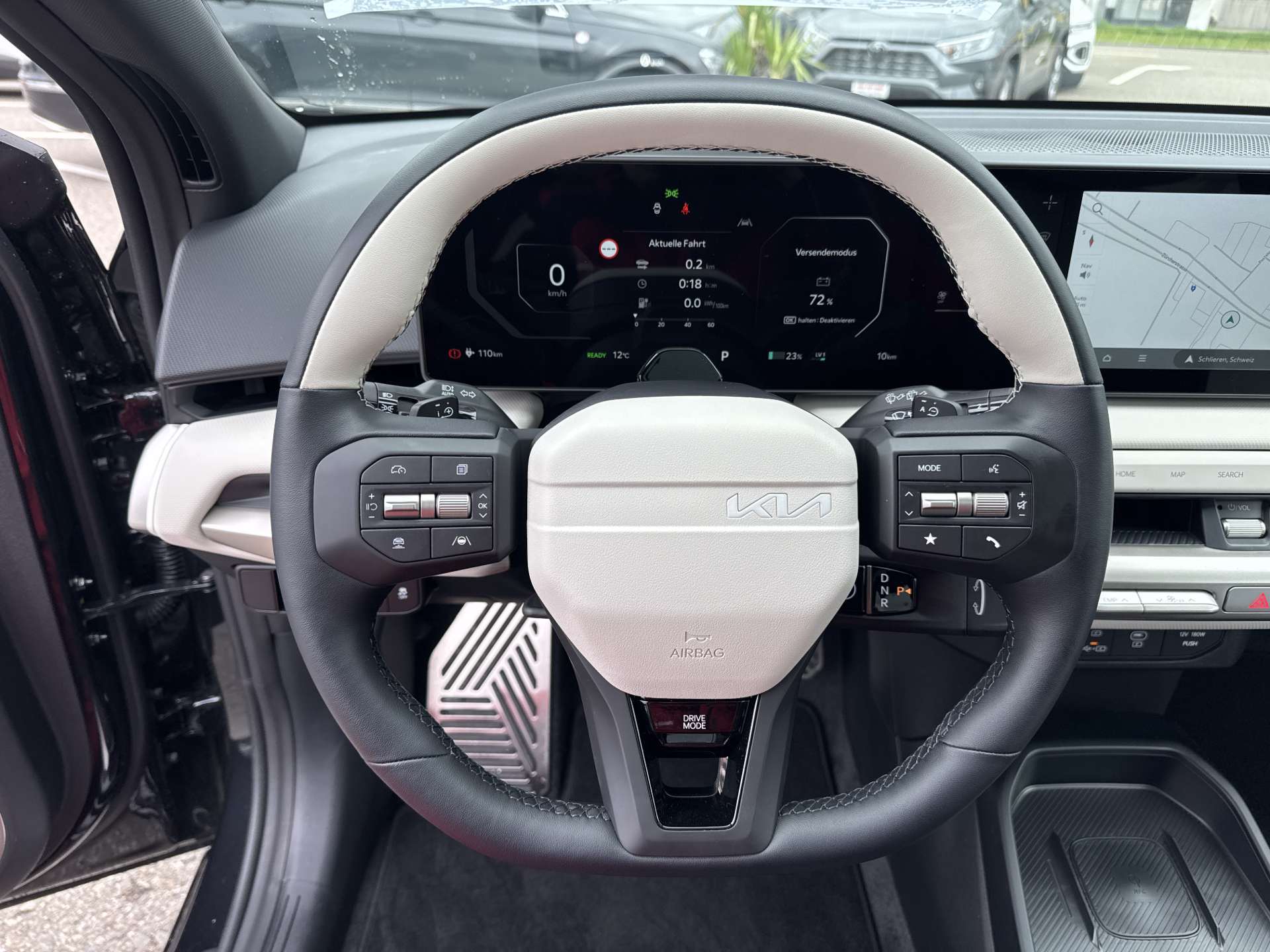 Airbag: Airbag Fahrer und Beifahrer, Airbag: Kopfairbags (Vorhang) vorn und hinten, Airbag: Seitenairbags vorn, Airbag: Zentralairbag vorne, Aluminium Sportpedale, Ambientebeleuchtung Armaturentafel, Ambientebeleuchtung Türen vorne, Antiblockiersystem (ABS), Assist: 360° Monitor Rundumsichtkamera mit 3D Darstellung (SVM), Assist: Autobahnassistent 2.0 (HDA 2.0), Assist: Autonomer Notbremsassistent mit Abbiegeerkennung (FCA 1.5), Assist: Autonomer Notbremsassistent mit Fussgänger- und Fahrraderkennung (FCA 2.0), Assist: Berganfahrassistent (HAC), Assist: e-Call automatisches Notrufsystem, Assist: Elektrische Handbremse, Assist: Ferngesteuerter Parkassistent (RSPA), Assist: Inteligenter Geschwindigkeitsassistent (ISLA), Assist: Kamera zur Überwachung des Fahrerzustandes mit Fahrerwarnung (ICC-D), Assist: Kollisionsvermeidungsassistent hinten (PCA), Assist: Lichtsensor, Assist: Multikollisionsbremse (MCB), Assist: Parksensoren hinten, Assist: Parksensoren vorn, Assist: Rückfahrkamera, Assist: Spurfolgeassistent (LFA 2.0), Assist: Spurhalteassistent (LKA), Assist: Tempomat mit Distanzassistent (SCC2), Assist: Totwinkelassistent mit Monitoranzeige (BVM), Aussenspiegel elektrisch einklappbar, Aussenspiegel elektrisch verstell- und beheizbar, Aussenspiegel in Wagenfarbe, Batterieheizung, Dachhimmel schwarz, Digital Key 2.0, Drive Mode Select, Elektrische Heckklappe, Elektronisches Stabilitätsprogramm (ESC) / elektronische Traktionskontrolle (TCS), Fensterheber elektrisch vorn und hinten, Garantie: Audio-, Entertainment- und Navigationssystem 3 Jahre oder 100'000 km, Garantie: KIA Garantie 12 Jahre gegen Durchrostung, Garantie: KIA Garantie 5 Jahre oder 150'000 km Lackgarantie, Garantie: KIA Garantie 7 Jahre Mobilitätsgarantie, Garantie: KIA Garantie 7 Jahre oder 150'000 km, Garantie: KIA Garantie HV Batterie 8 Jahre oder 160000 km (was zuerst eintrifft), Gepäckraumabdeckung, Getriebe: Direktantrieb, kein Getriebe, Head-Up Display, Heckscheibenheizung, Innenraumbeleuchtung, Innenrückspiegel automatisch abblendbar, Kindersicherung, Klima: 2-Zonen-Klima-Automatik, Kopfstützen vorne - Mesh -, Lackierung: Uni-Lackierung, Ladekabel Mode 3 (7.5 m, Typ 2 auf Typ 2), Lenkrad: Lederlenkrad, Lenkrad: Lenkrad beheizbar, Lenkrad: Lenkrad höhen- und tiefenverstellbar, Lenkrad: Schaltwippen (Rekuperation), Lenkrad: Sportlenkrad, Licht: Intelligentes Scheinwerfersystem (IFS), Licht: LED-Rückleuchten, Media: 12.3"-Navigationssystem, DAB+, Media: Android Auto und Apple CarPlay kabellos, Media: Bluetooth Freisprecheinrichtung mit Sprachsteuerung, Media: Connected Car Navigation Cockpit - Triple Panoramic Display, Media: Induktive Ladestation für Smartphone, Media: Online-Dienste Kia Connect inkl. 7 Jahre, Media: OTA - Over the Air Software Aktualisierung, Media: USB-Anschlüsse, Media: USB-Anschlüsse Rücksitzlehnen, Mittelarmlehne mit Stauraum, Paket: Safety Pack, Polster: Sitzbezüge veganes Leder GT-Line, Privacy-Verglasung, Räder: Leichtmetallfelgen 19J, Räder: Reifendruckkontrollsystem (TPMS), Räder: Tire mobility kit, Radläufe in Hochglanzschwarz, Regensensor, Servolenkung, Sitze: Beifahrersitz elektrisch verstellbar mit Lendenwirbelstütze, Sitze: Beifahrersitz höhenverstellbar, Sitze: Fahrersitz elektrisch verstellbar mit Lendenwirbelstütze, Sitze: ISOFIX-Kindersitzverankerung hinten, Sitze: Sitzheizung hinten, Sitze: Sitzheizung vorne, Sitze: Sitzlehne der 2. Sitzreihe umklappbar, asymmetrisch 60:40, Solarglas, Sonnenblenden mit beleuchtetem Make-up-Spiegel, Start-/Stop-Knopf mit Smart Key, Türgriffe mit automatischem Einzug, Vorbereitung Anhängerkupplung, Wärmepumpe, Zentralverriegelung