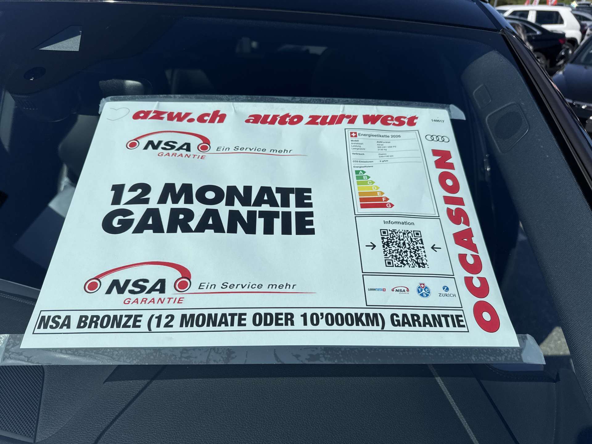 1-Gang Getriebe automatisiert, 2 zusätzliche 12V-Anschlüsse, 3-Punkt-Sicherheitsgurte auf allen Plätzen, Adaptive air suspension: elektronisch geregelte Luftfederung, Airbag: Airbag Beifahrer deaktivierbar, Airbag: Airbag Fahrer und Beifahrer, Airbag: Window-Kopfairbags, Akustikglas, Allradantrieb permanent, Antiblockiersystem (ABS), Assist: Bremsassistent (BAS), Assist: Einparkhilfe plus, Assist: Spurverlassenswarnung, Audi connect Notruf, Audi pre sense basic, Audi pre sense front, Audi virtual cockpit, Aussenspiegel in Wagenfarbe, Aussenspiegel rechts und links beheizbar und elektrisch verstellbar, Bordwerkzeug, Dachhimmel, Dekoreinlagen, Einstiegsschienen verchromt, Elektronisches Stabilitäts-Programm (ESP), Gepäckraumklappe elektrisch öffnend und schliessend, Heckscheibenheizung, Höhenverstellbare Gurten vorne, Innenspiegel automatisch abblendbar, ISOFIX Kindersitzvorrichtung, Kindersitzvorrichtung ISOFIX Beifahrerseite, Klima: 2-Zonen-Klimaautomatik, Klima: Pollenfilter (Staubfilter), Lackierung: Uni-Lackierung, Ladekabel für Industriesteckdose, Laderaumabdeckung, Ladesystem, Lenkrad: Lenkrad längs- und höhenverstellbar, Lenkrad: Progressivlenkung, Licht: Drittes Bremslicht, Licht: LED Heckleuchten, Licht: LED Scheinwerfer, Licht: Nebelschlussleuchte, Media: Audi connect (3 Jahre), Media: Audi music interface, Media: Audi Sound System, Media: Bluetooth-Schnittstelle, Media: Digitaler Radioempfang (DAB), Media: MMI Navigationssystem Plus, Media: MMI Radio plus, Mittelarmlehne vorn in Kunstleder schwarz mit Kontrastnaht in Rot, Multifunktionslenkrad in Leder mit, Nichtraucherausführung, Paket: Glanzpaket, Polster: Stoff-Ausstattung, Räder: Reifendruck-Kontrollanzeige, Räder: Reifenreparatur-Set (Tire Fit), Rücksitzlehne geteilt abklappbar, Scheibenwischer vorne mit Intervall, Scheinwerfer-Waschanlage, Seitenairbag für Fahrer und Beifahrer, Servolenkung, Sitze: Normalsitze, Sitze: Vordersitze manuell verstellbar, Sonnenblende Fahrer und Beifahrerseite mit beleuchtetem Spiegel, Standard-Ladekabel, Standklimatisierung, Steckdose 12V, Stossfänger in Kontrastlackierung, Tempomat mit Geschwindigkeitsbegrenzer, Teppichfussmatten vorne und hinten, Verbandmaterial und Warndreieck, Wegfahrsperre elektronisch, Zentralverriegelung mit Fernbedienung
