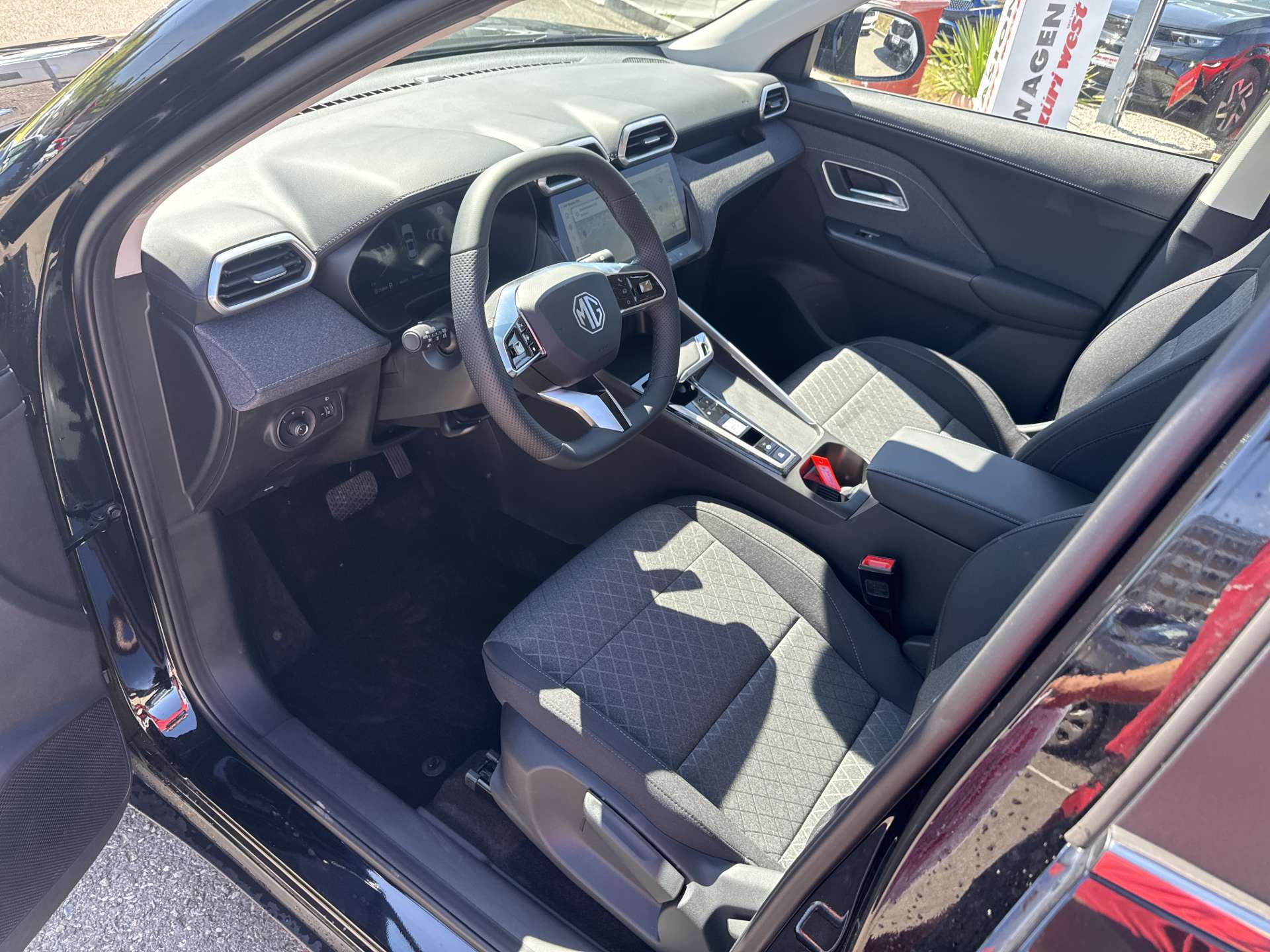Airbag: Airbag Fahrer und Beifahrer, Airbag: Seitenairbags für Fahrer und Beifahrer, Antiblockiersystem (ABS), Assist: MG Pilot: ACC/ AEB/ ISA/ UDW/ FCW/ LDW/ ELK/ LKA, Assist: Parksensoren hinten, Assist: Rückfahrkamera, Aussenspiegel manuell anklappbare und beheizbare, Elektrische Fensterheber vorne, ESP und TCS, Garantie: 7 Jahre oder 150'000 km, Getriebe: Automatikgetriebe 3 Gänge, Keyless Zugang, Klima: Automatische Klimaanlage, Lackierung: Uni-Lackierung, Lenkrad: Lederlenkrad, Lenkrad: Multifunktionslenkrad, Licht: LED-Beleuchtung (Tagfahrlicht/Vorder-/Rücklicht), Media: 12.3" Infotaimentbildschirm + 12.3" virtueles Instrument, Media: Android Auto/Apple CarPlay, Media: Navigation, Media: Radio mit 6 Lautsprechern, Polster: Stoff-Ausstattung, Räder: 17''-Zoll-Leichtmetallfelgen, Räder: Direktes TPMS (Reifendruckkontrollsystem), Regensensor, Servolenkung, Sitze: Lüftung Rückbank, Sitze: Manuell verstellbarer Fahrersitz, Zentralverriegelung mit Fernbedienung