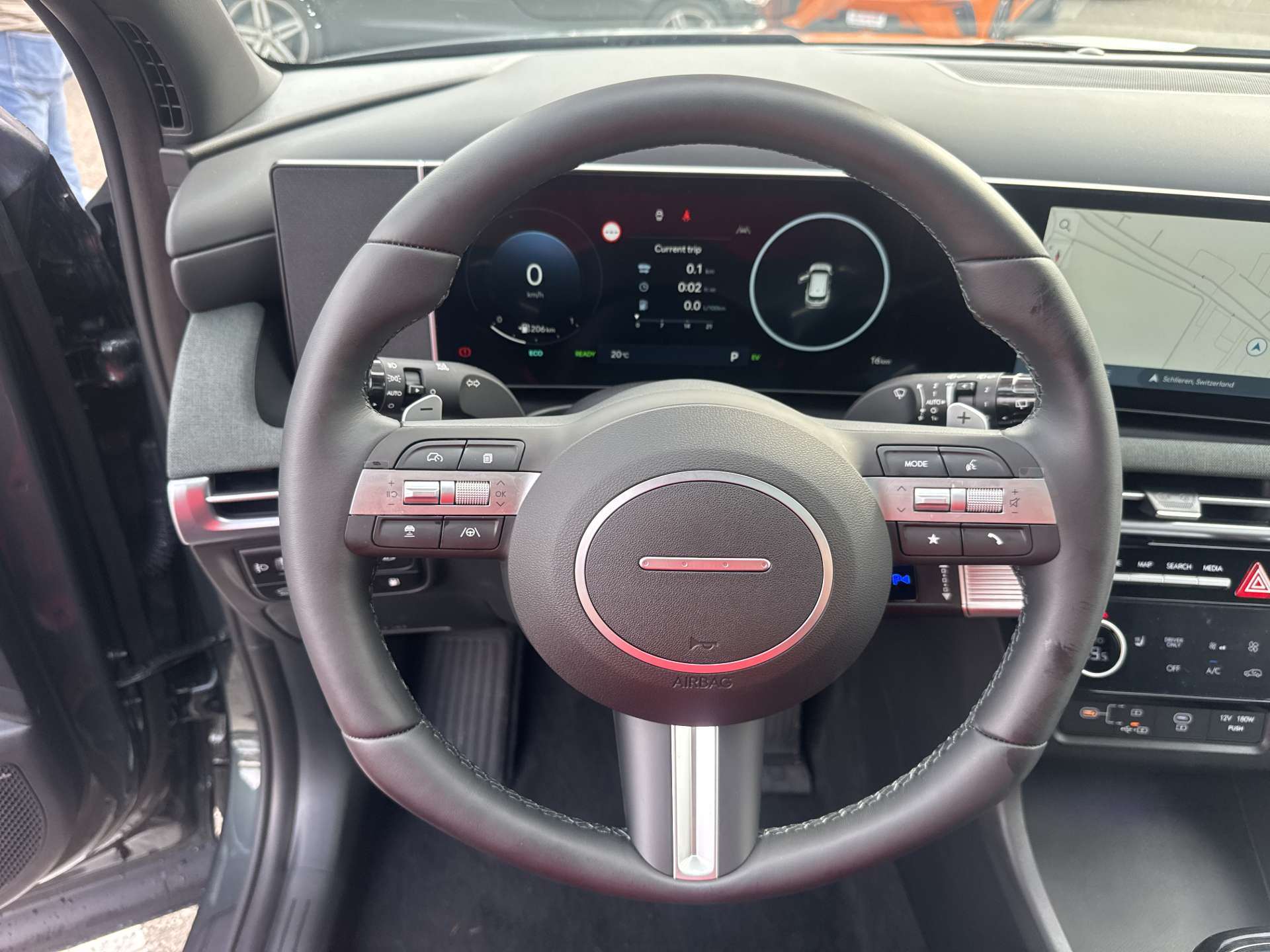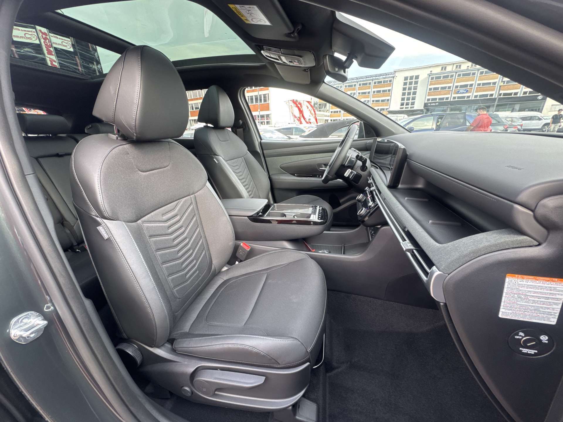 ABS mit elektronischer Bremskraftverteilung EBD, Airbag: Center Airbag vorne, Airbag: Deaktivierung Frontairbag Beifahrerseite, Airbag: Front- und Seitenairbags vorne, Vorhangairbags vorne und hinten, Alarmanlage, Ambientebeleuchtung, Assist: Aktiver Totwinkelassistent, Assist: Anfahralarm Vorderfahrzeug, Assist: Aufmerksamkeitsassistent, Assist: Bergabfahrhilfe (DAC), Assist: Berganfahrhilfe, Assist: Einparkhilfe vorne und hinten, Assist: Elektrische Parkbremse mit Auto-Hold-Funktion, Assist: Elektronische Traktionskontrolle, Assist: Navigationsbasierter adaptiver Tempomat, Assist: Notbremsassistent mit Fussgänger-/Fahrraderkennung und Abbiegefunktion, Assist: Querverkehrswarner hinten mit Bremsassistent, Assist: Rückfahrkamera, Assist: Spurfolgeassistent, Assist: Spurhalteassistent, Assist: Verkehrszeichenerkennung, Assist: Verkehrszeichenerkennung mit automatischer Geschwindigkeitsregelung, Aussenspiegel mit Welcome-Light, Aussenspiegel und Türgriffe in Wagenfarbe, Aussentemperaturanzeige, Automatisch abblendender Innenspiegel, Automatisches Notrufsystem eCall, Bordcomputer, Dachreling, Dreipunkt-Sicherheitsgurte auf allen Plätzen, vorne höhenverstellbar, Drive Mode Select (2 Fahrmodi), Elektrisch einklappbare Aussenspiegel, Elektrisch verstell- und beheizbare Aussenspiegel, Elektrische Fensterheber vorne u. hinten, Elektronische Gangschaltung (Shift by wire), Elektronisches Stabilitätsprogramm ESP mit Multikollisionsbremse, Fahrtrichtungsanzeiger mit Antippfunktion, Fahrwerk: Terrain Mode Selector, Gepäcknetz, Getriebe: 6-Gang Automatikgetriebe, Insassenalarm, ISOFIX Kindersitzvorrichtung, Klima: 2-Zonen-Klimaautomatik mit Anti-Beschlagsystem, Lackierung: Uni-Lackierung Engine Red, Lenkrad; Lederlenkrad und -schaltknauf, Lenkrad: Audiofernbedienung am Lenkrad, Lenkrad: Lenkrad beheizbar, Lenkrad: Lenkrad vertikal und axial verstellbar, Lenkrad: Lenkrad-Wippschaltung (Paddles), Licht: Fernlichtassistent, Licht: LED Rückleuchten, Licht: LED-Projektionsscheinwerfer, Licht: LED-Tagfahrlicht, Licht: Lichtautomatik, Media: 8 Lautsprecher, Media: Digitalradio DAB+, USB-C Anschlüsse (2 vorne / 2 hinten), Media: Kabellose Android Auto - und Apple CarPlay-Funktion, Media: Kabelloses Laden für Smartphone, Media: MapCare Lifetime / Over-the-Air Update, Media: Multi-Bluetooth mit Freisprecheinrichtung, Media: Navigationssystem mit 12.3"-Farbdisplay, Media: Premium Audiosystem Krell, Media: Supervision Armaturentafel mit 12.3" TFT LCD Anzeige, Media: Telematikdienst Bluelink Lite und LIVE Services (10 Jahre gratis), Mittelarmlehne hinten, Mittelarmlehne vorne, Paket: Autobahn- und Stauassistent:, Polster: Stoff-Ledersitze, Privacy Glass, abgedunkeltes Scheibenglas hinten (ab B-Säule), Räder: 18'' Leichtmetallfelgen, Räder: Reifendruck-Kontrollsystem High Line, Räder: Reifenreparatur-Set, Regensensor, Schlüsselloses Zugangssystem Smart Key mit Engine Start/Stop-Taste, Servolenkung geschwindigkeitsabhängig, Sicherheitsgurte mit Straffern und Gurtkraftbegrenzern vorne, Sitze: Höhenverstellbarer Beifahrersitz, Sitze: Höhenverstellbarer Fahrersitz, Sitze: Rücksitze getrennt abklappbar (40/20/40), Sitze: Rücksitzlehne verstellbar, Sitze: Sitzheizung vorne, Start-/Stopp-Automatik, UV-absorbierende Scheiben vorne, Zentralverriegelung mit Fernbedienung