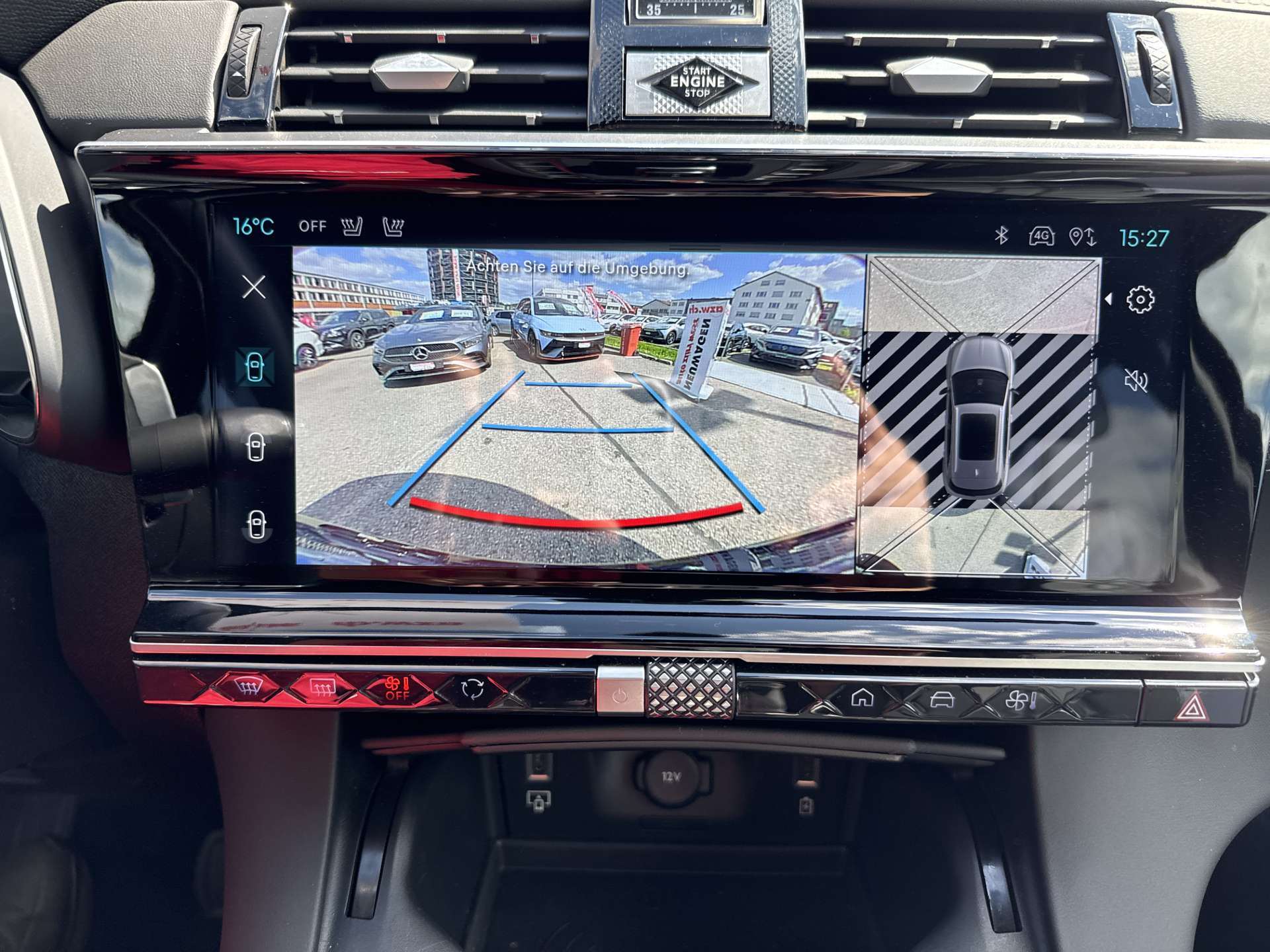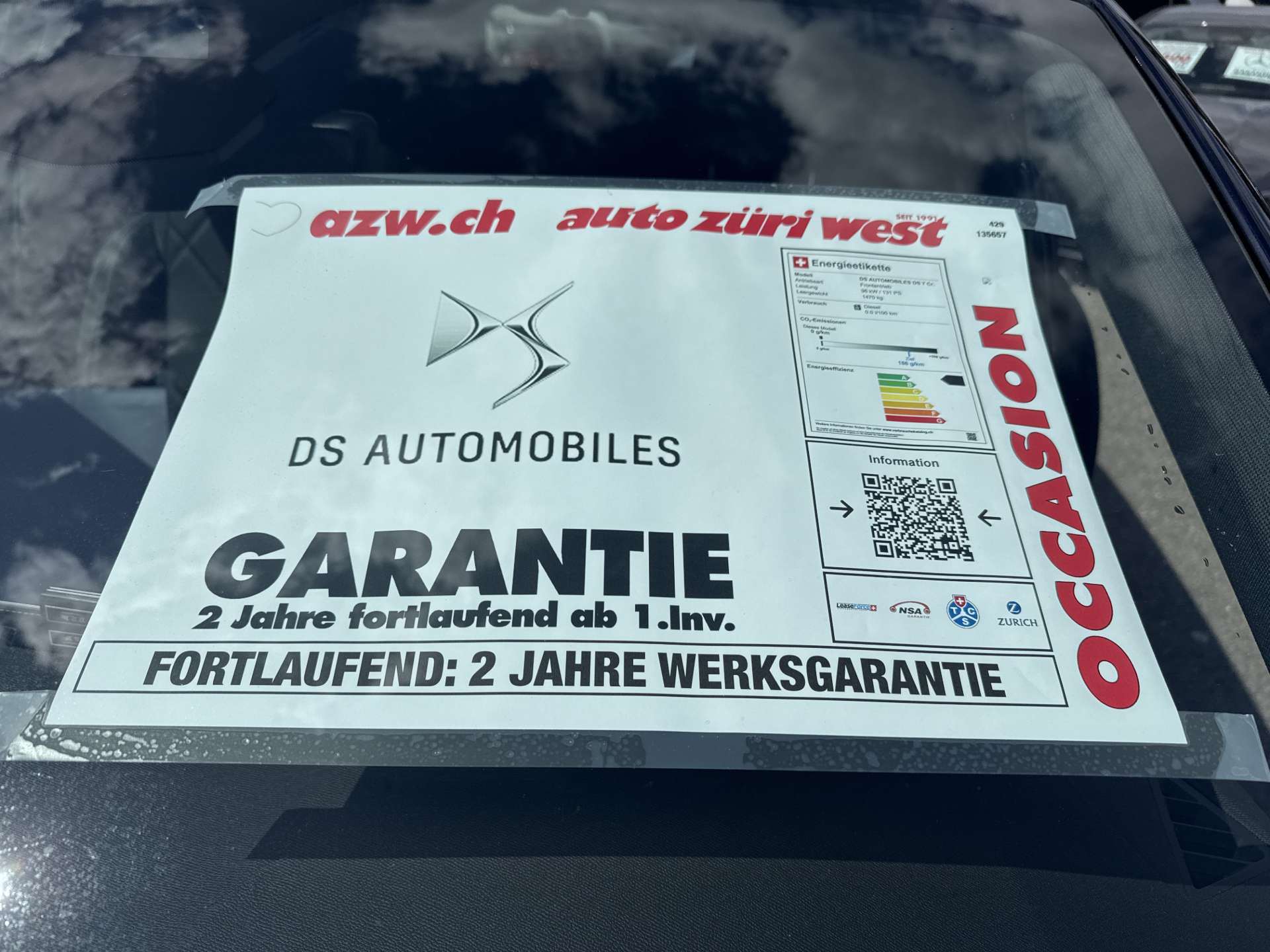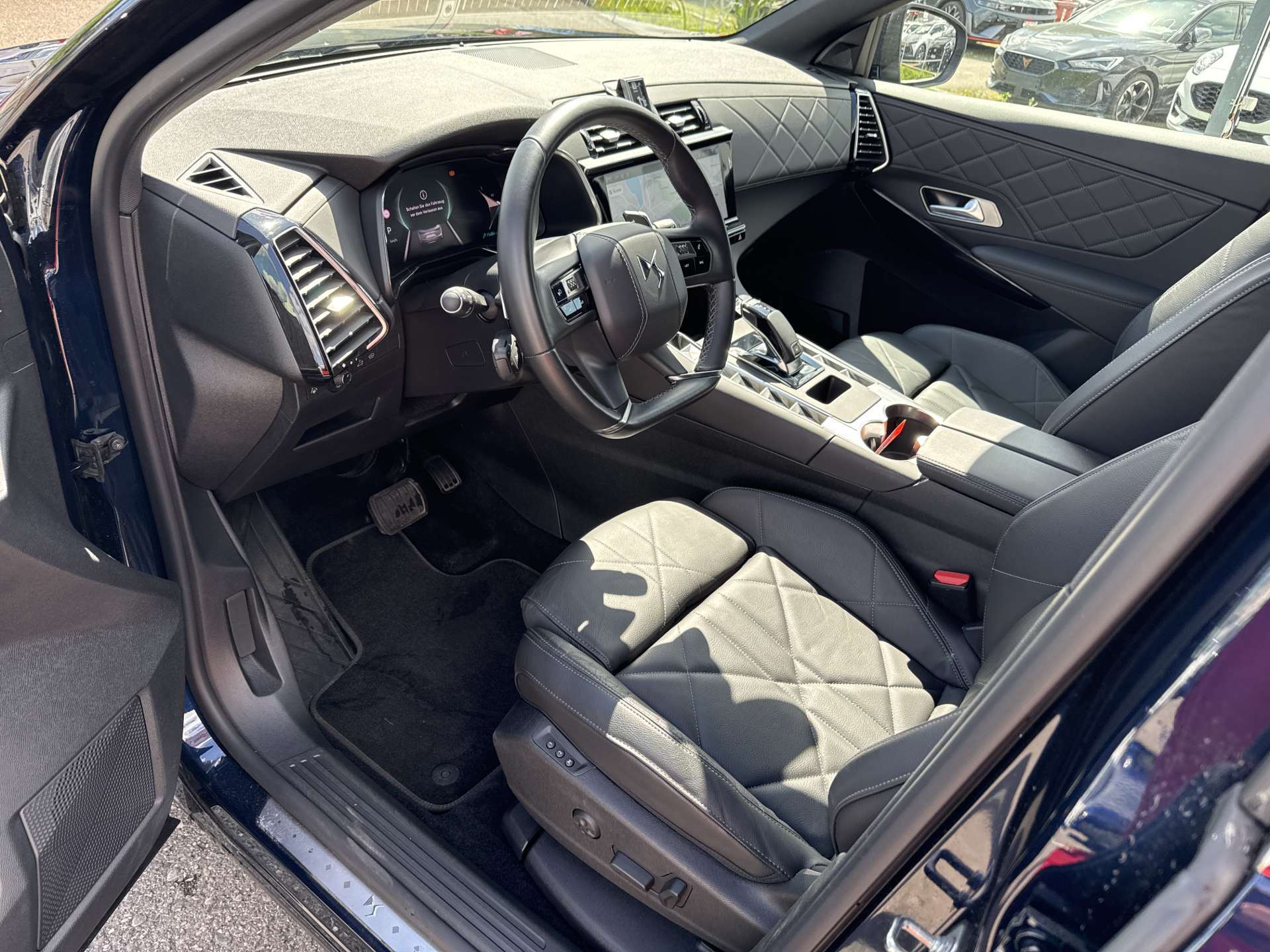 12 Volt-Steckdose im Laderaum, 2 Isofix-Kindersitzbefestigungen hinten, 3-Punkt-Sicherheitsgurte auf allen Plätzen, ABS mit elektronischer Bremskraftverteilung (EBV) und Bremsassistent (BA), Airbag: Airbag Fahrer und Beifahrer, Airbag: Front- und Kopfairbags, Airbag: Seitenairbag für Fahrer und Beifahrer, Assist: Active Safety Brake, Assist: Aufmerksamkeitswarnung für den Fahrer per Kamera, Assist: Berganfahrhilfe, Assist: Erweitere Verkehrszeichenerkennung, Assist: Geschwindigkeitsregler und -begrenzer, Assist: Parksensoren vorne und hintenhinten+ Rückfahrkamera, Assist: Spurassistent, Assist: Totwinkel-Assistent, Aussenspiegel elektrisch anklappbar mit DS Logo Projektion, Aussenspiegelgehäuse in Schwarz lackiert, Automatische Parkbremse, Automatische Scheibenwischer, Automatisches Einschalten der Warnblinkanlage bei starkem Bremsen, Bordcomputer, Dachreling aus Aluminium, Dekor: Einstiegsleisten in Aluminium, Drehzahlmesser, Einfassung der Seitenfenster verchromt, Elektrische Fensterheber vorne + hinten, Elektrochromischer rahmenloser Innenrückspiegel, Elektronisches Stabilitäts-Programm, Full-LED - Innenbeleuchtung, Fussmatten vorne und hinten, Getriebe: 8-Stufen-Automat sequentiell, Gurtstraffer mit Gurtkraftbegrenzer, Heck-und Seitenscheiben stärker getönt, Heckscheiben-Wisch-/Waschanlage, Heckscheibenheizung, Innenspiegel automatisch abblendbar, Interieur Leder Basalte Schwarz, Keyless Entry / -Start, Kopfstützen hinten und vorne, Lackierung: Metallic-Lackierung Saphir Blau, Lenkrad: Lederlenkrad, Lenkrad: Lenkrad längs- und höhenverstellbar, Licht: 3D - LED - Rückleuchten mit Lauflichtblinkern, Licht: Drittes Bremslicht, Licht: DS Light Veil, Licht: DS PIXEL LED VISION 3.0, Licht: Dynamische Blinker, Licht: Fernlicht-Assistent, Licht: LED Scheinwerfer, Licht: Nebelschlussleuchte, Media: 12.3 Digitales Kombiinstrument, Media: DS IRIS SYSTEM, Media: Mirror Screen, Media: USB-C-Datenanschluss vorne, Mittelarmlehne hinten, Paket: Elektrische Sitze-Paket, Paket: Pack Safety, Partikelfilter und Oxydationskatalysator, Räder: 19"- Aluminium Felgen EDINBURGH, Räder: Reifendruckkontrollsystem, Räder: Reifenreparatur-Kit mit Pannenspray, Schalldämmende Frontscheibe, Seitenscheiben vorne leicht getönt, Servolenkung mit variabler Lenkkraftunterstützung, Sitze: Rückbank im Verhältnis 2/3 -1/3 teilbar und 3 Kopfstützen, Sitze: Vordersitze höhenverstellbar, Türgriffe aussen in Wagenfarbe, Uhr B.R.M R180, Verchromte DS Wings und Schwarz Glänzender Kühlergrill, Wegfahrsperre elektronisch, Zentralverriegelung mit Fernbedienung